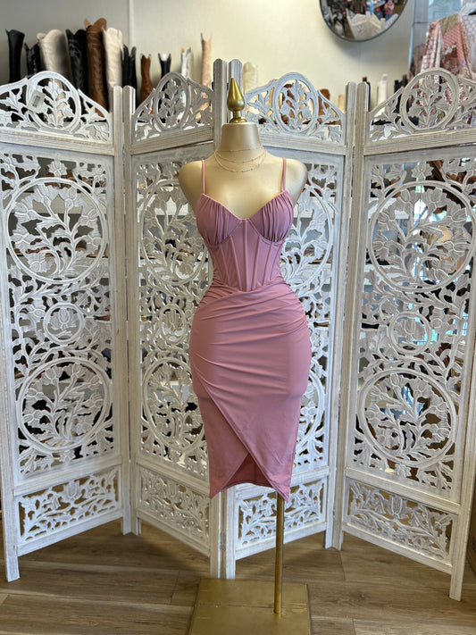Light Pink Corset Tailed Mini Dress- Stretchy