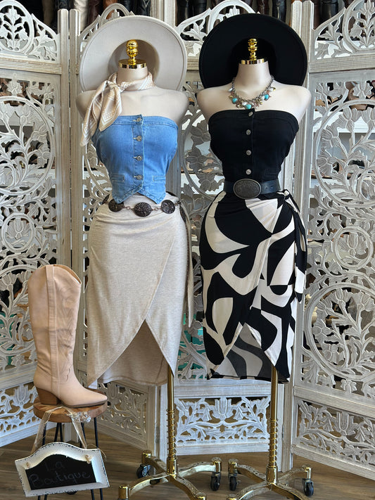 Black Suede Fringe Midi Skirt-Estira, Stretchy