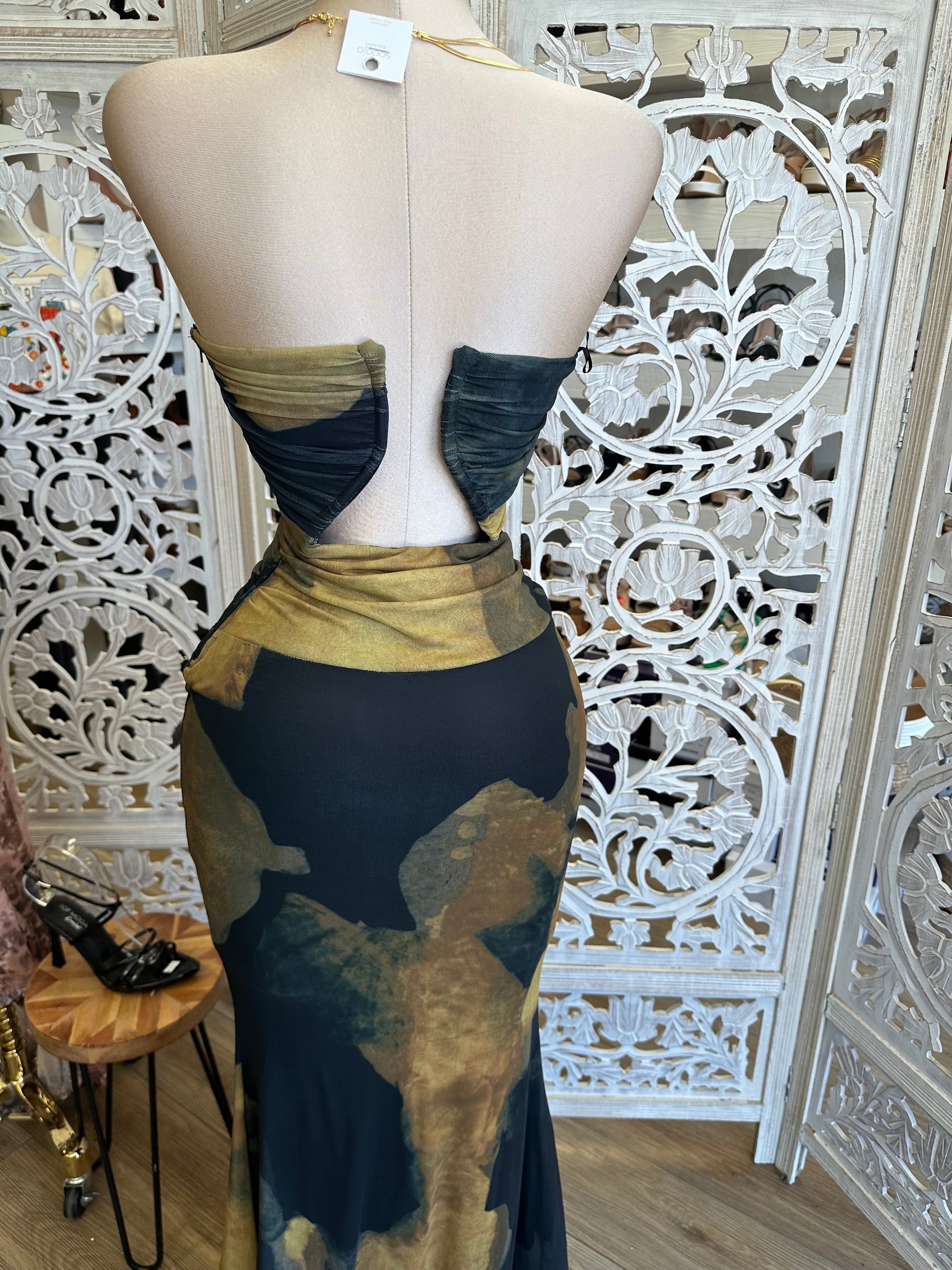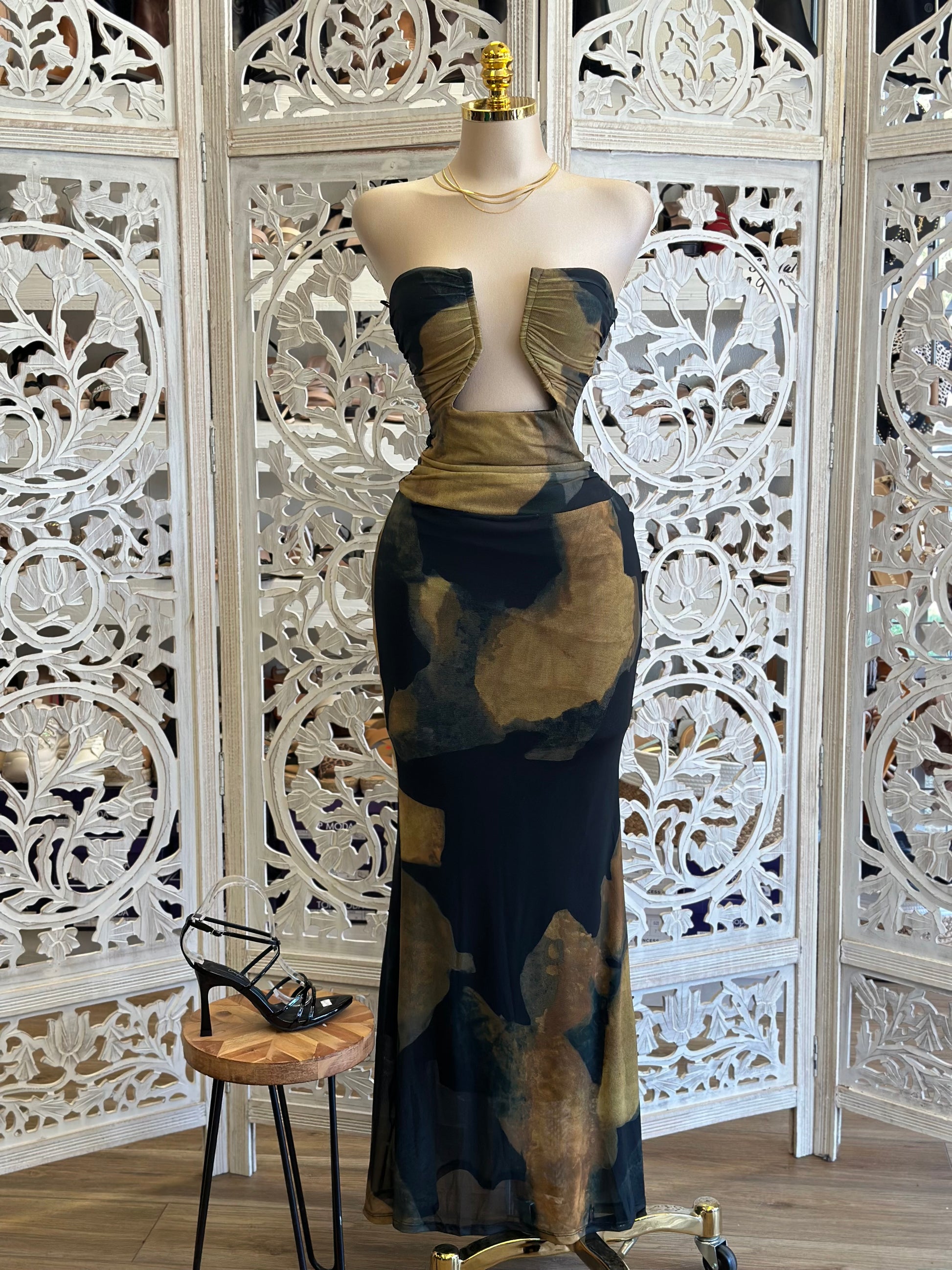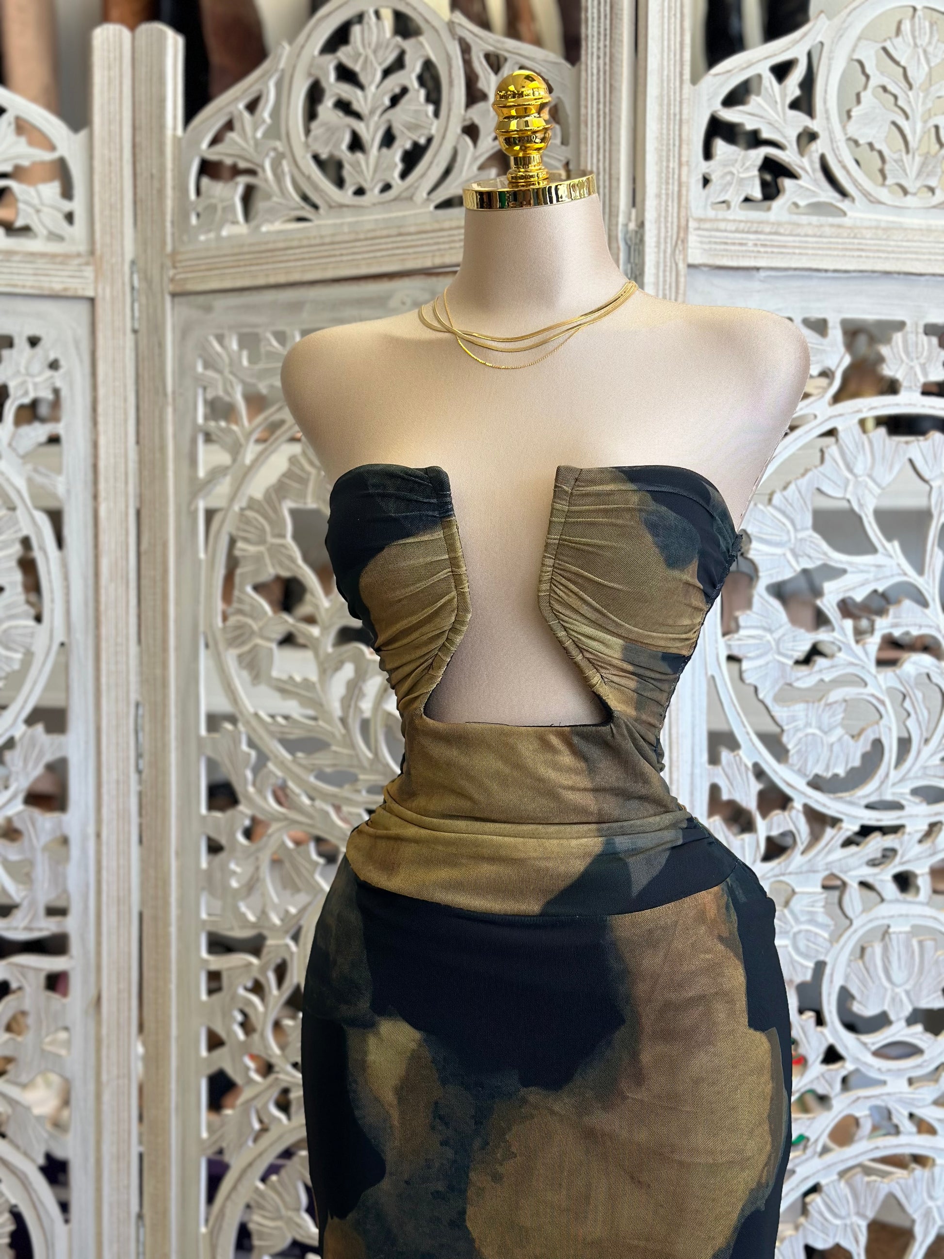Asymmetrical Pattern Underwired Mesh Midi Dress - Estira, Stretchy