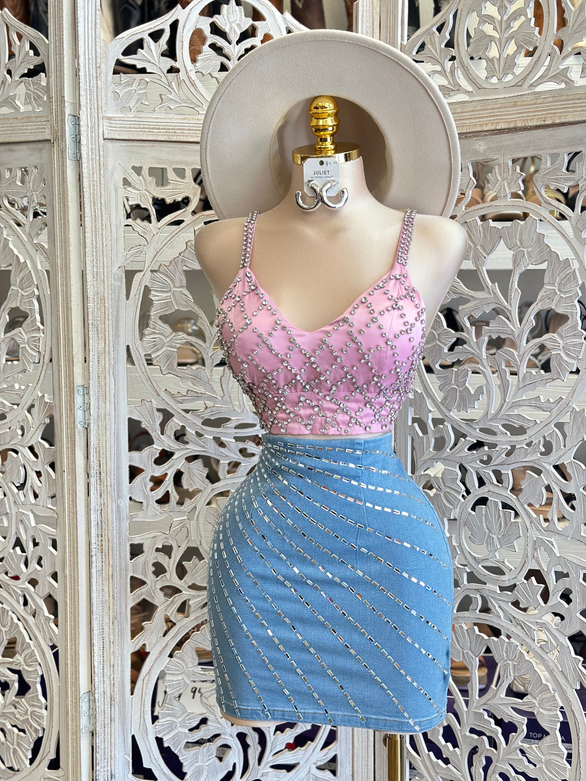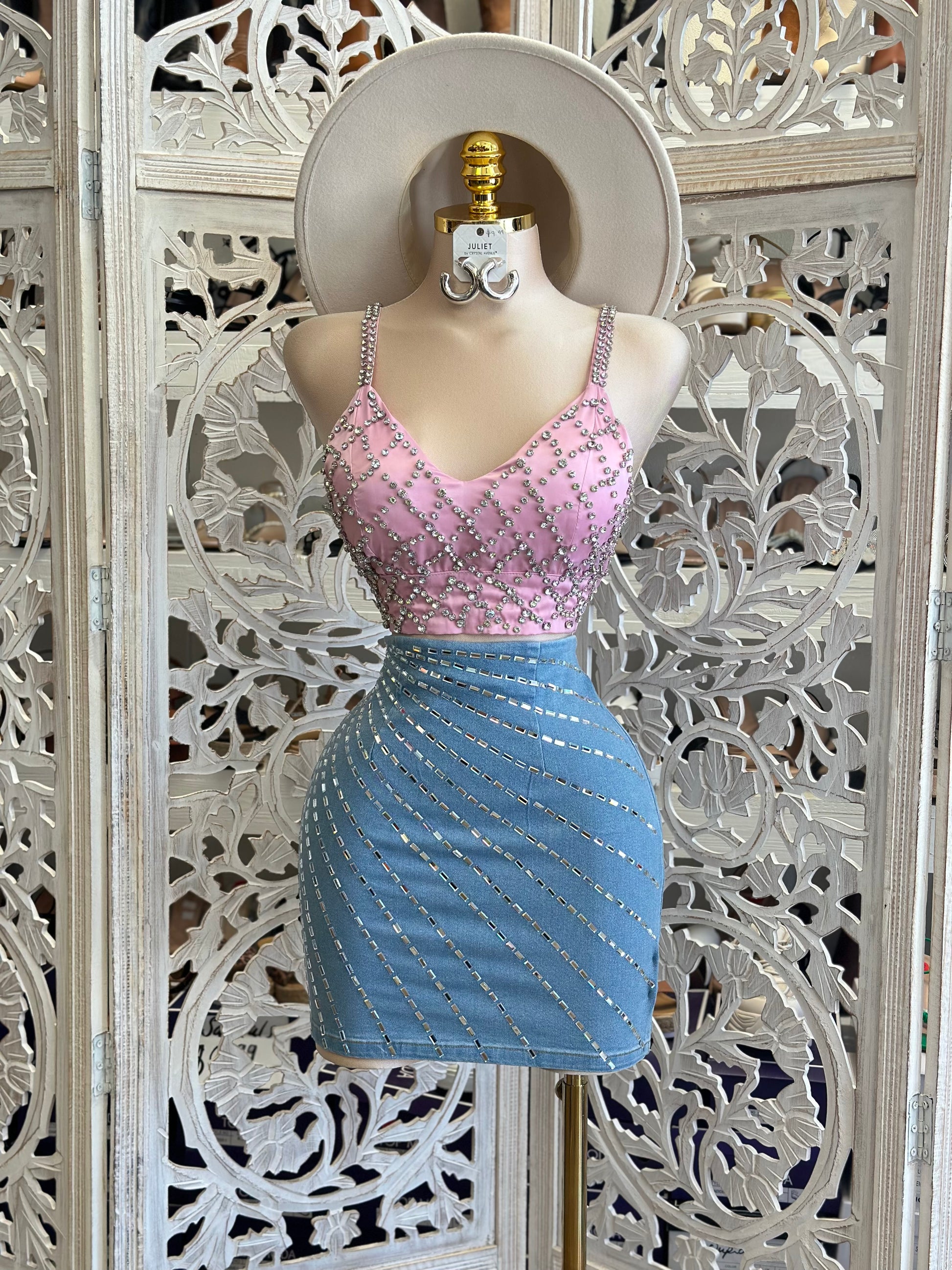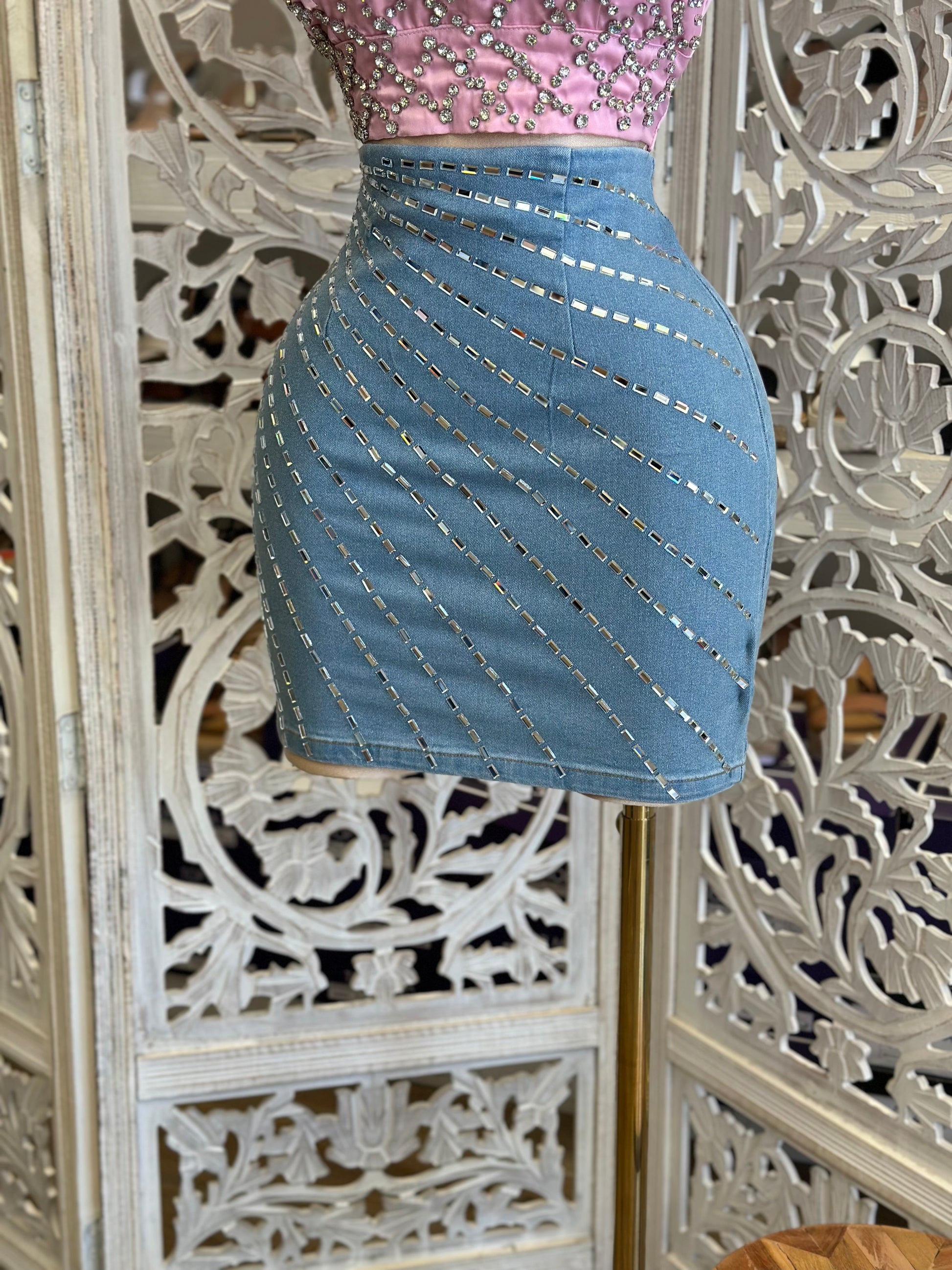 Asymmetrical Rhinestone Mini Skirt- Estira, Stretchy