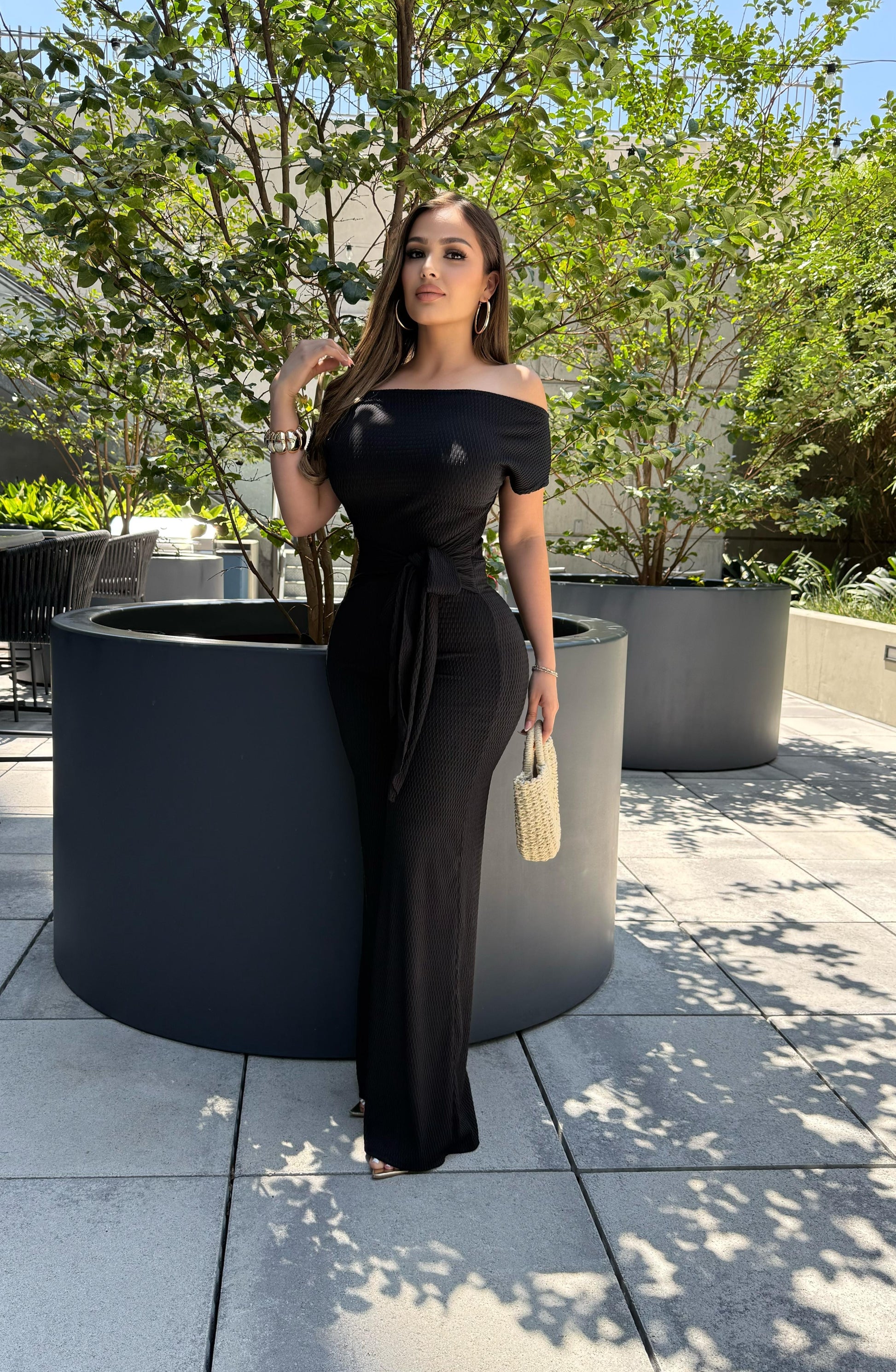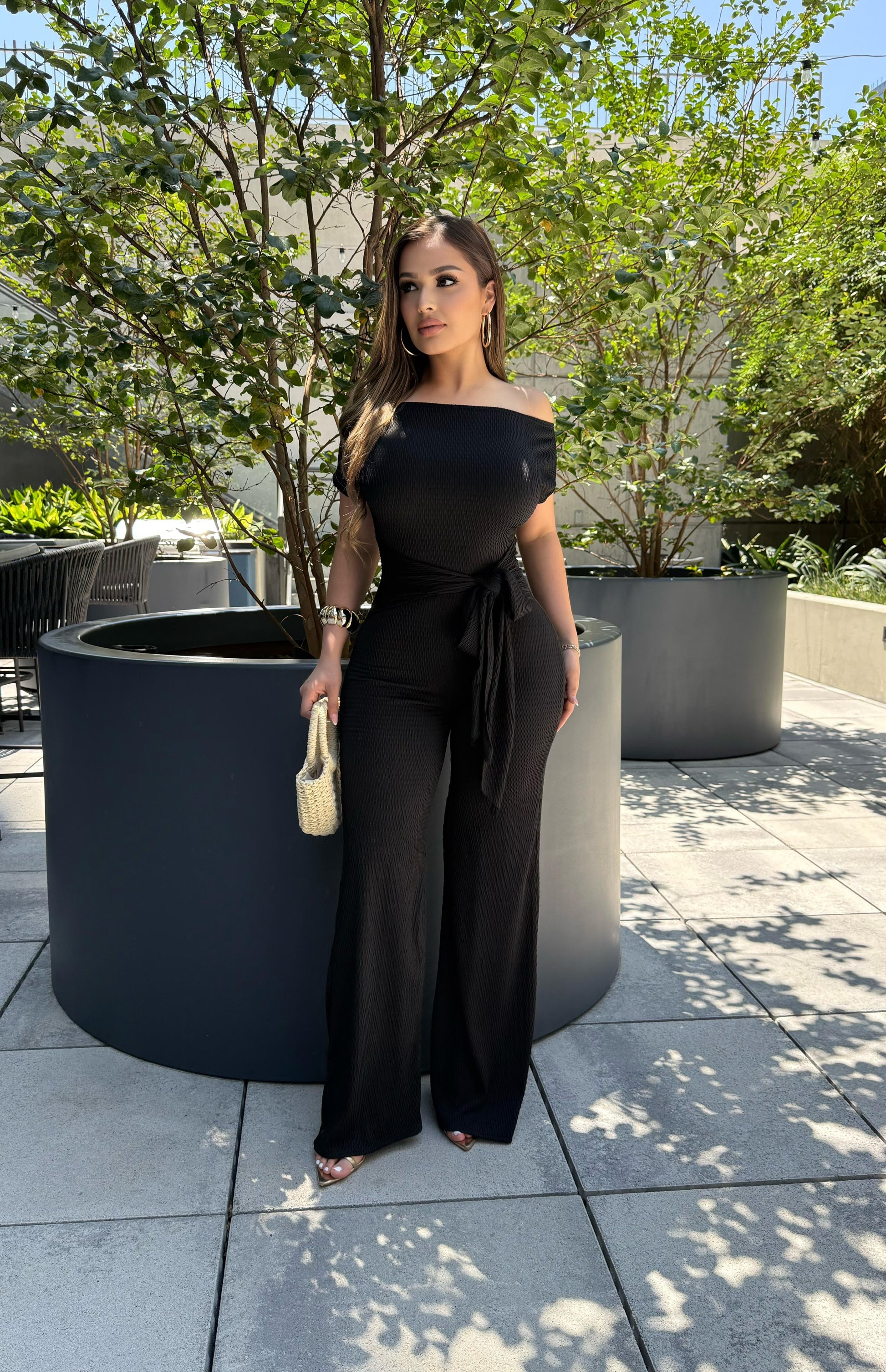 Black Ribbed Asymmetrical Jumpsuit - Stretchy,Estira