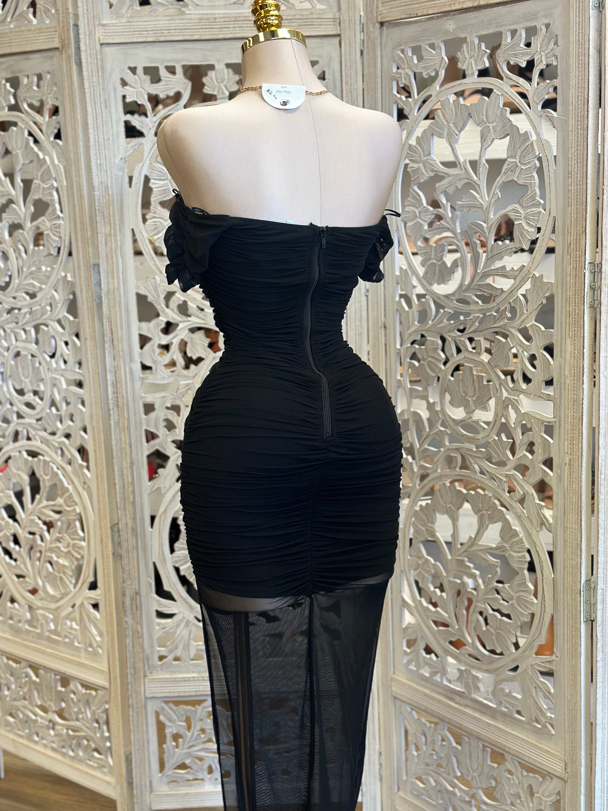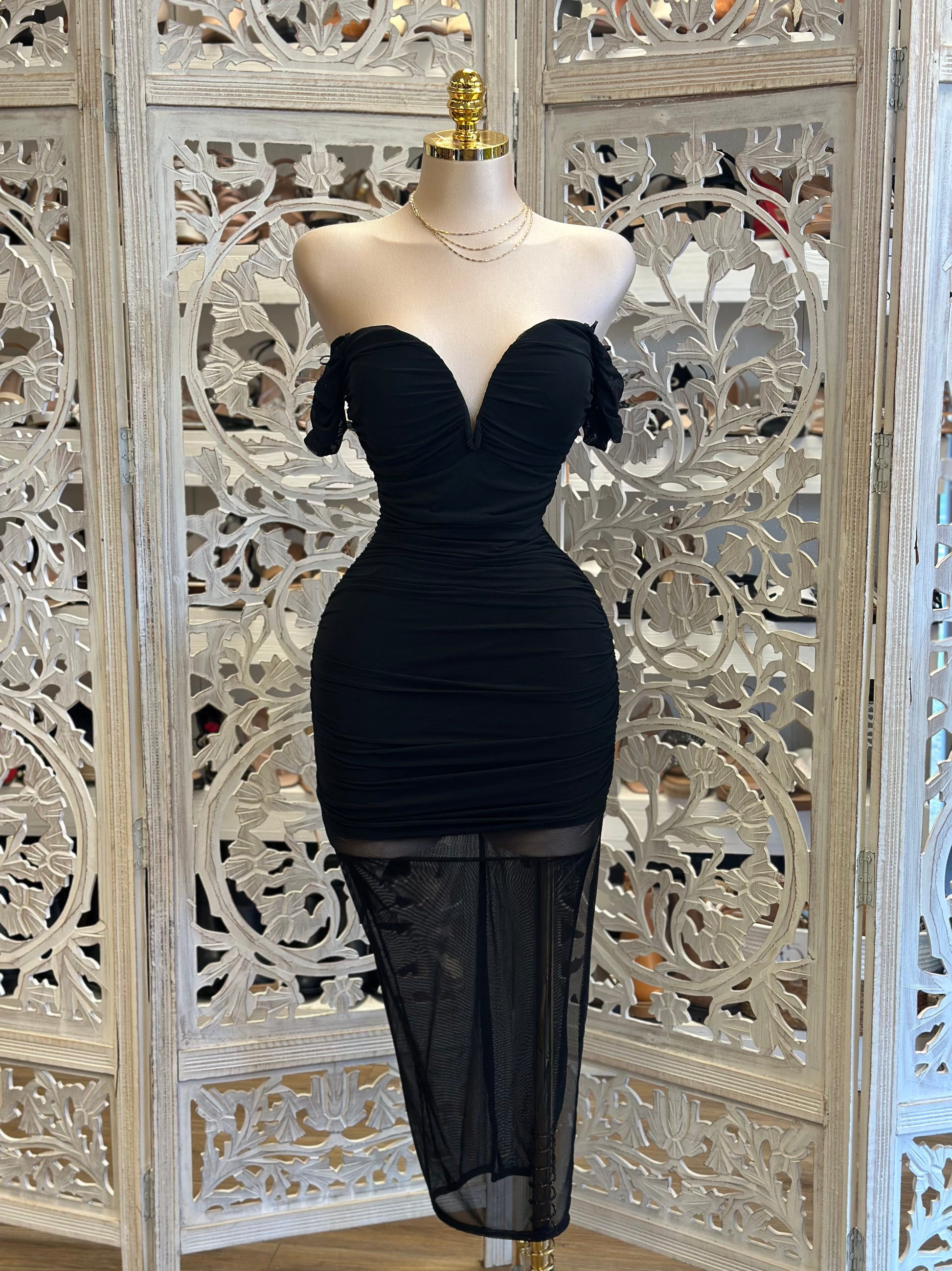 Black Heart Lined Midi Dress- Stretchy,Estira