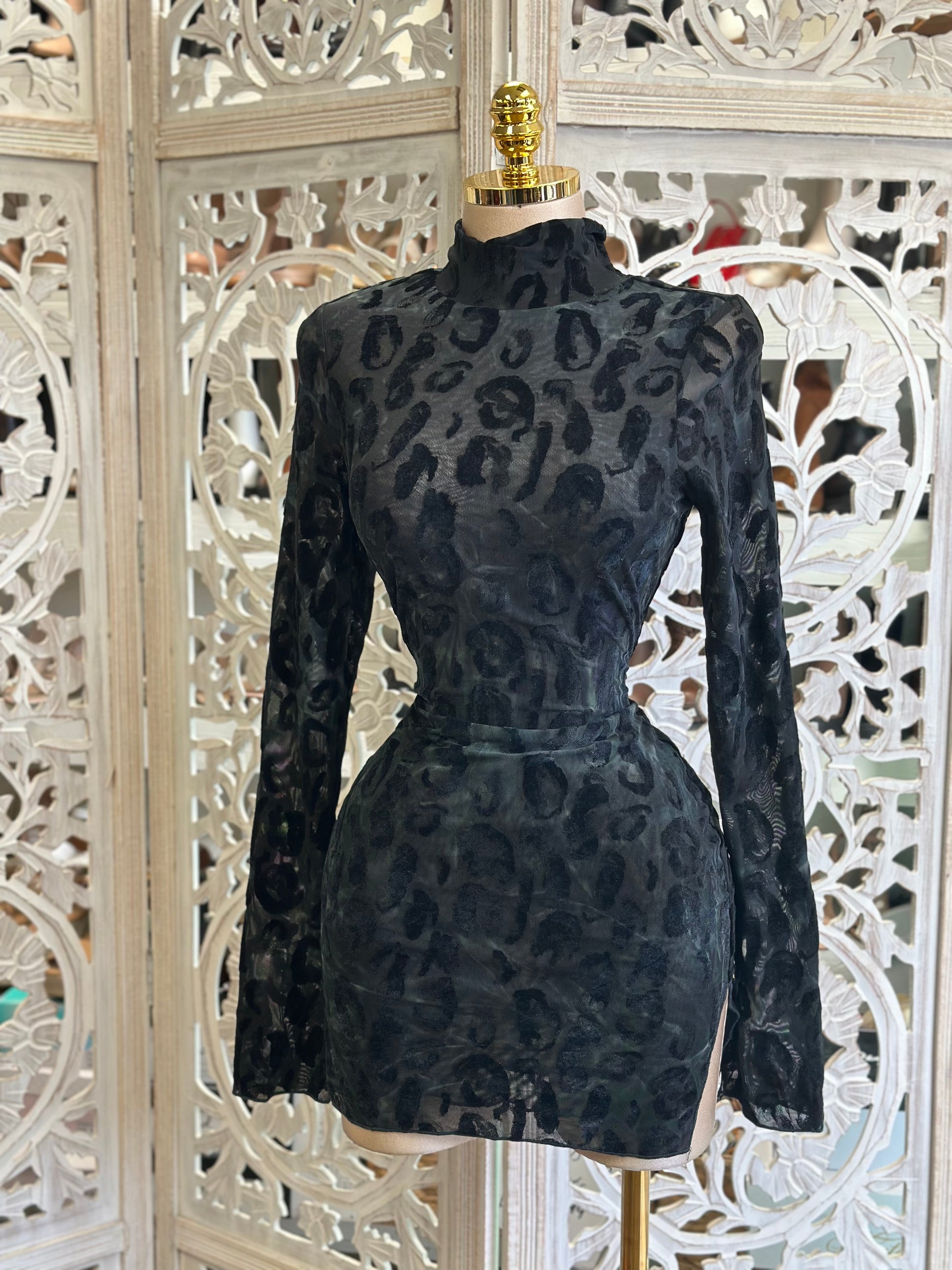 Black Leopard Velvet Mini Dress- Stretchy,Estira