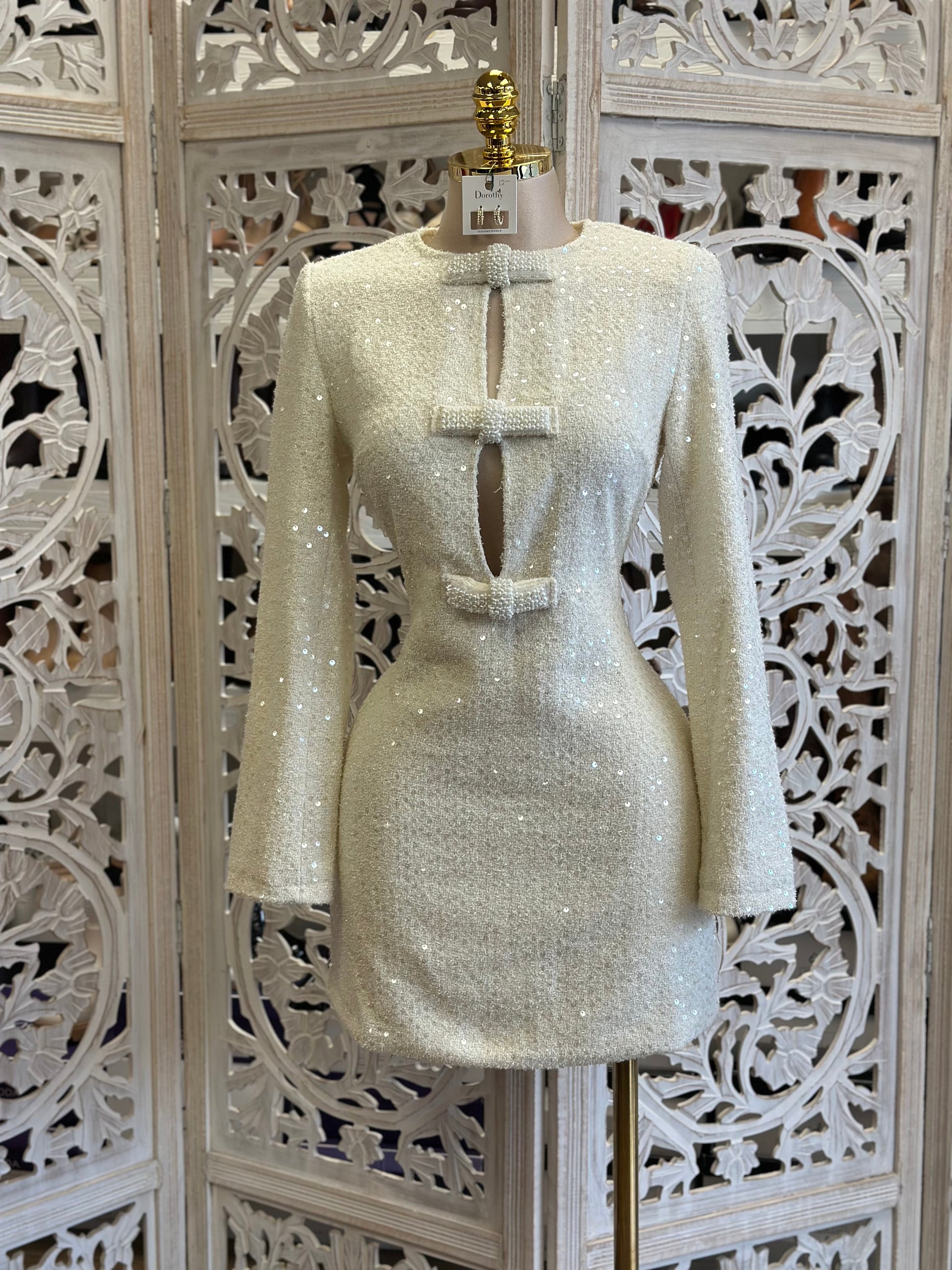 Bow Sequin Tweed Mini Dress- Not Stretchy,No Estira