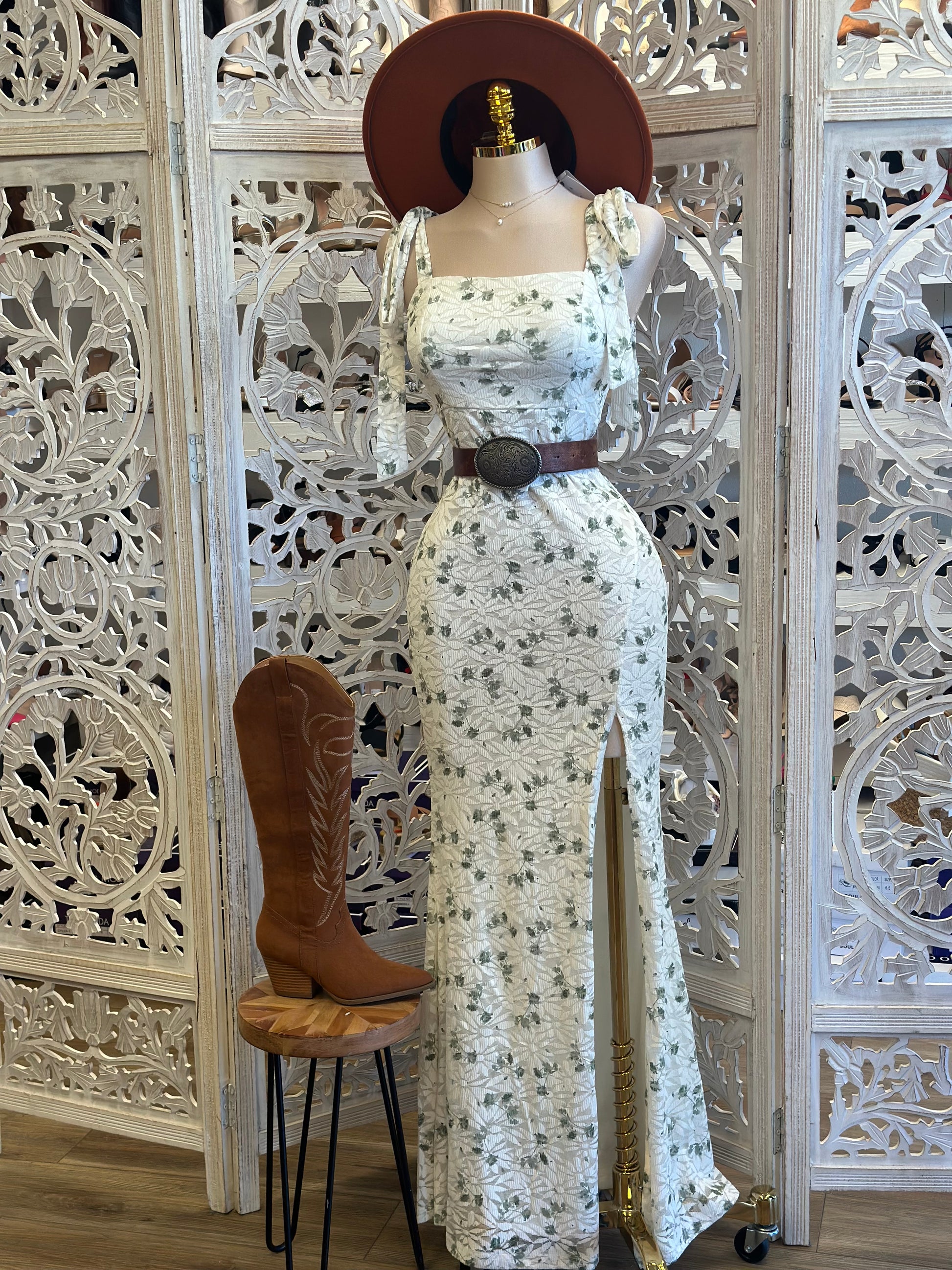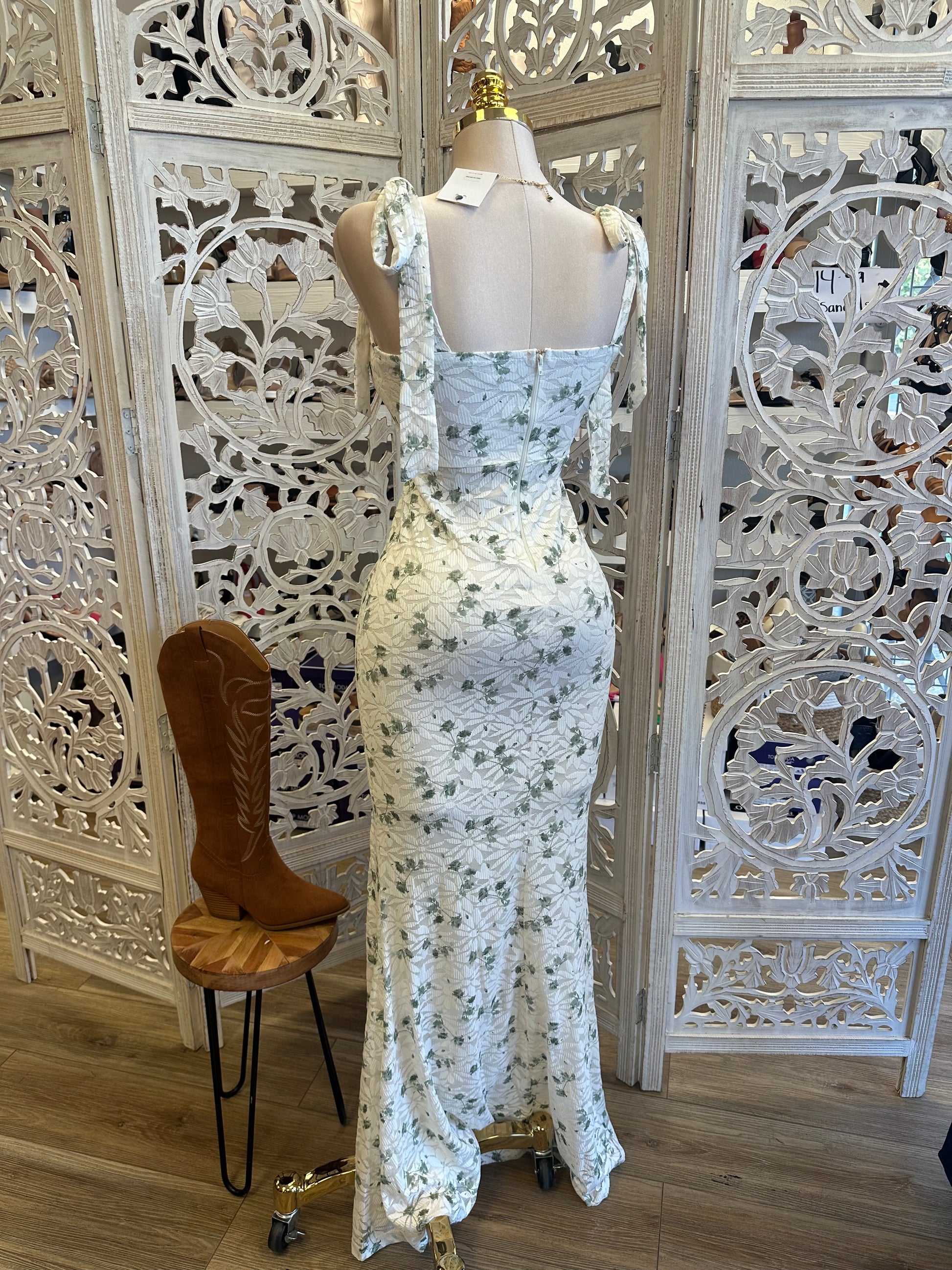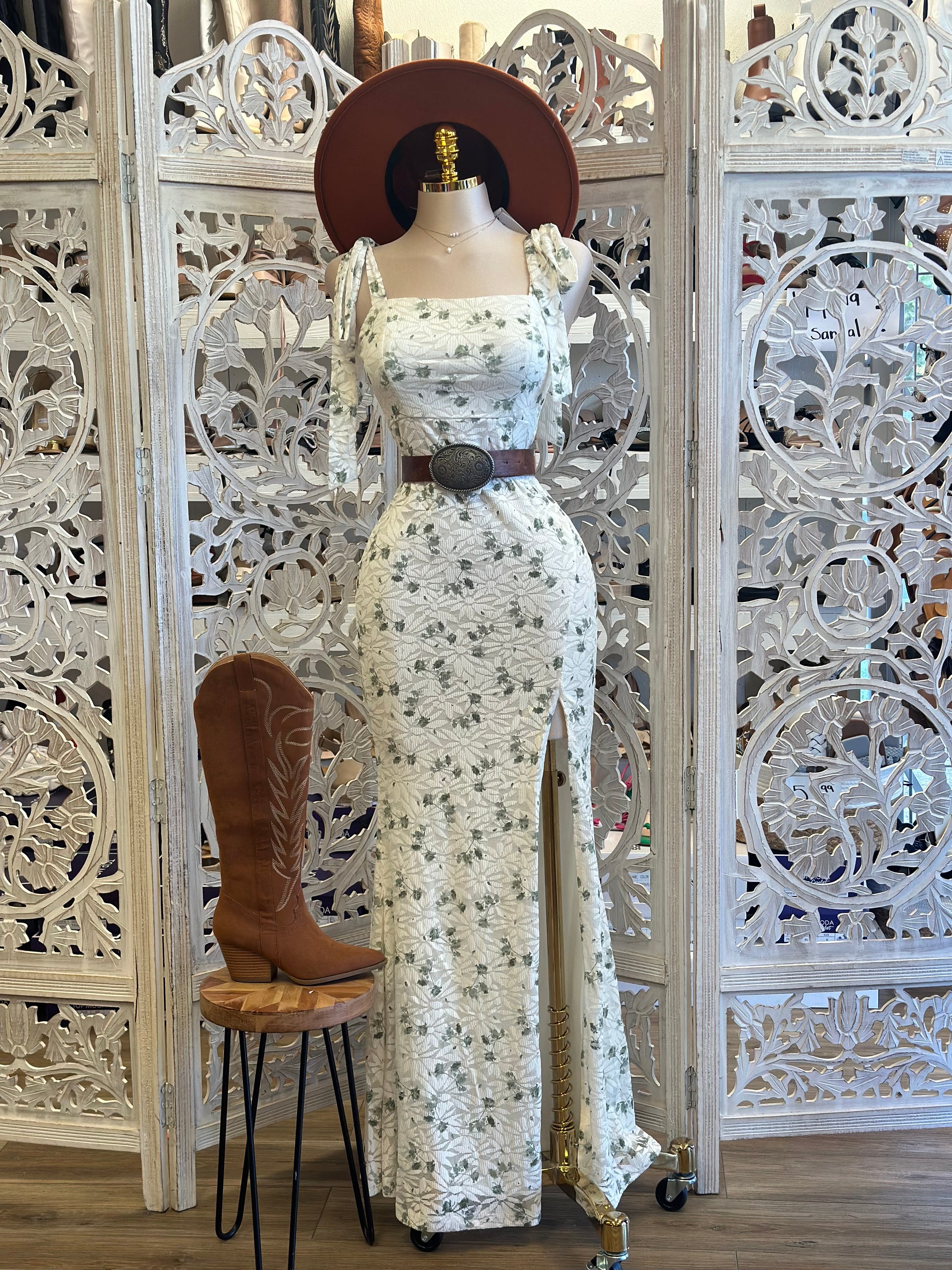 Bow Sleeve Slit Lace Floral Dress - Stretchy, Estira