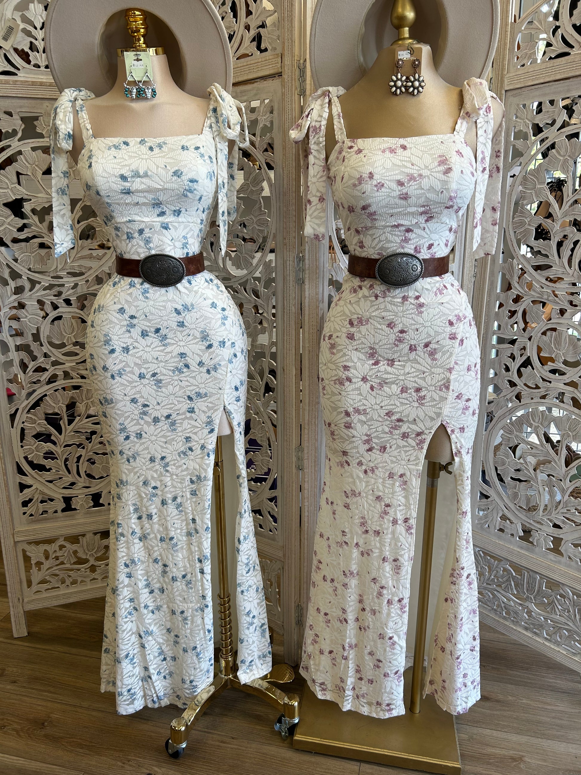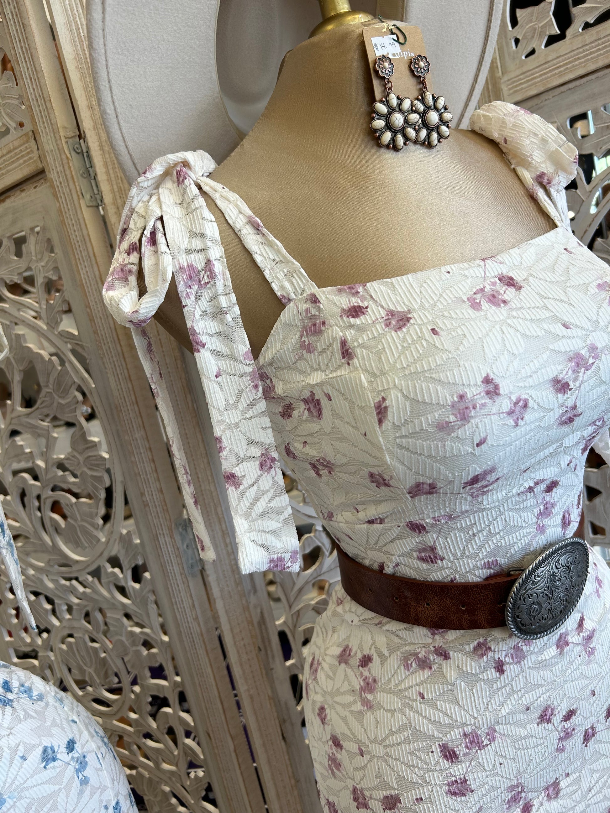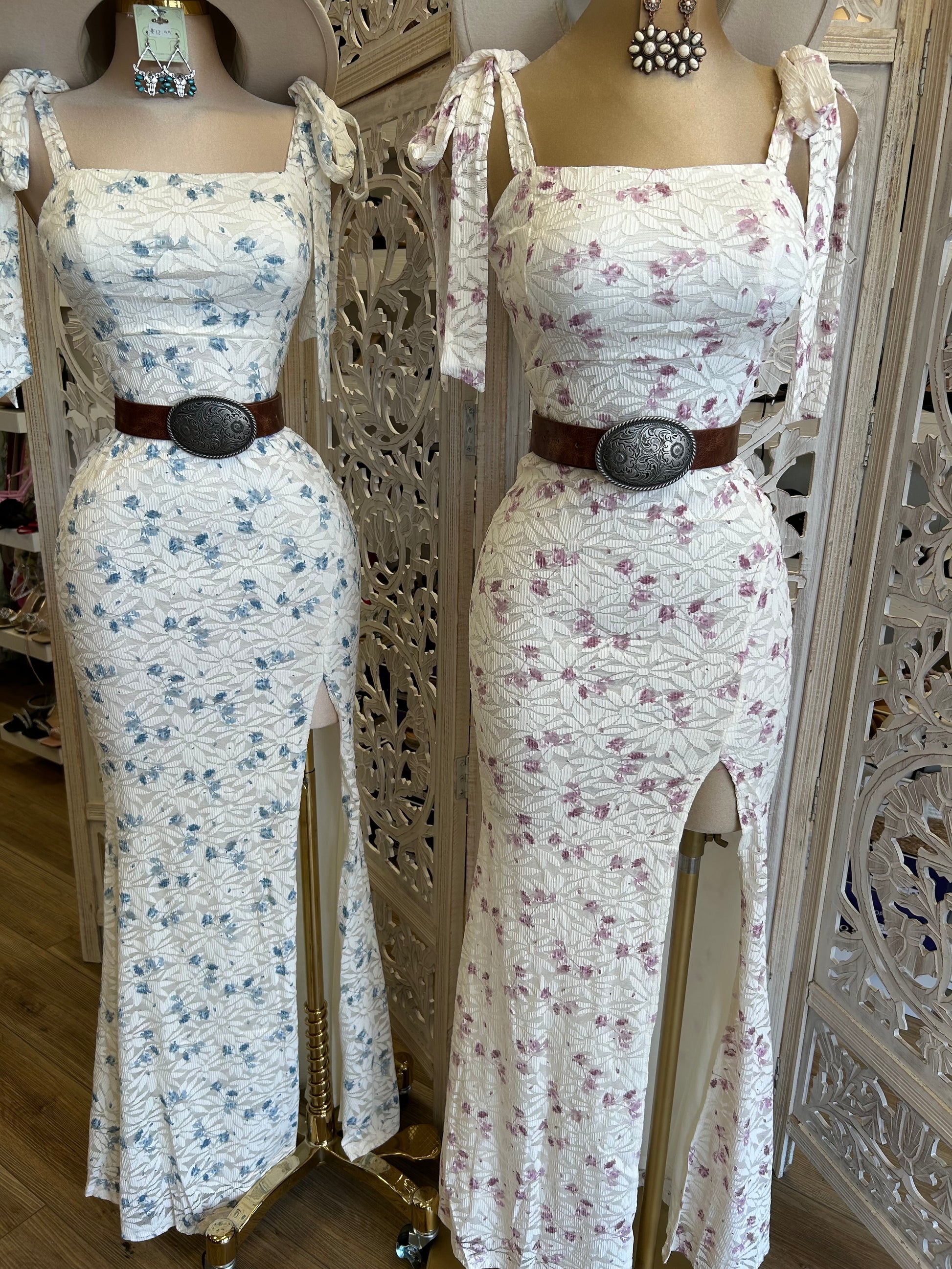 Bow Sleeve Slit Lace Floral Dress - Stretchy, Estira