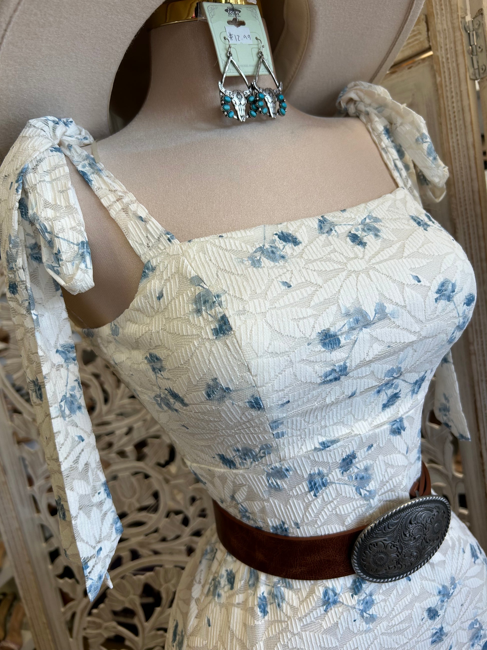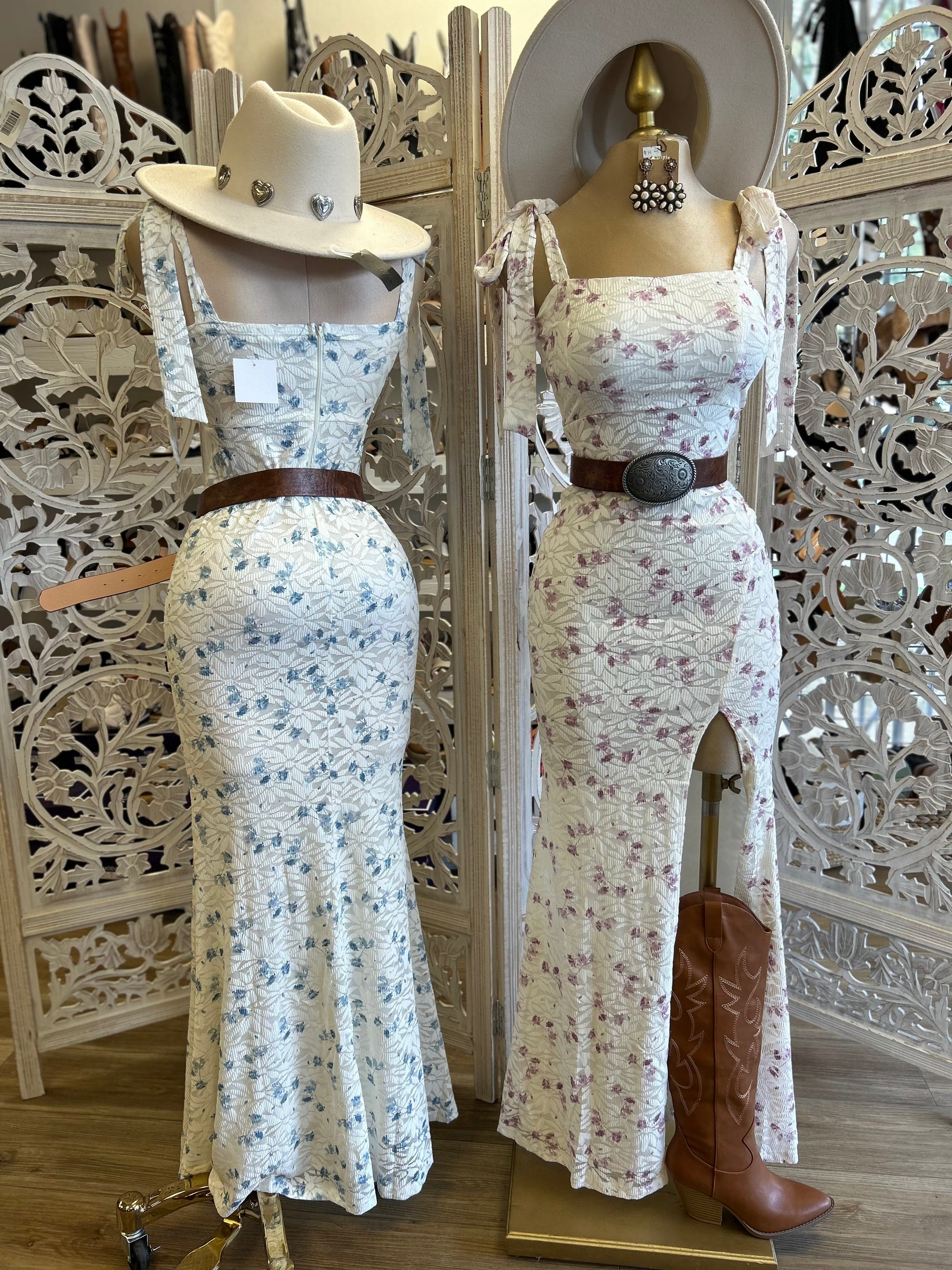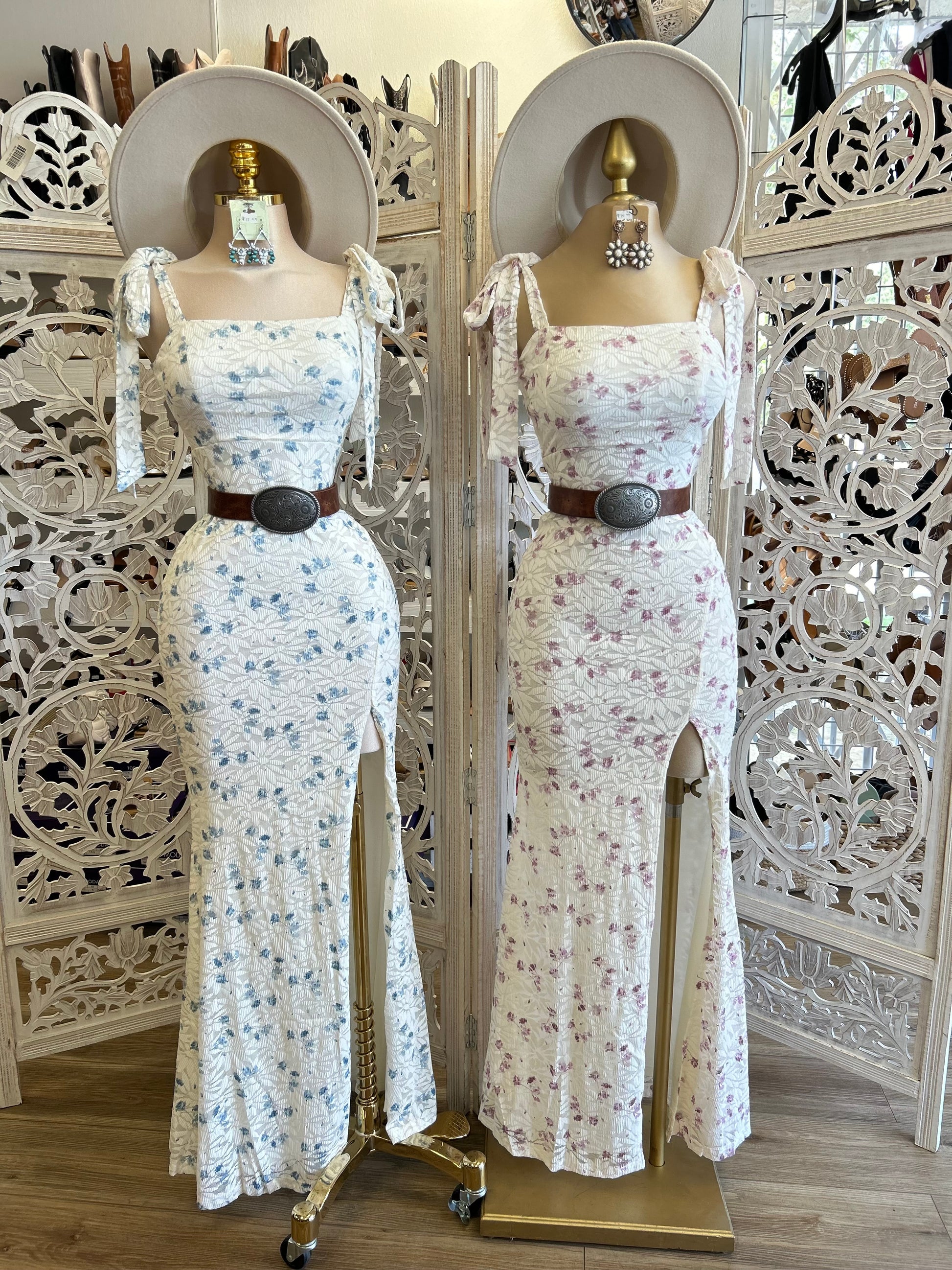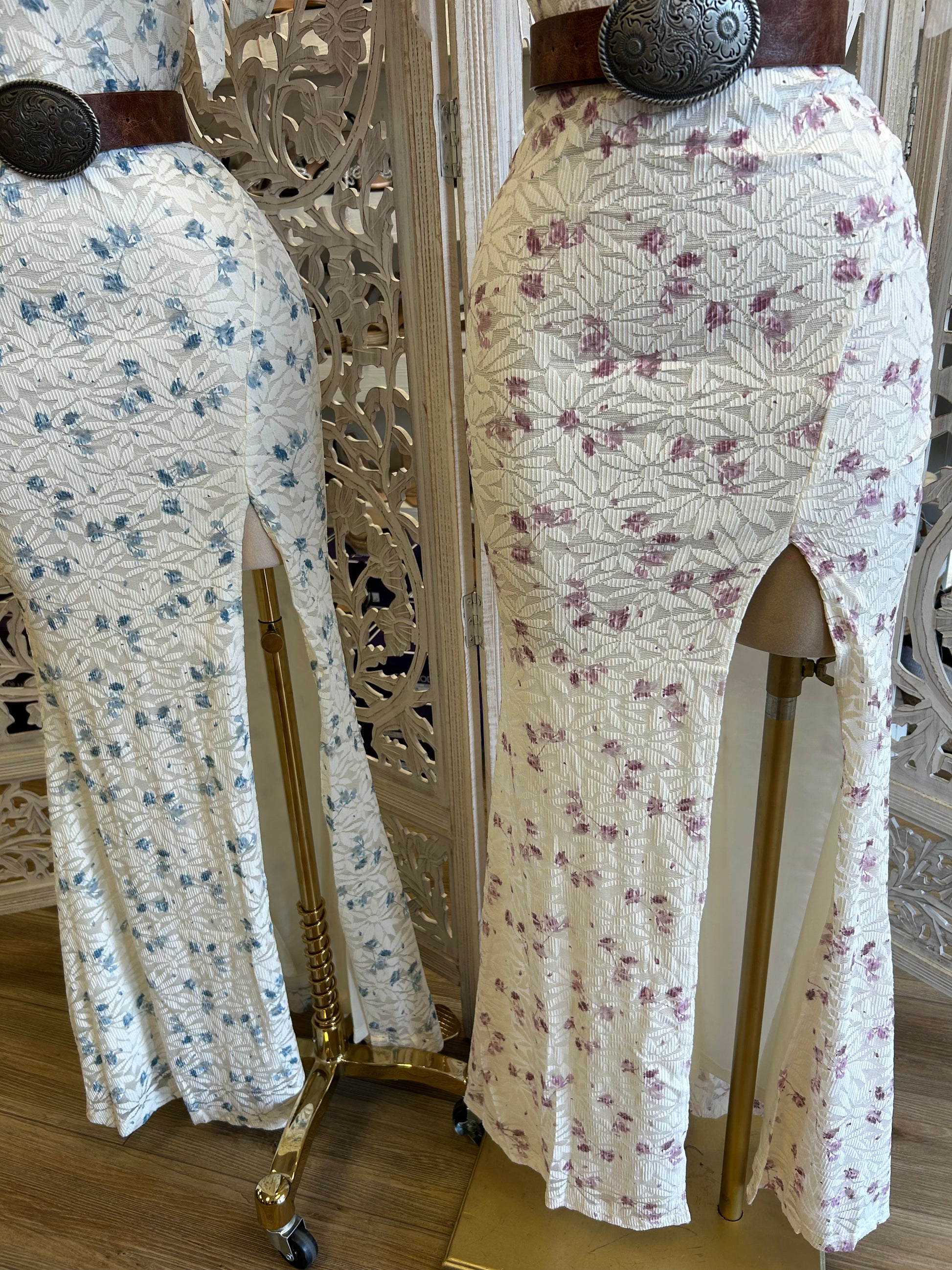 Bow Sleeve Slit Lace Floral Dress - Stretchy, Estira