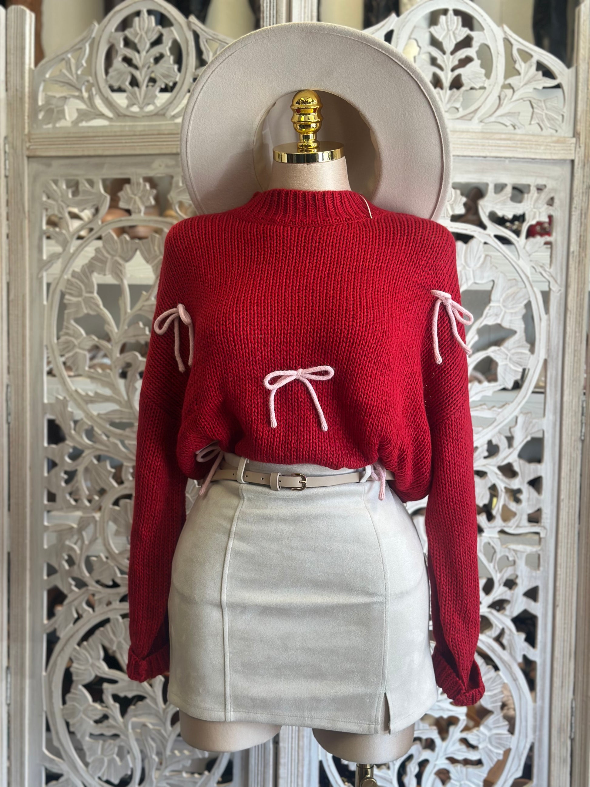 Bright Red Ribbon Detail Knit Sweater