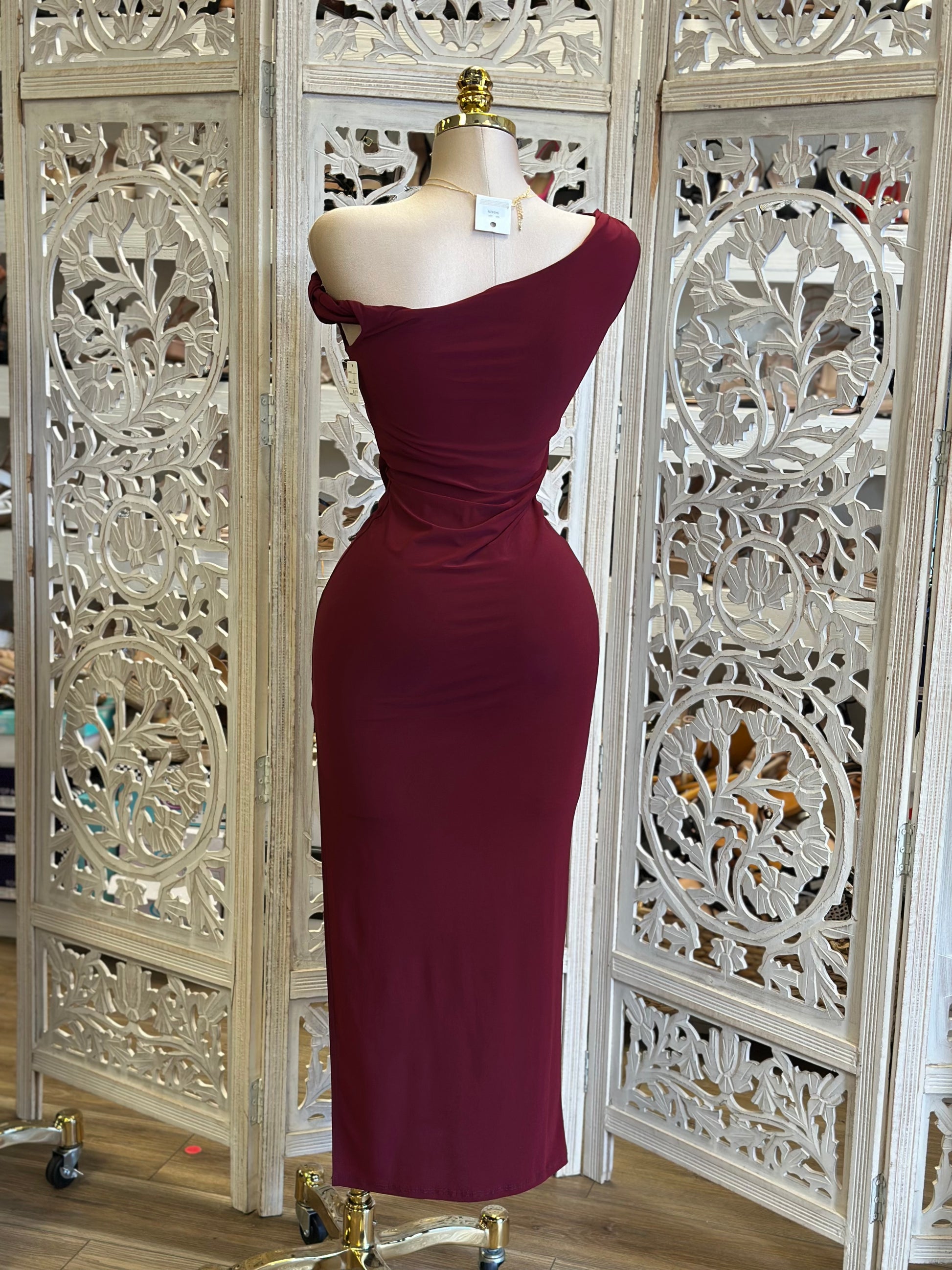 Burgundy Asymmetrical Knotted Dress - Estira, Stretchy