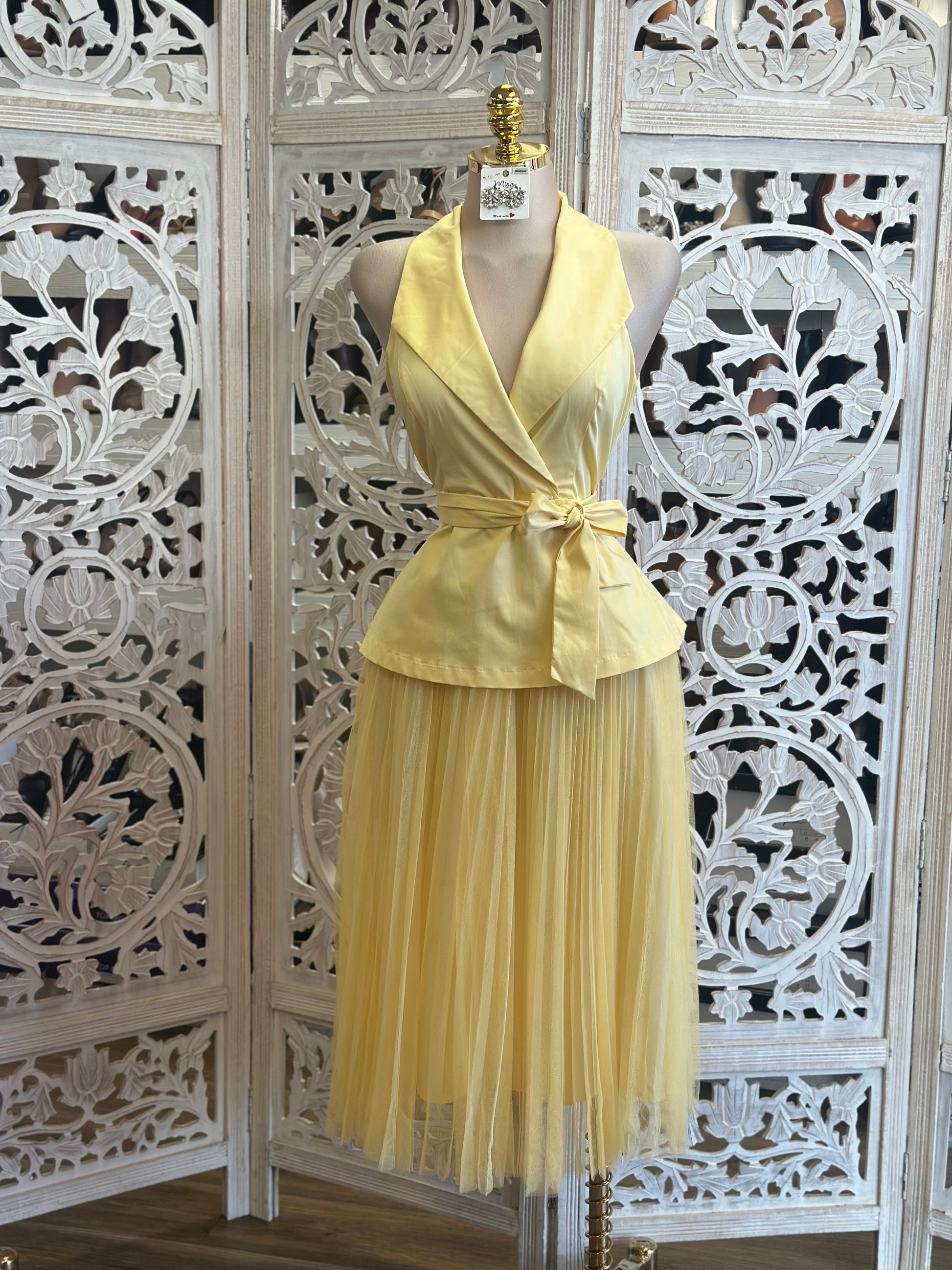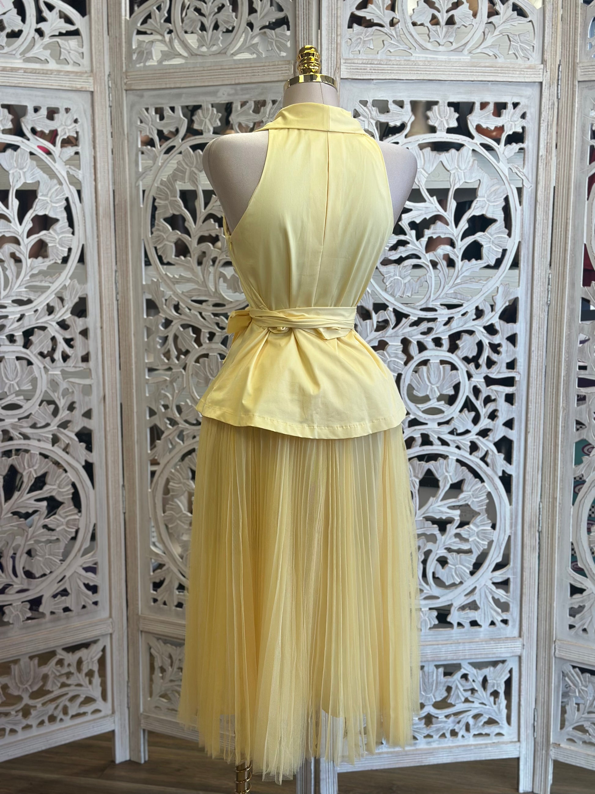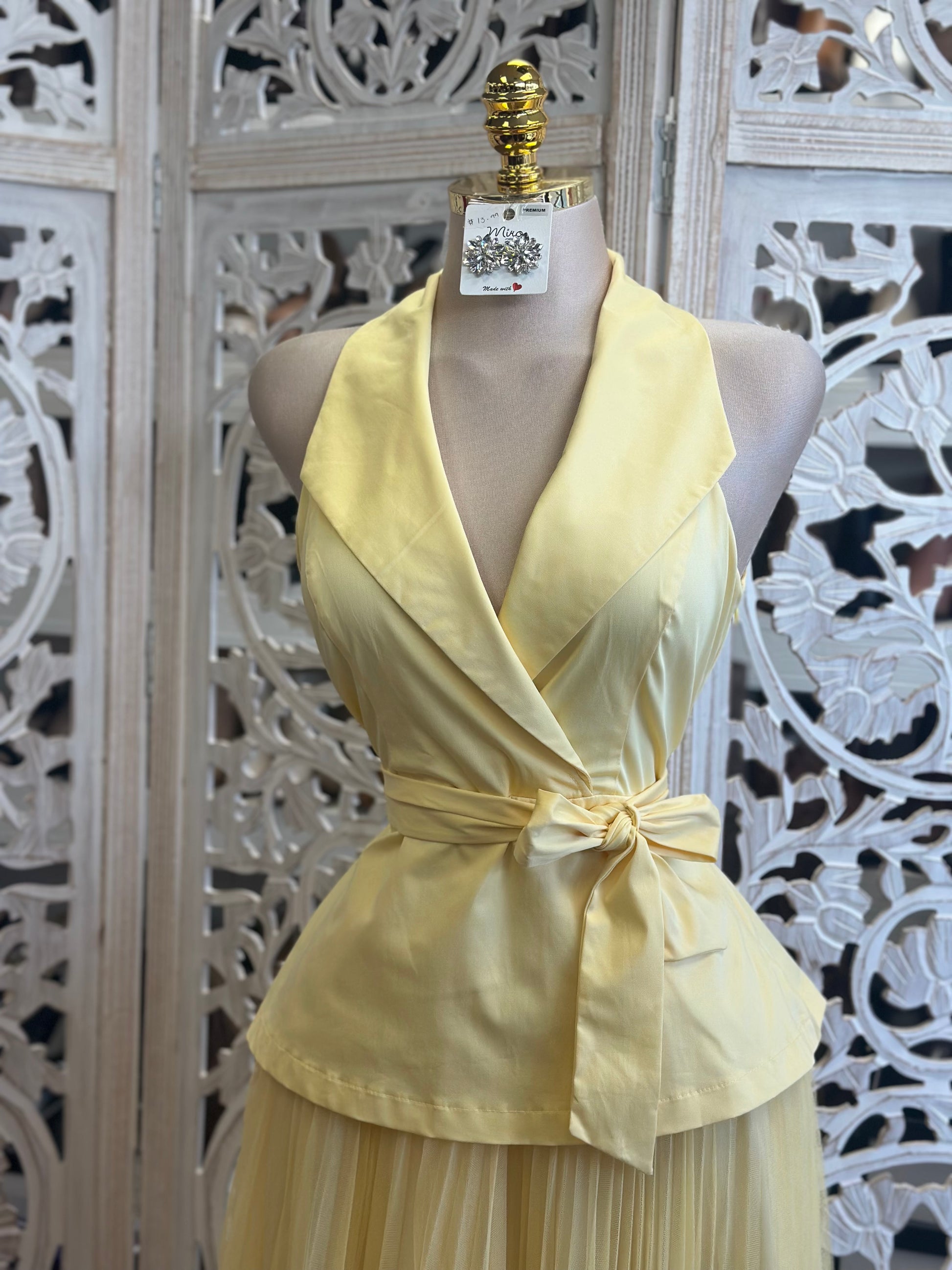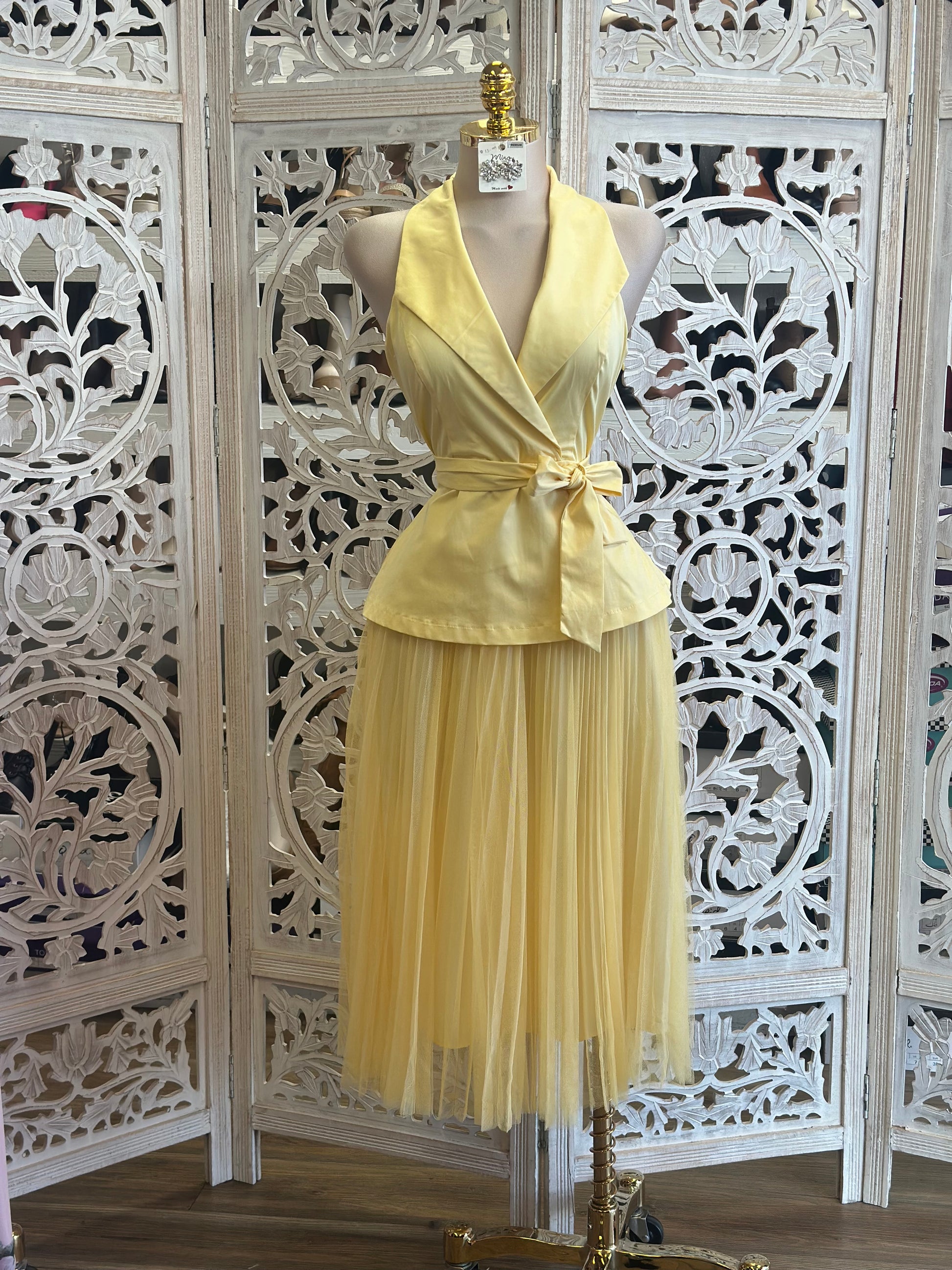 Butter Cream Tulle Wrapped Dress-Not Stretchy,No Estira