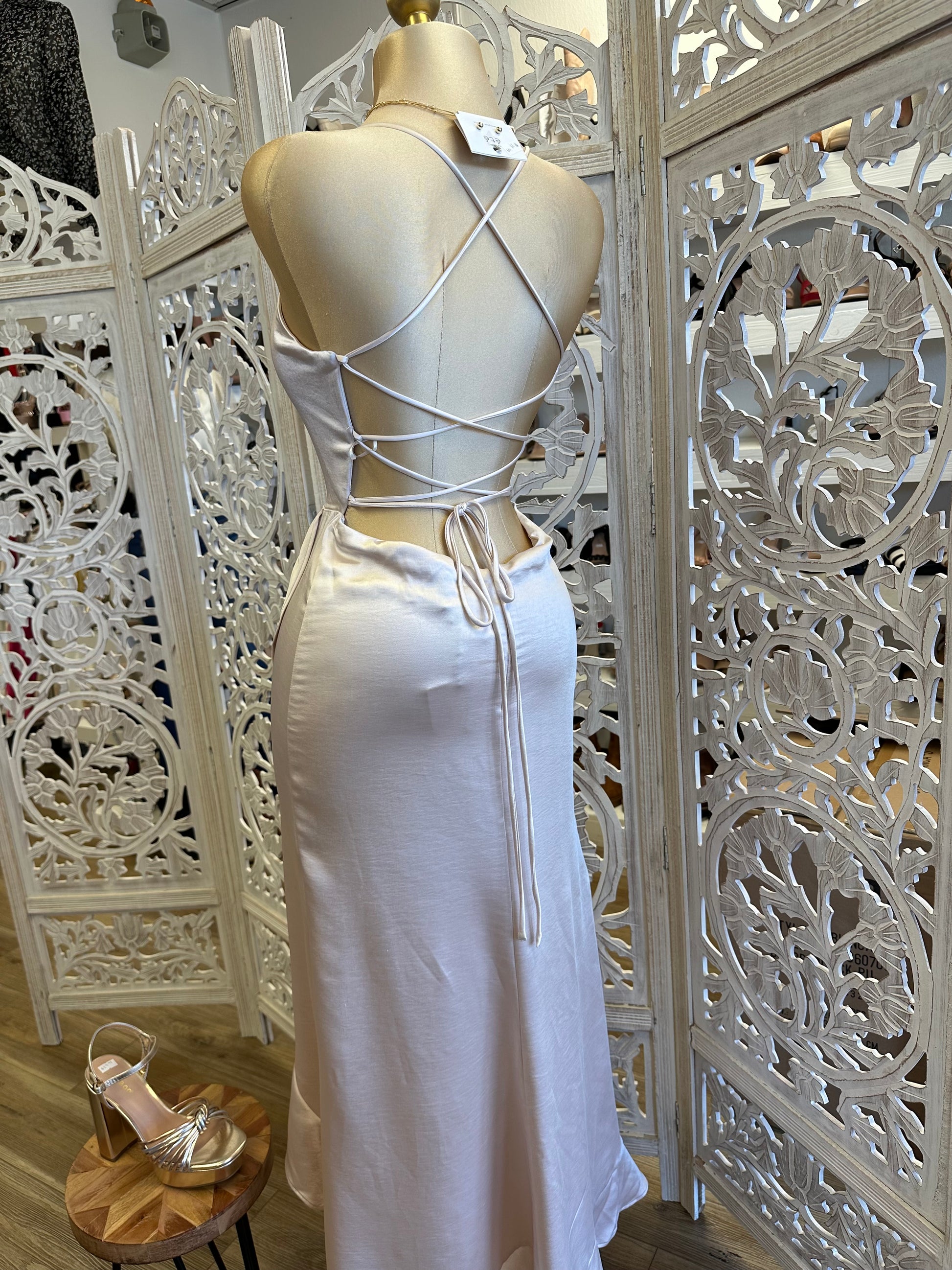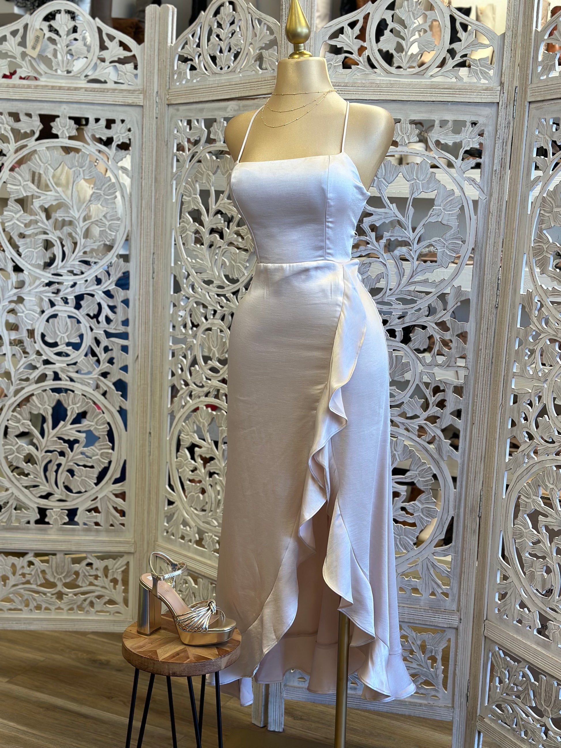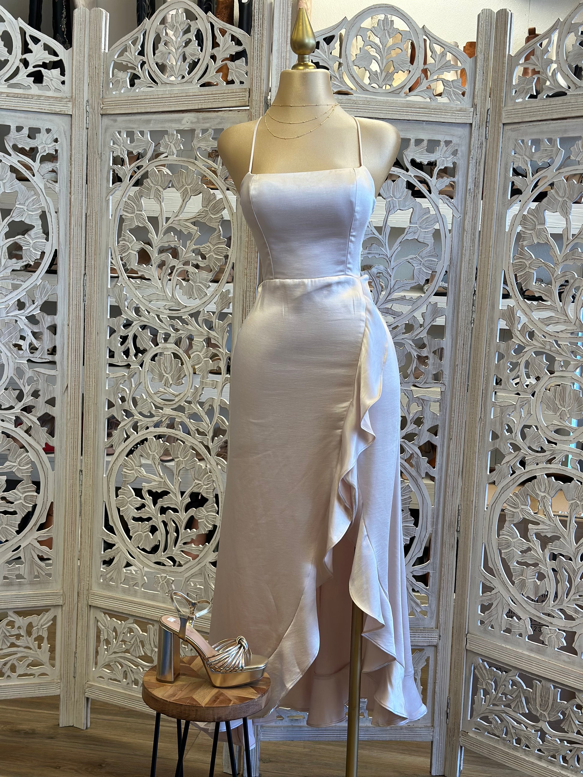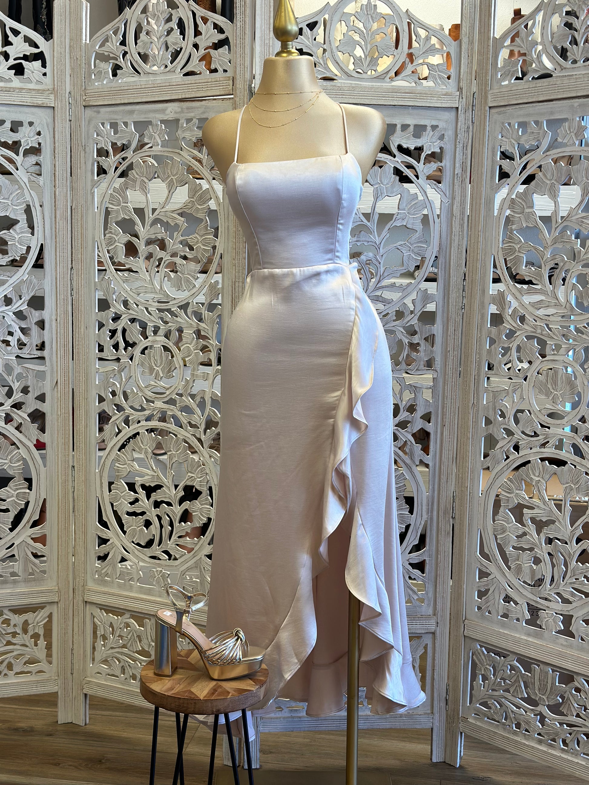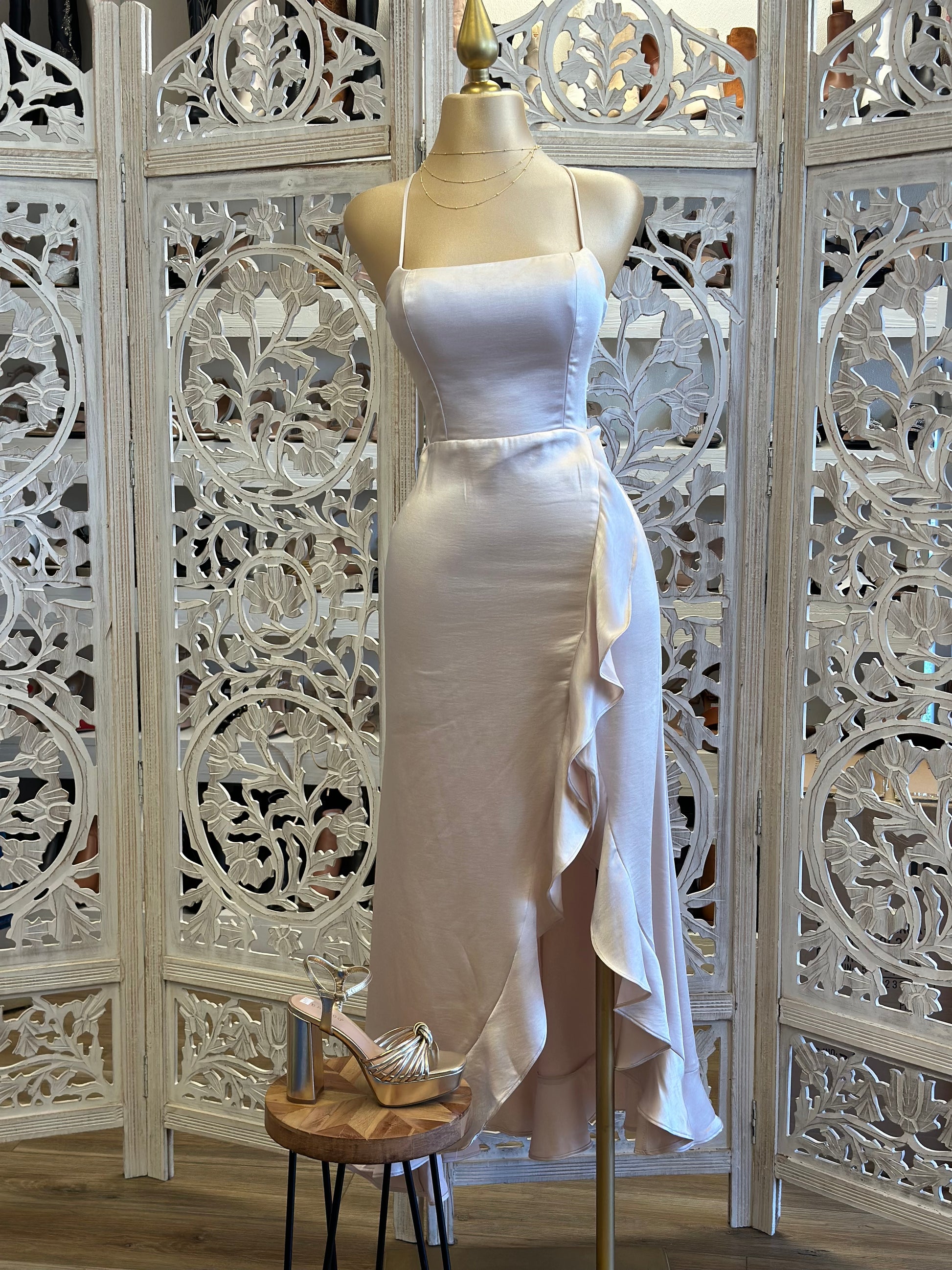 Champagne Strappy Ruffle Dress-Not Stretchy