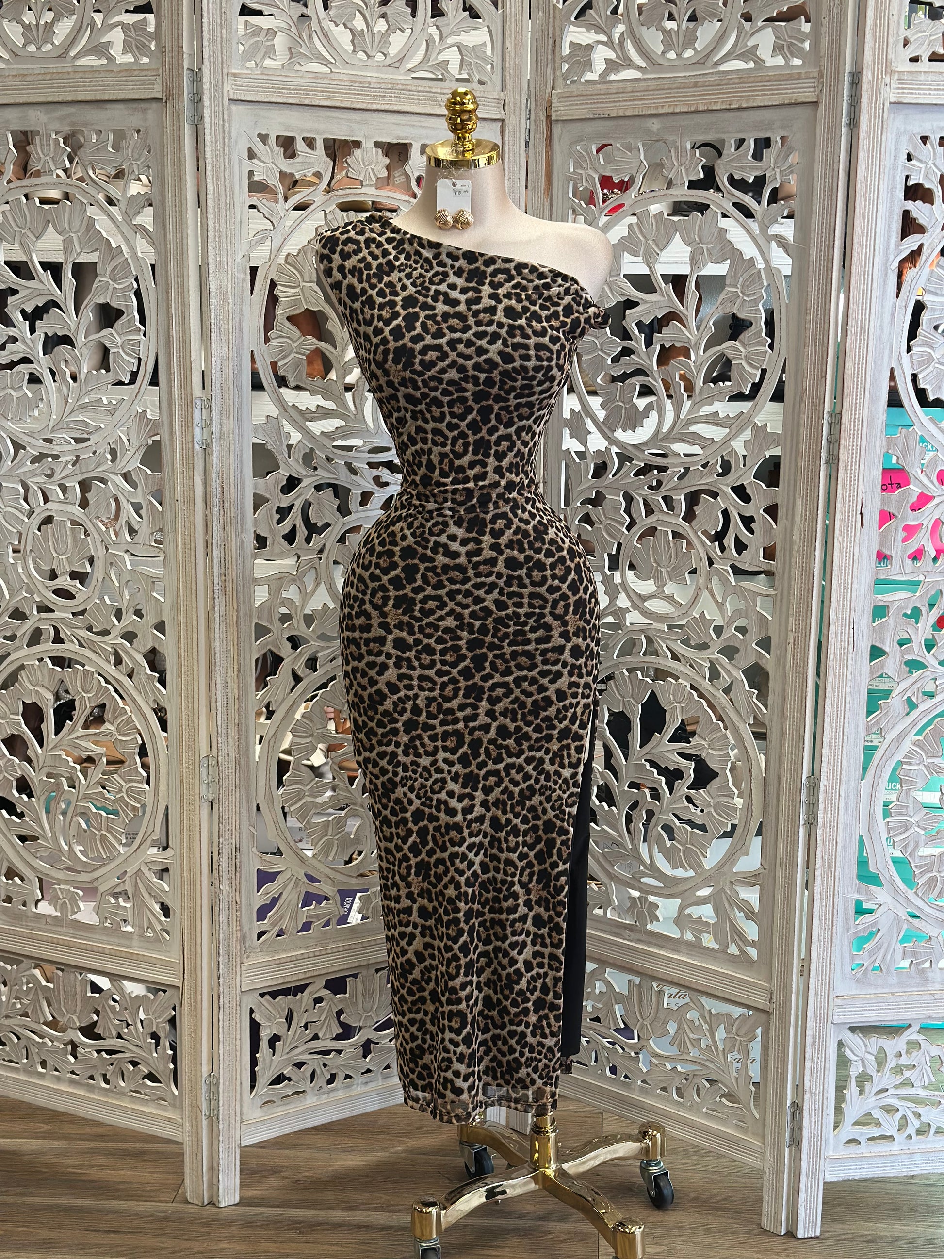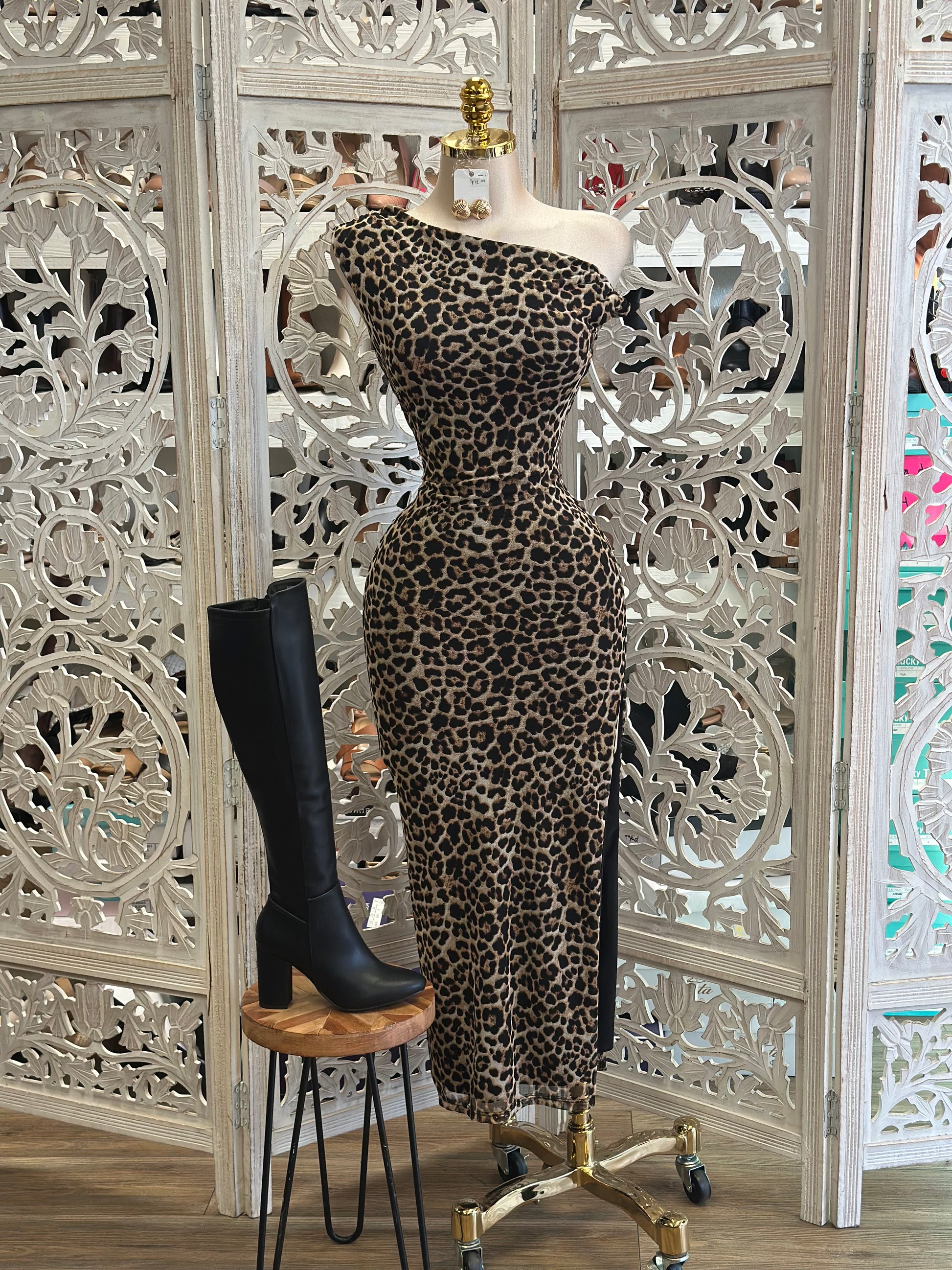 Cheetah One Sleeve Dress- Stretchy,Estira