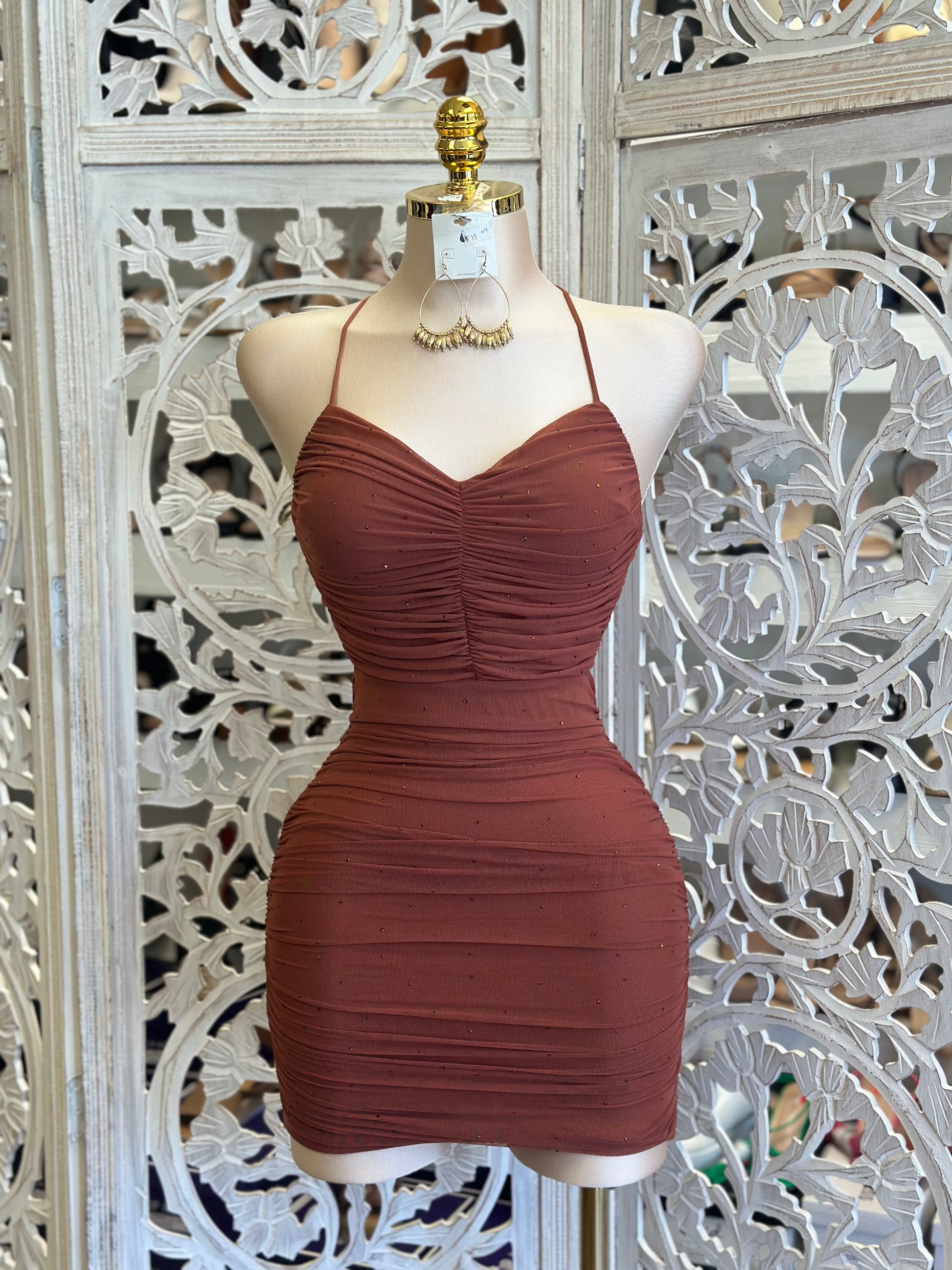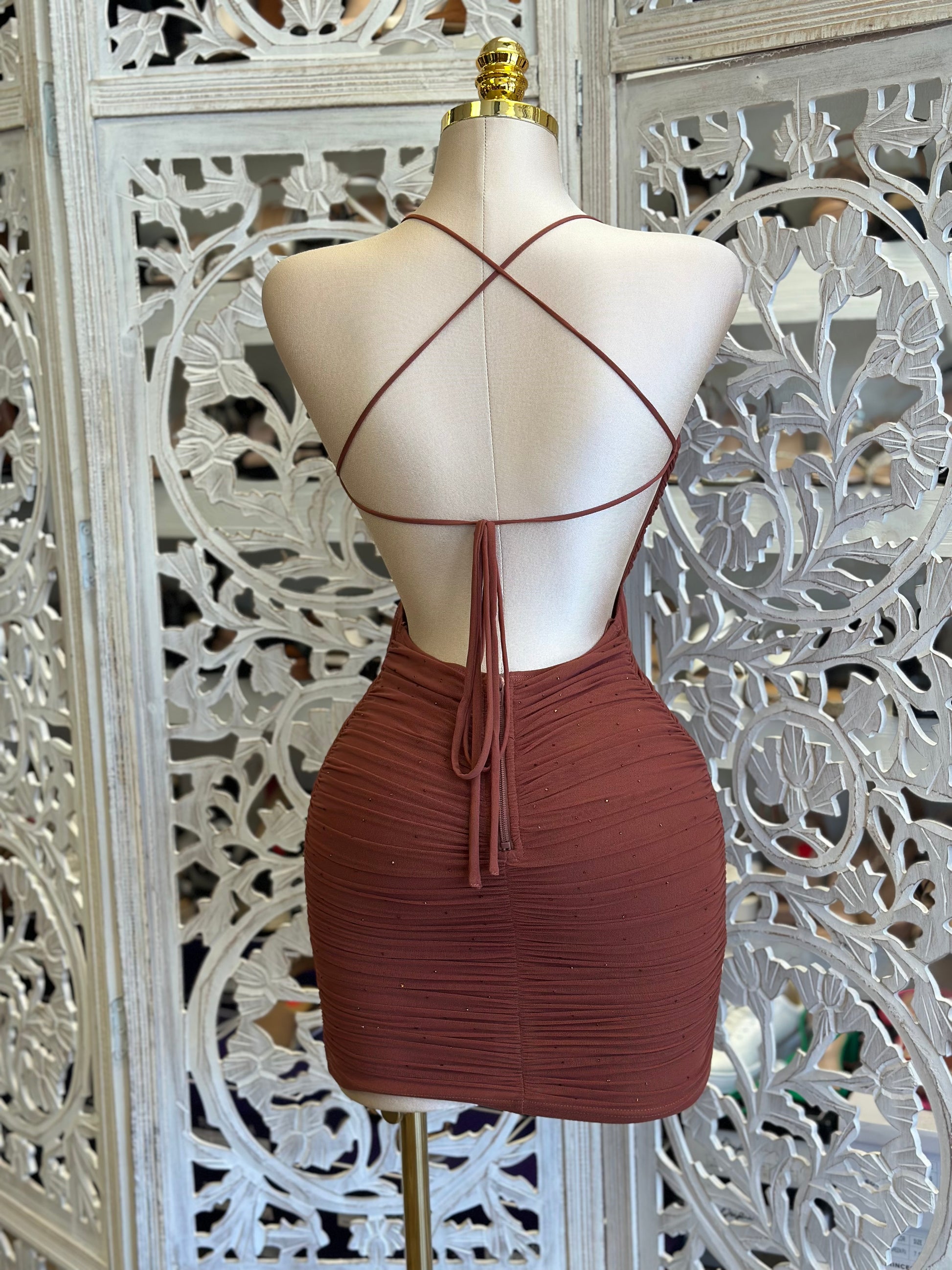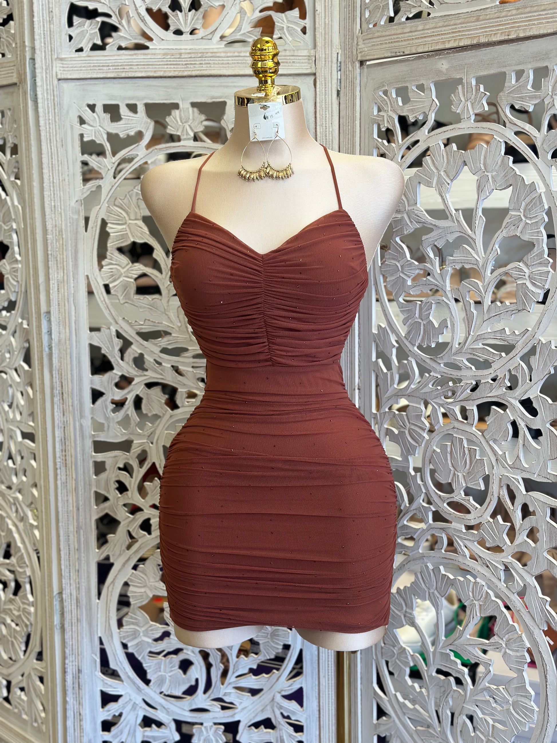 Cinnamon Rhinestone Mini Dress - Estira, Stretchy