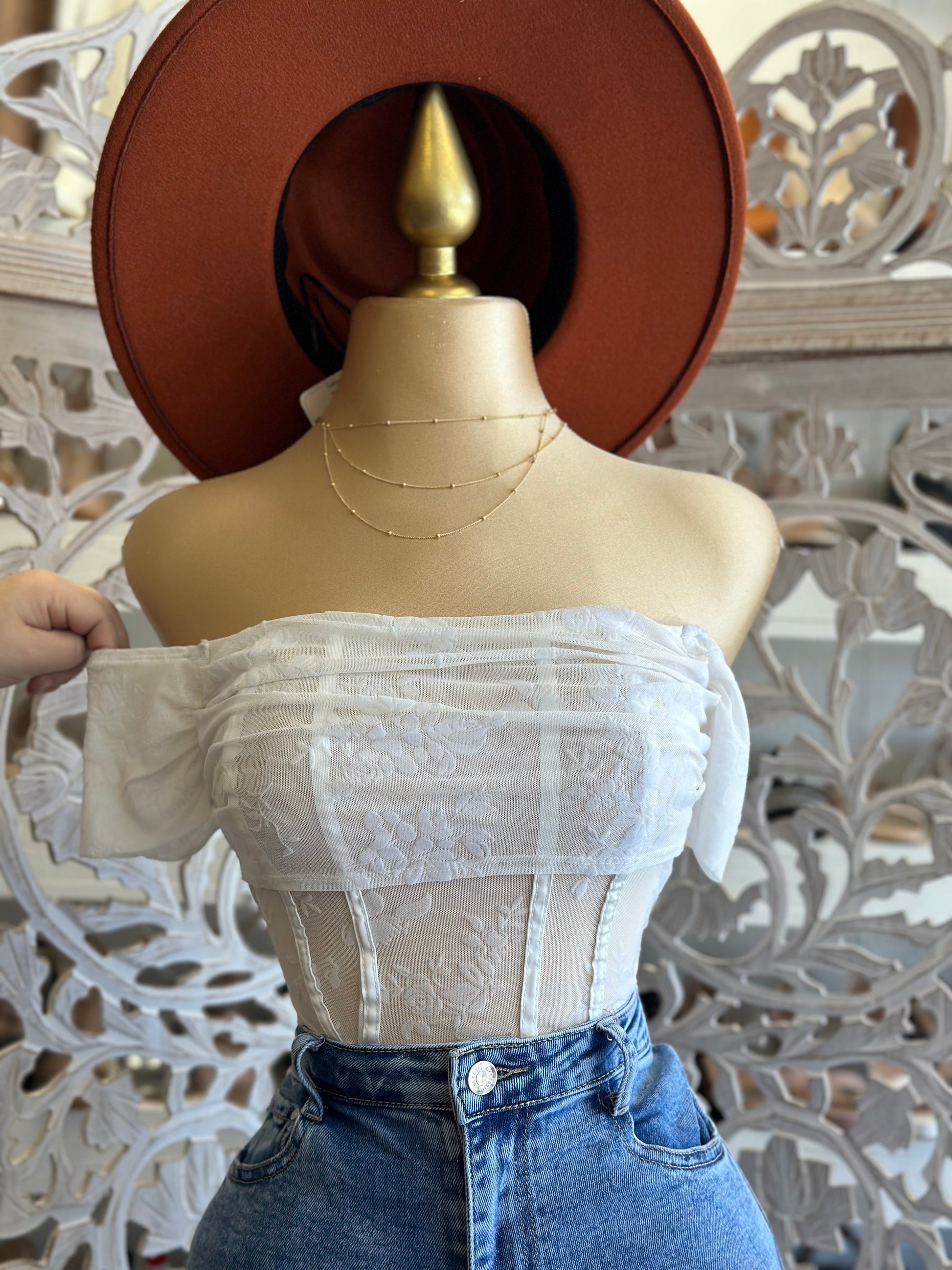 White Corset Mesh Off Shoulder Top- Stretchy