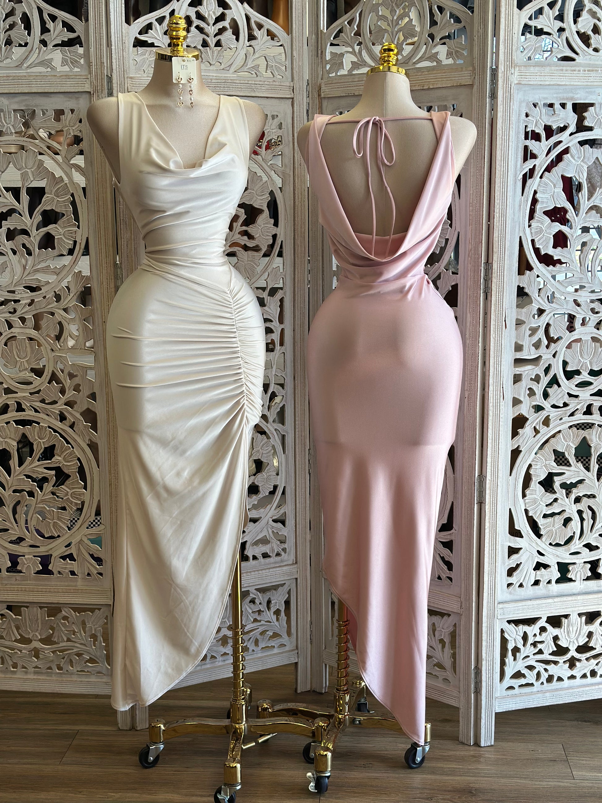 Cowl Neck Ruched Dress- Stretchy,Estira