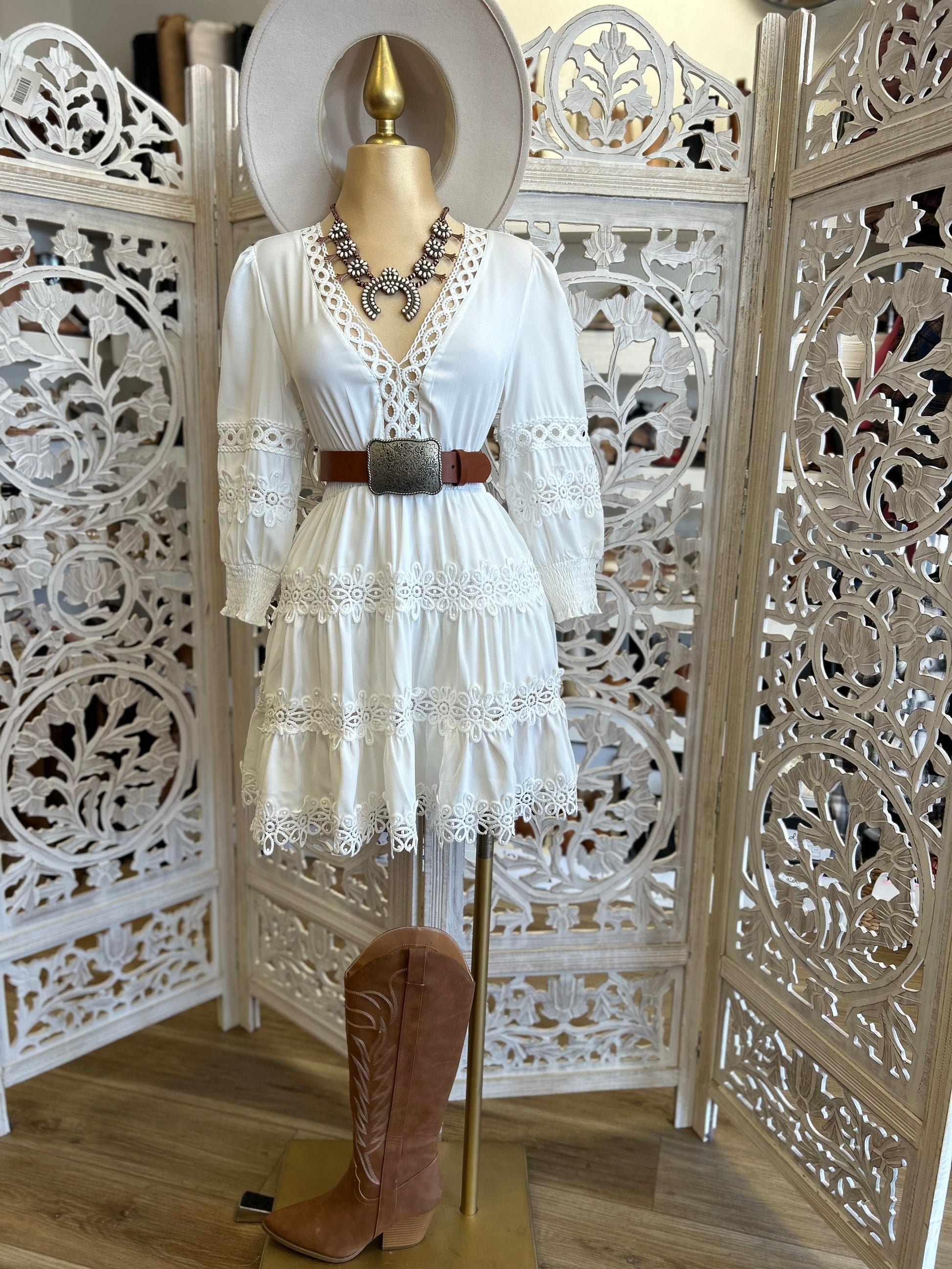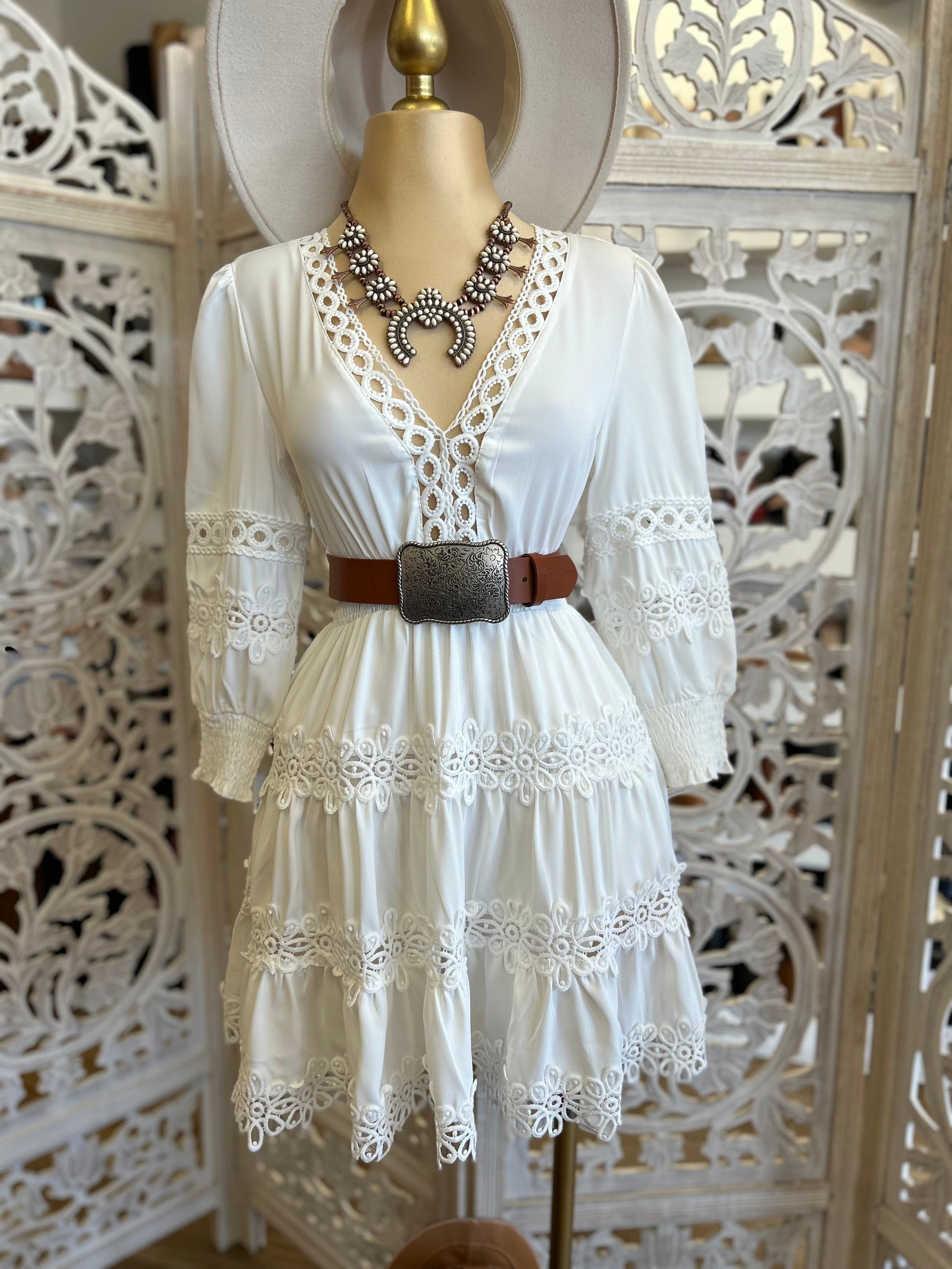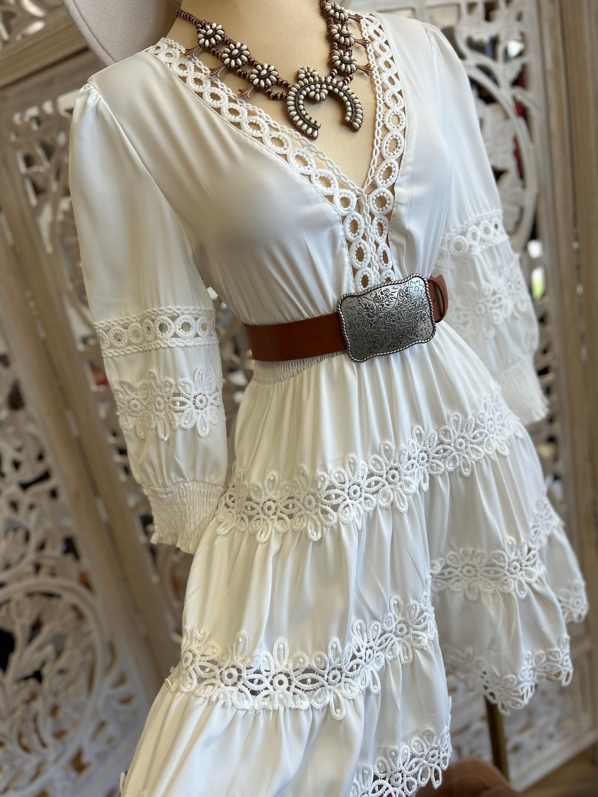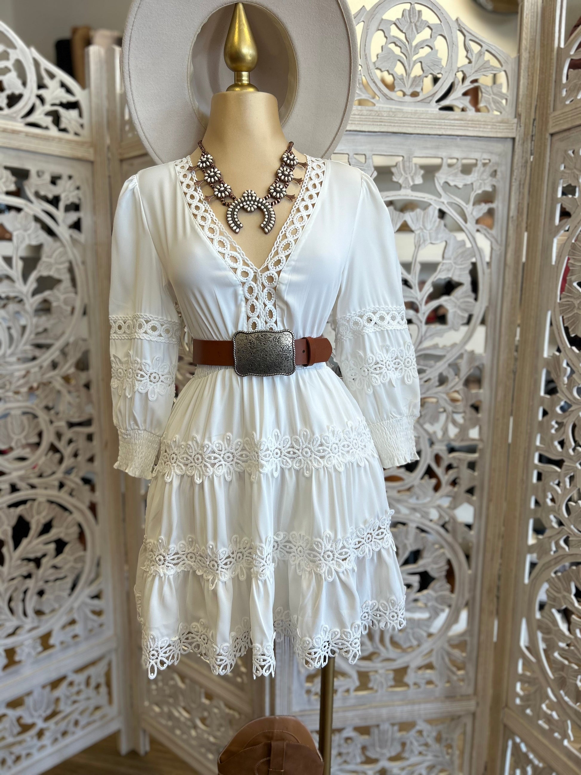 Crochet Trimmed White Dress- Stretchy