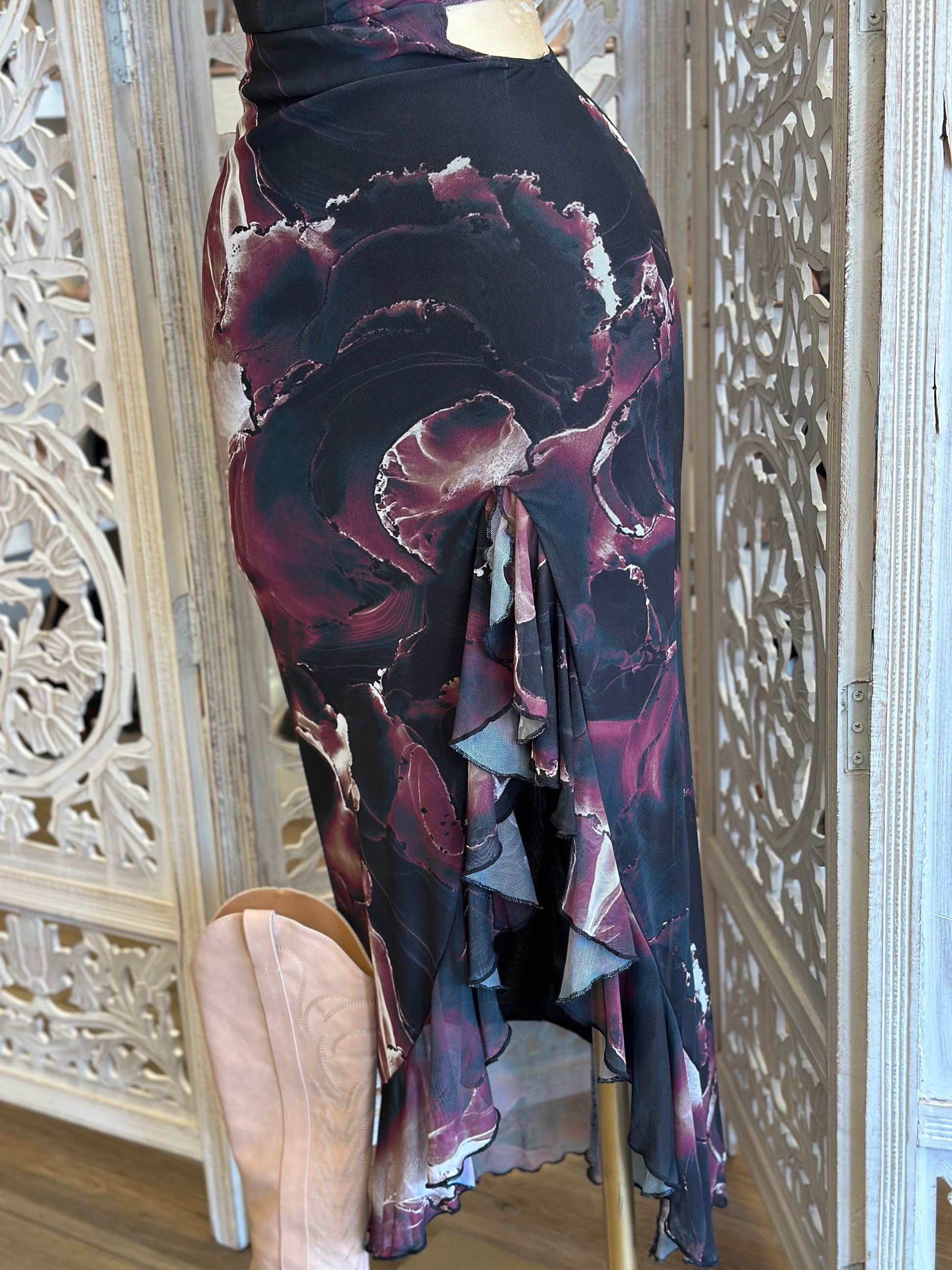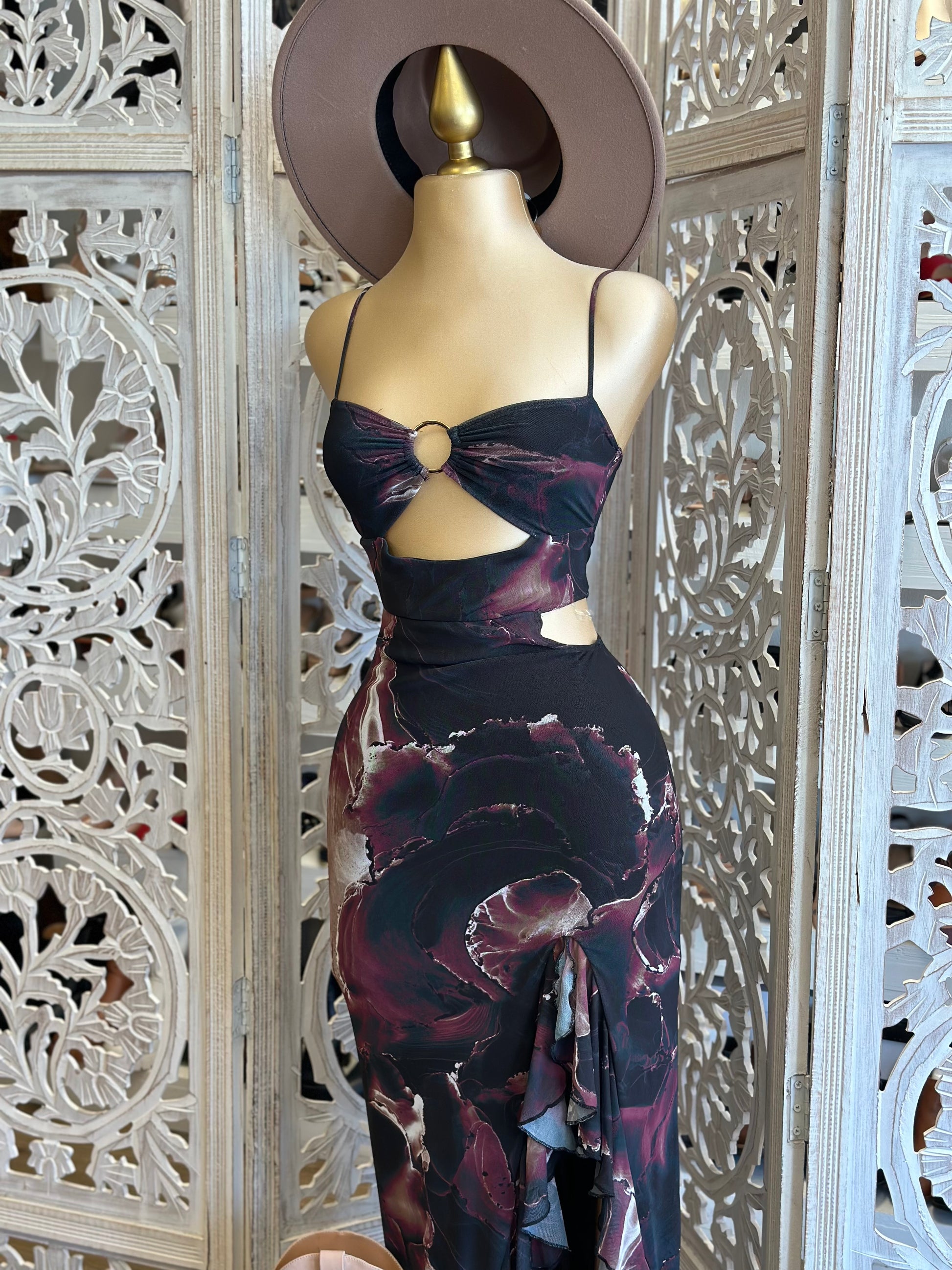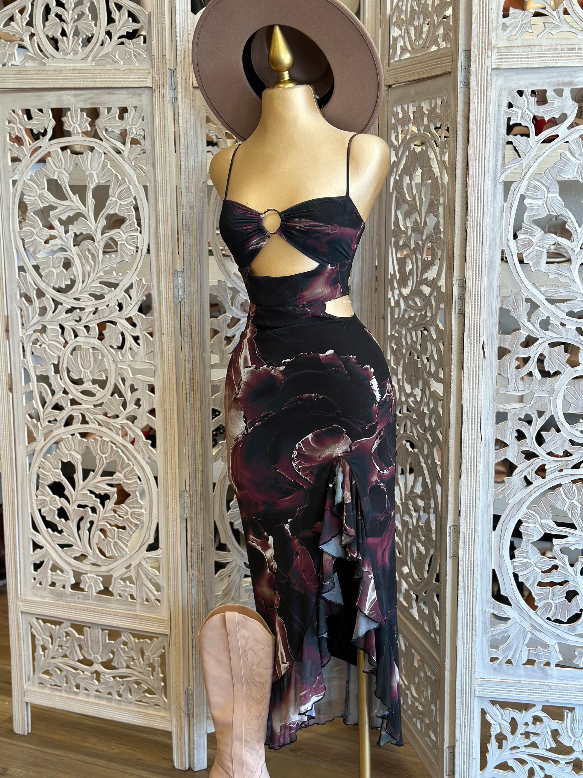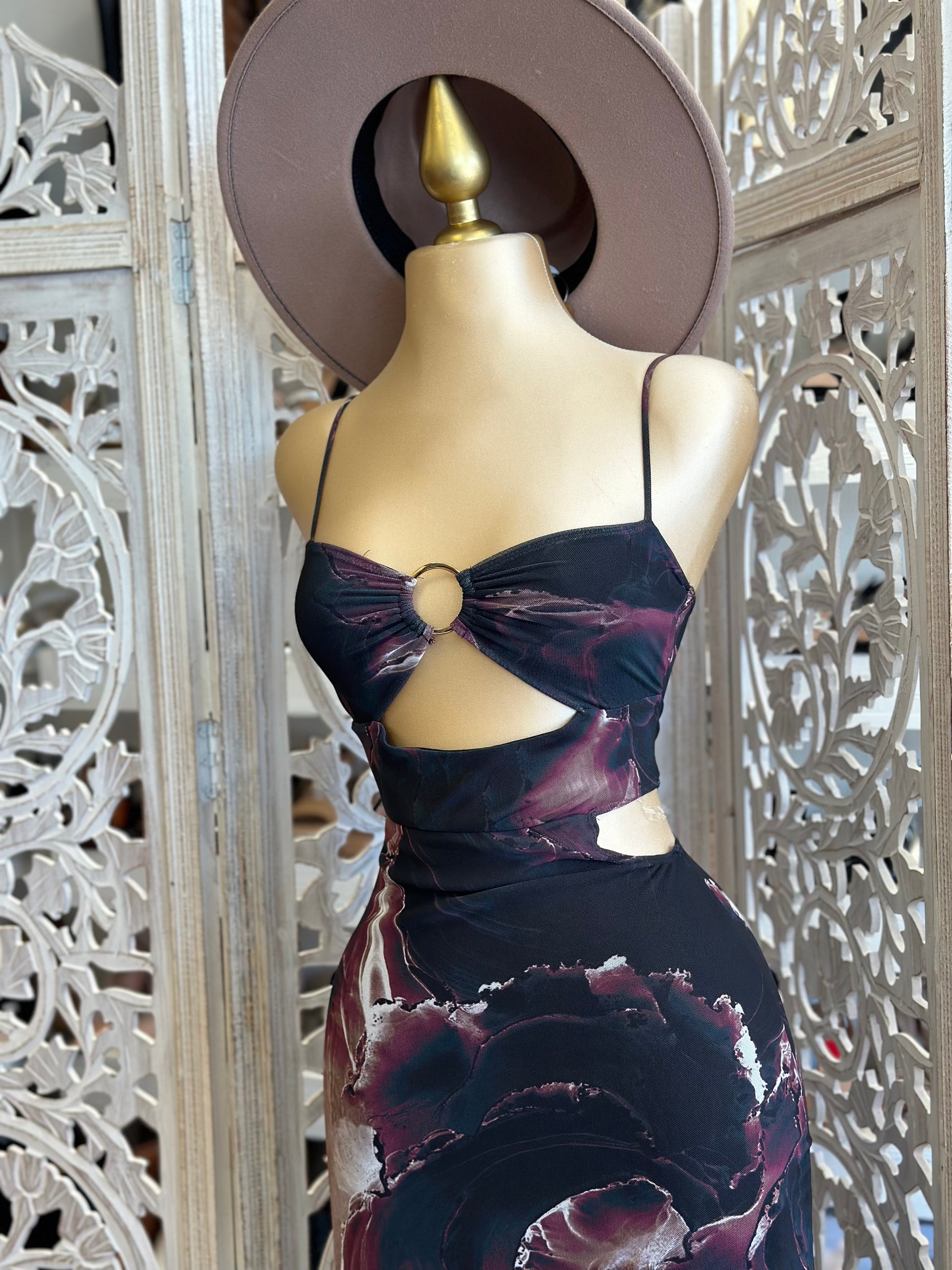 Cutout Black Marble Dress- Stretchy