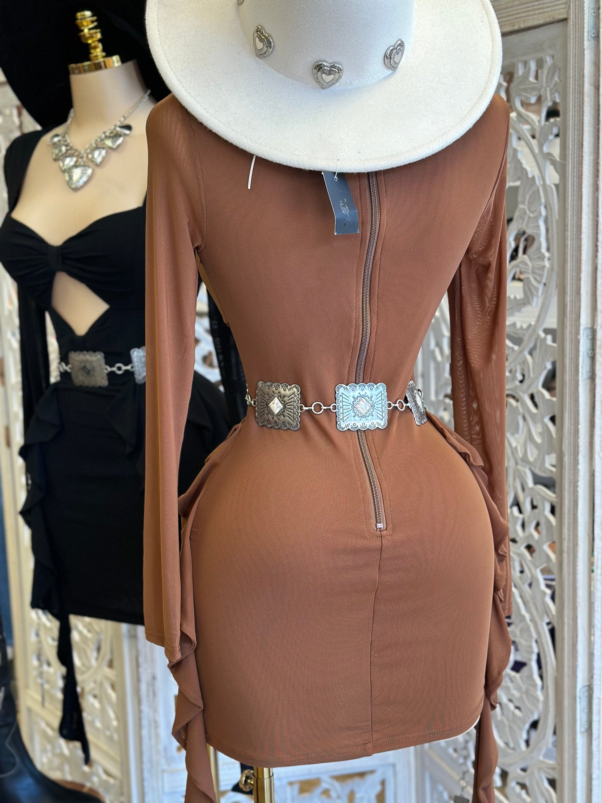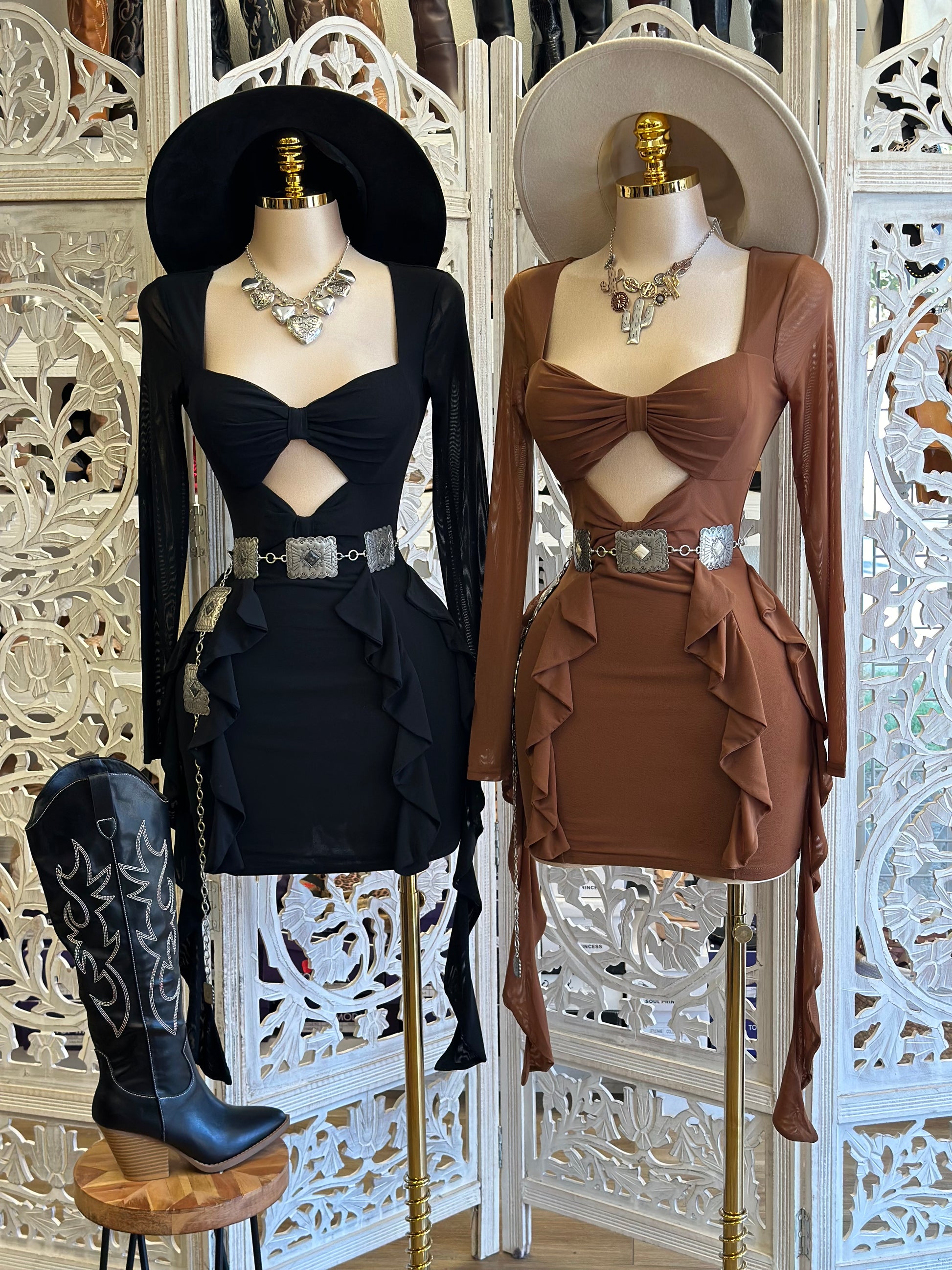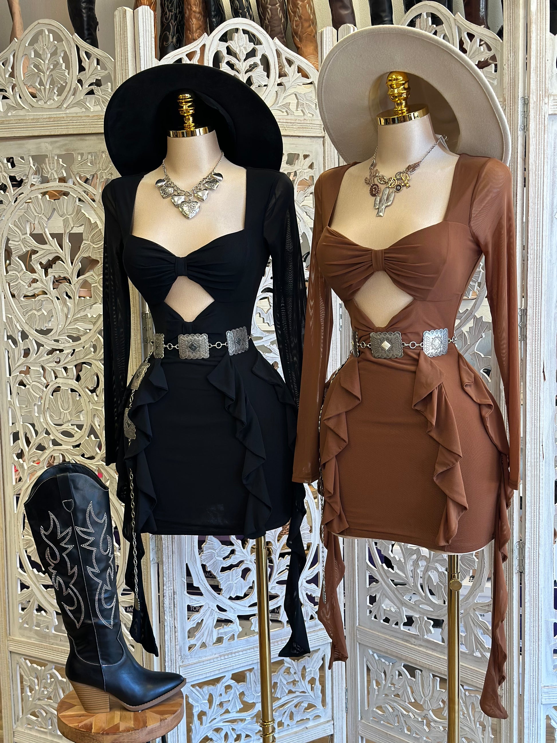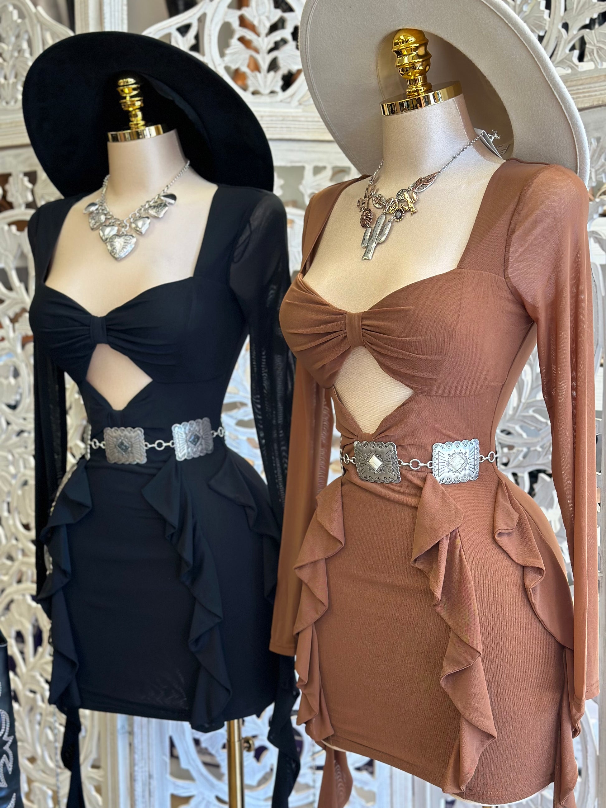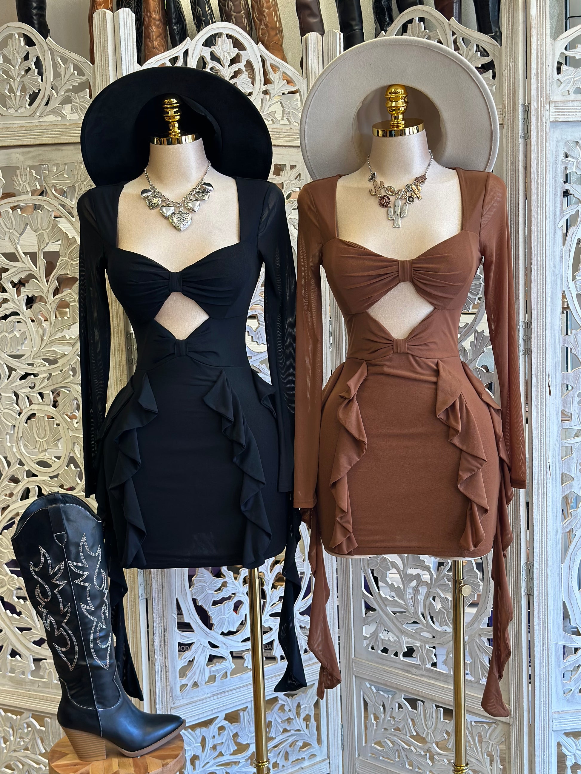 Cutout Ruffle Tailed Mini Dress- Stretchy, Estira