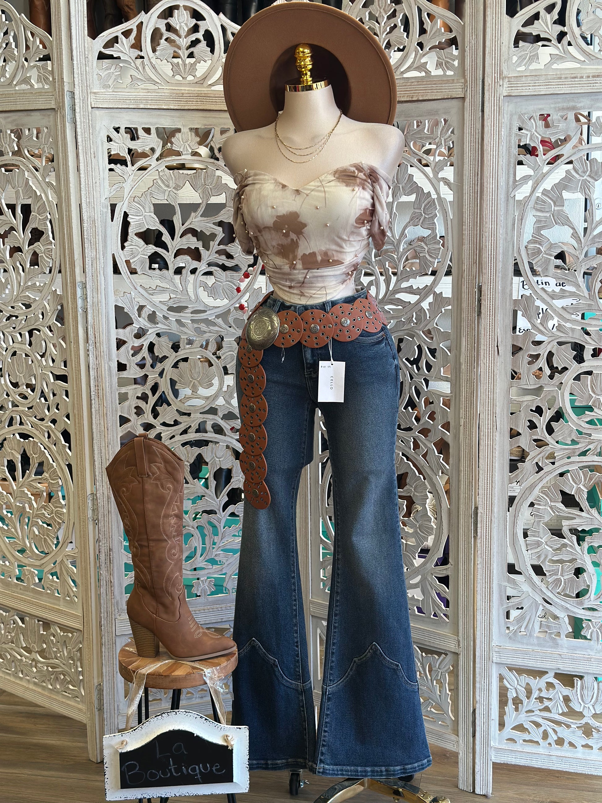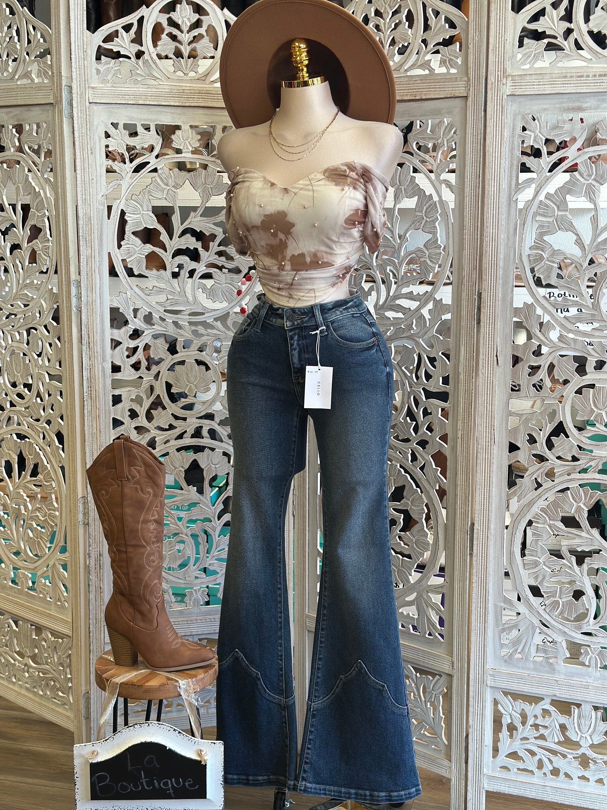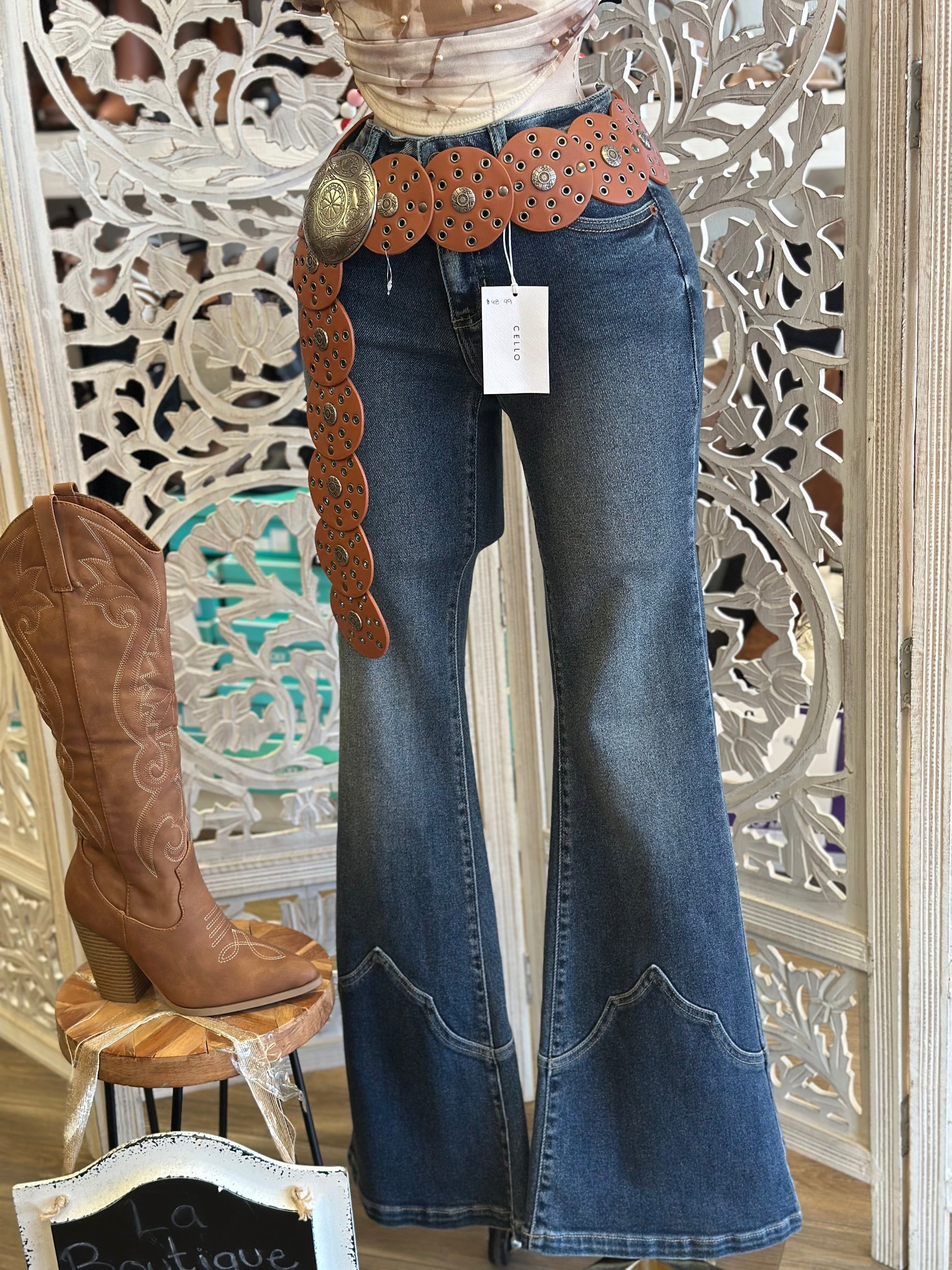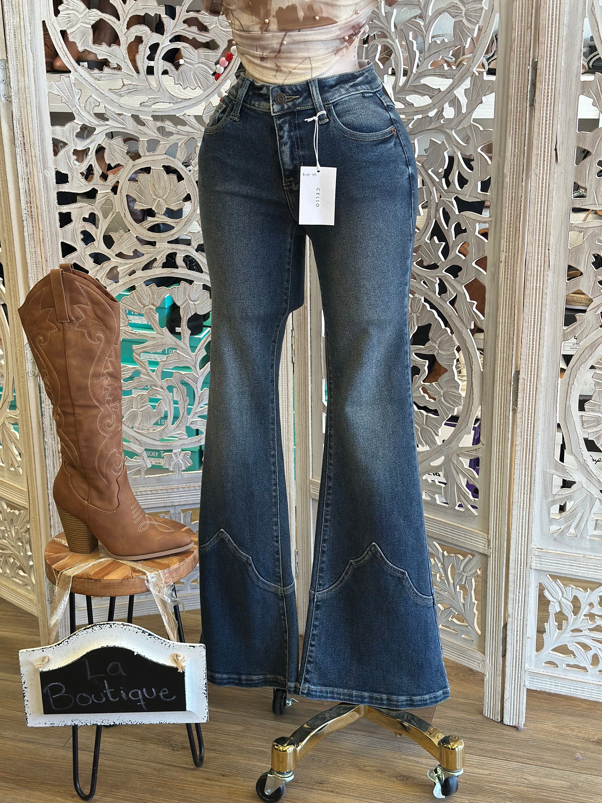 Dark Flare Embroidered Jeans-Stretchy Estira