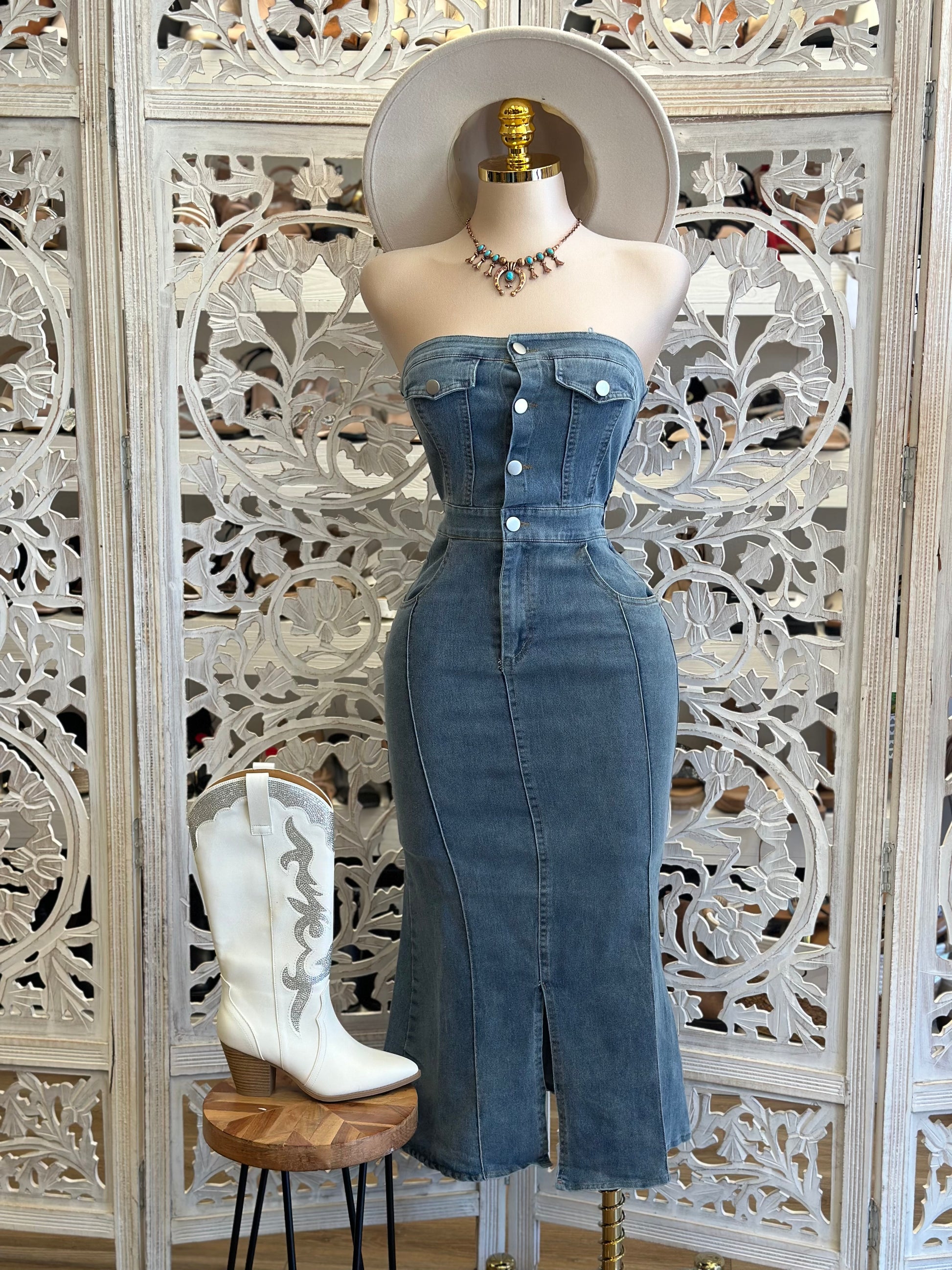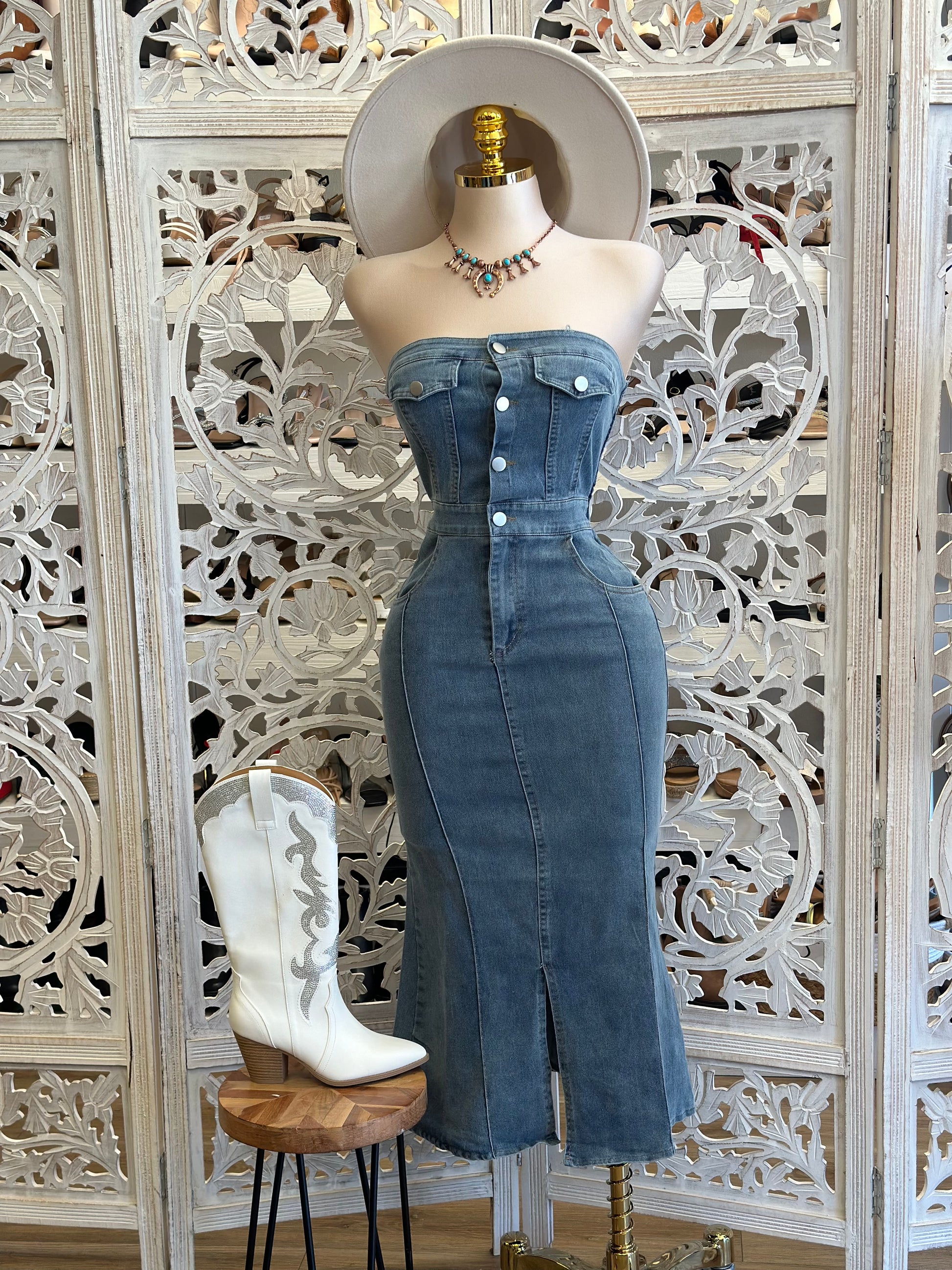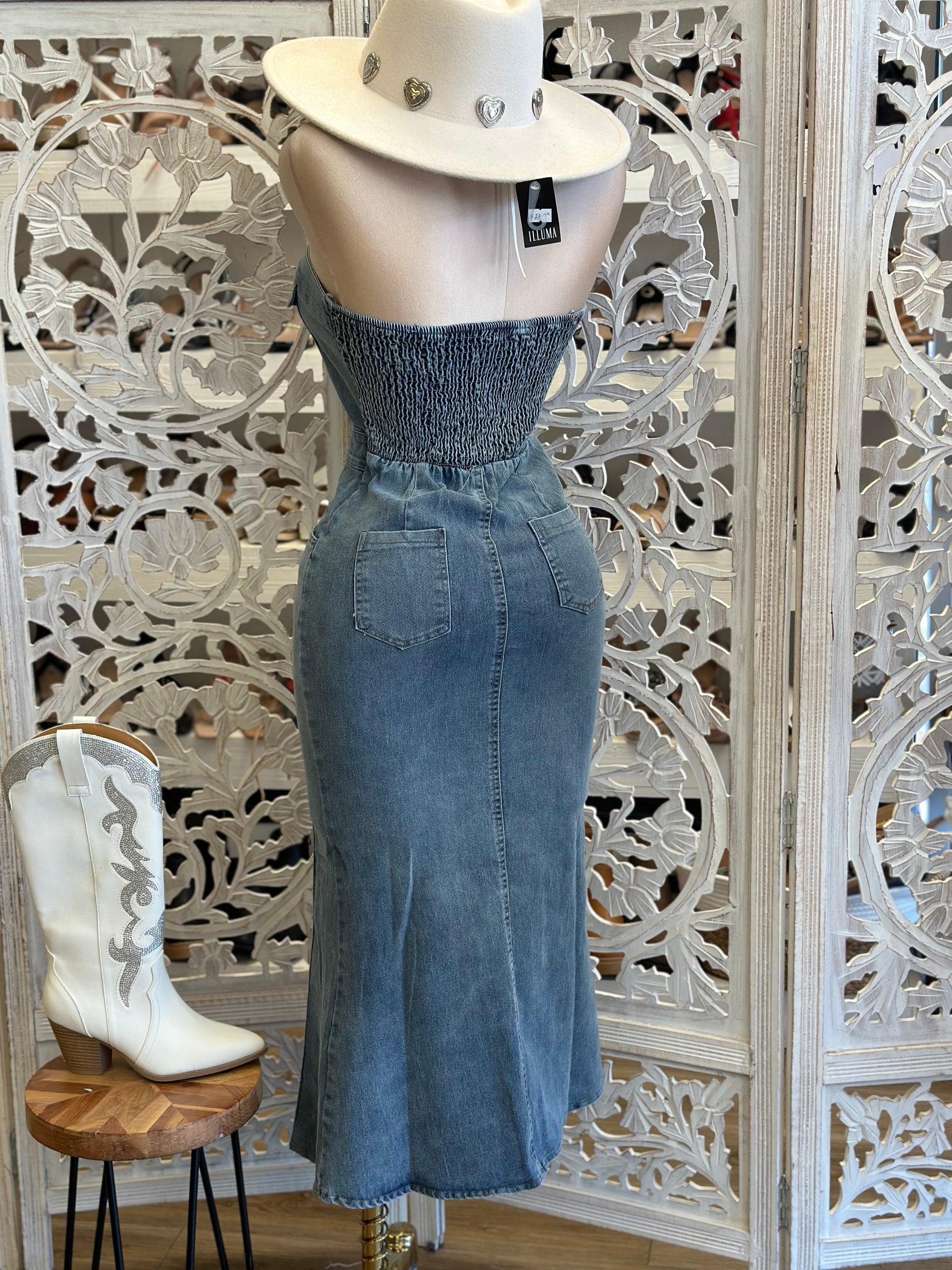 Denim Button Up Midi Dress - No Estira Poco, Slightly Stretchy