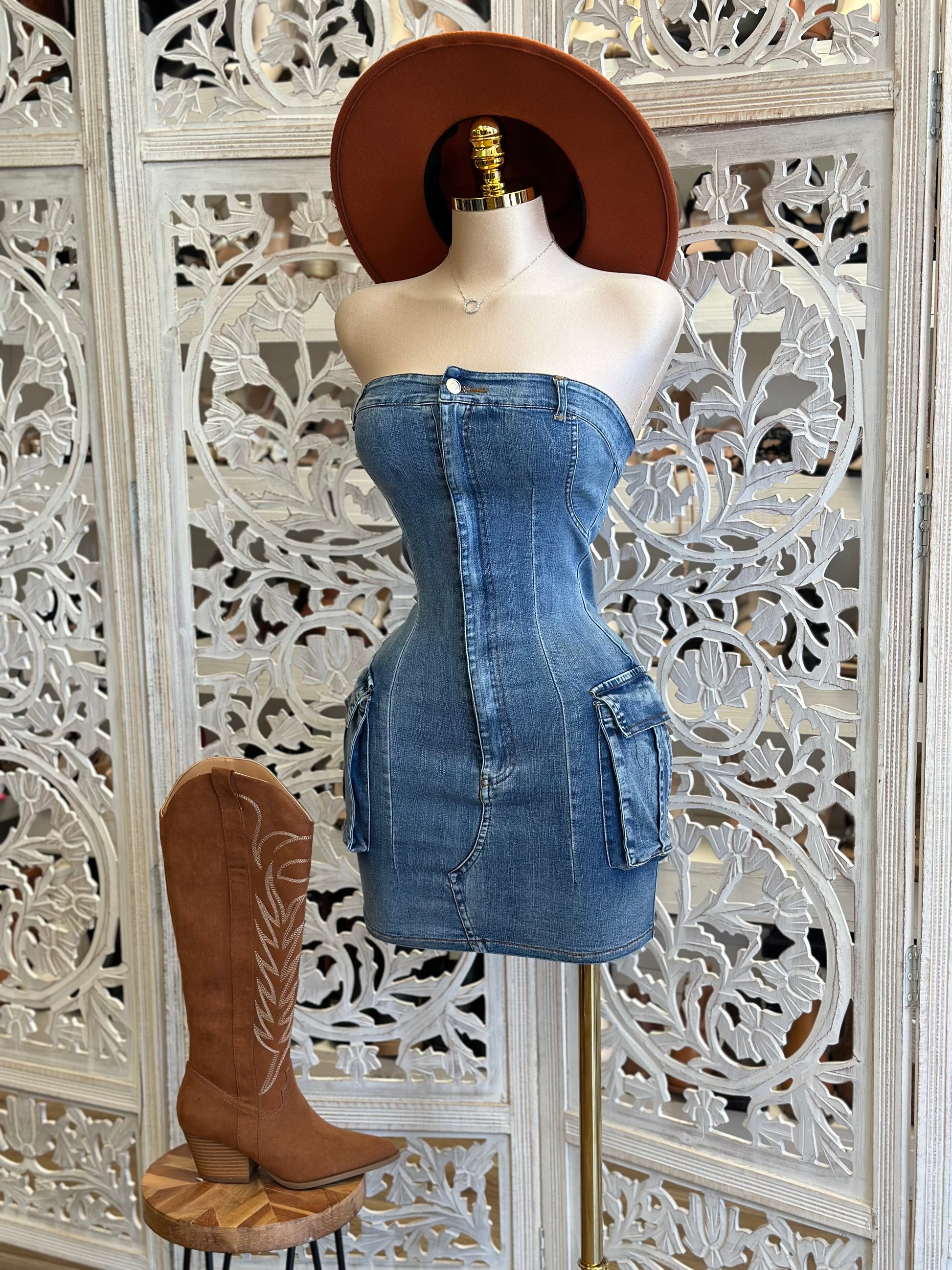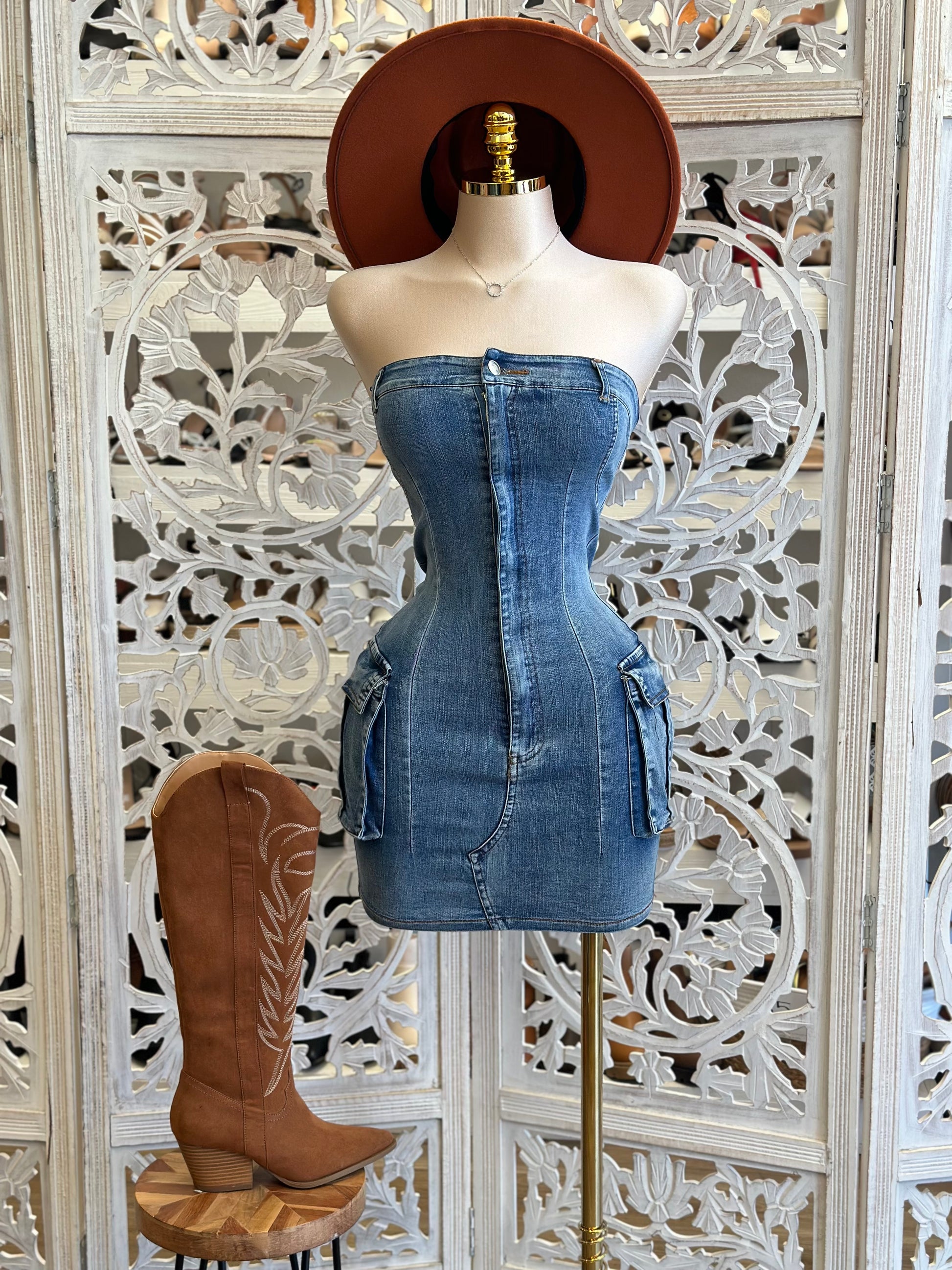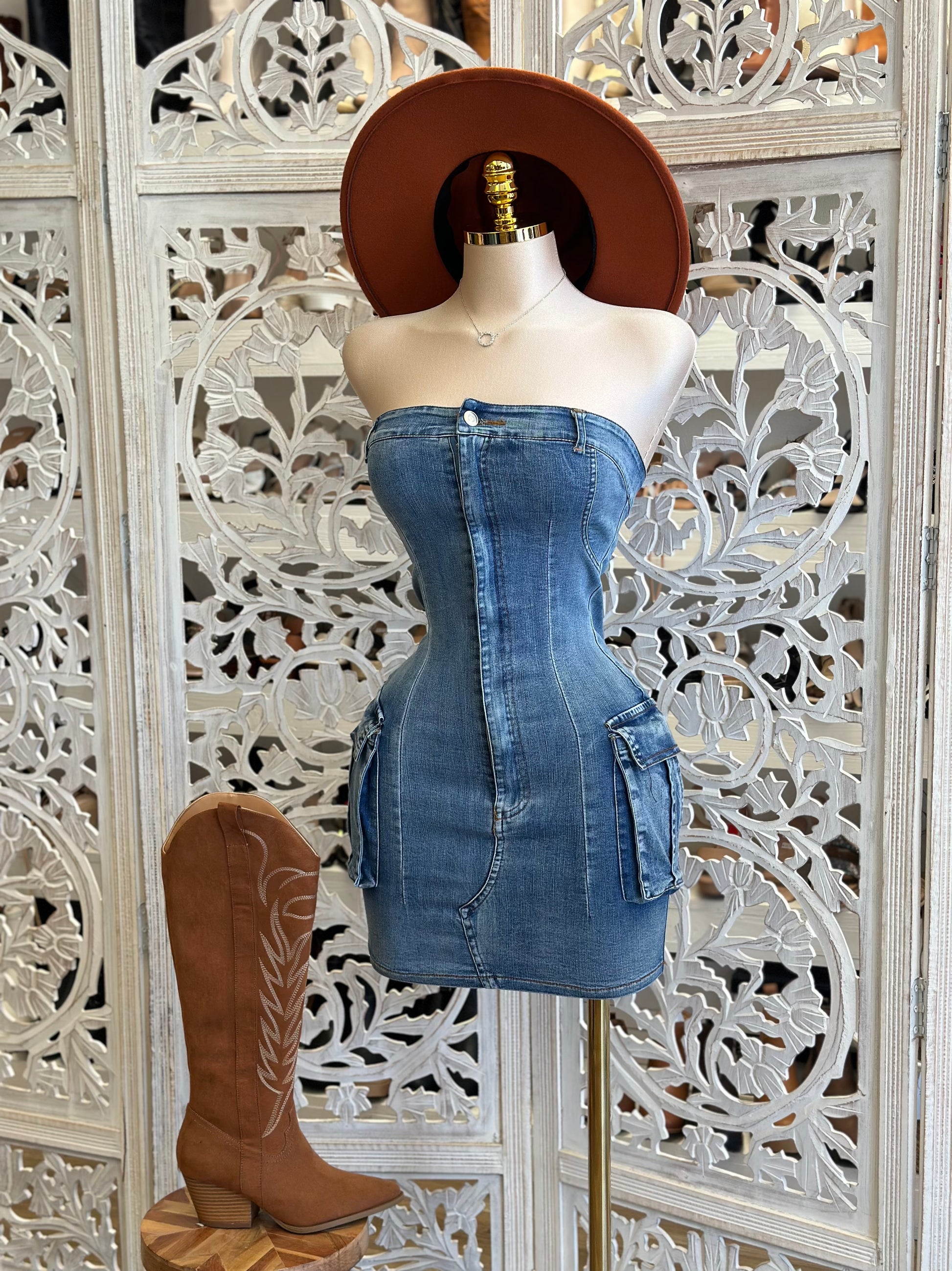 Denim Cargo Mini Dress - No Estira Poco, Slightly Stretchy