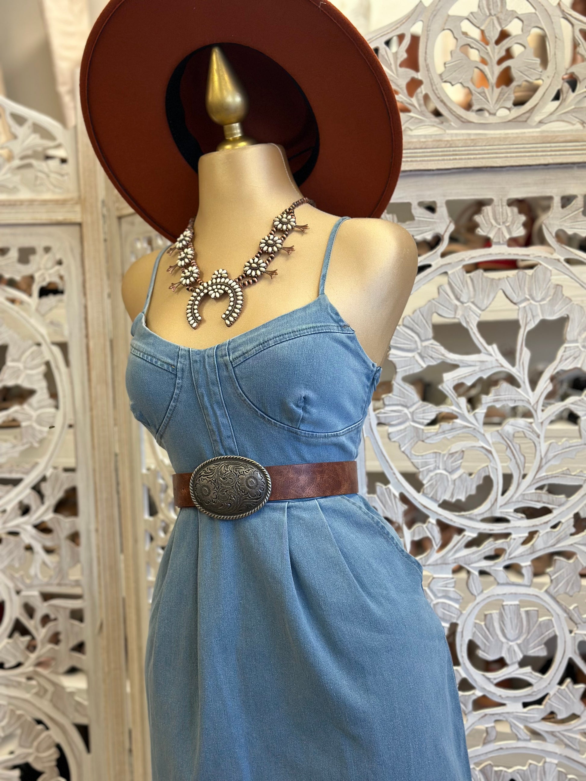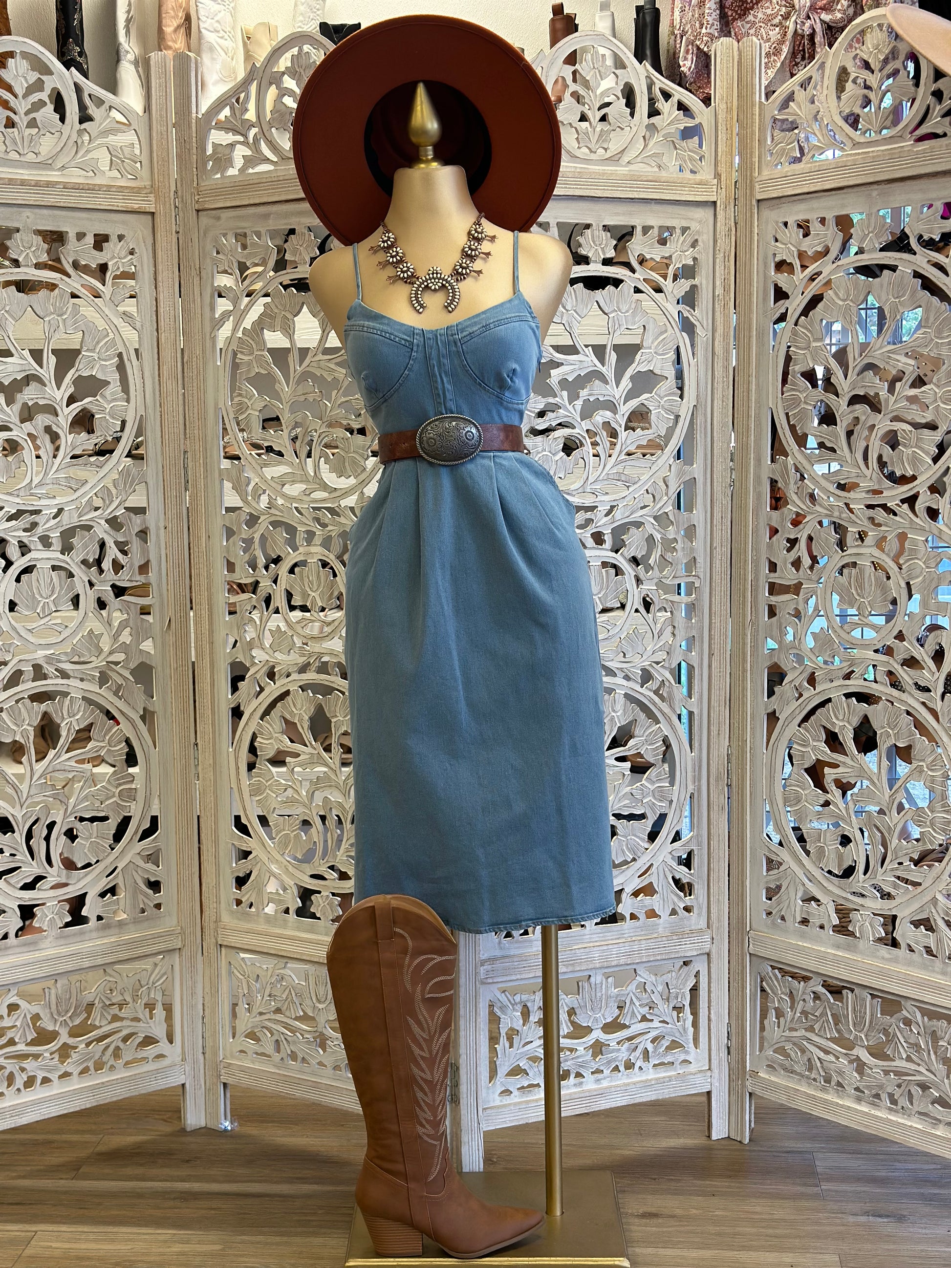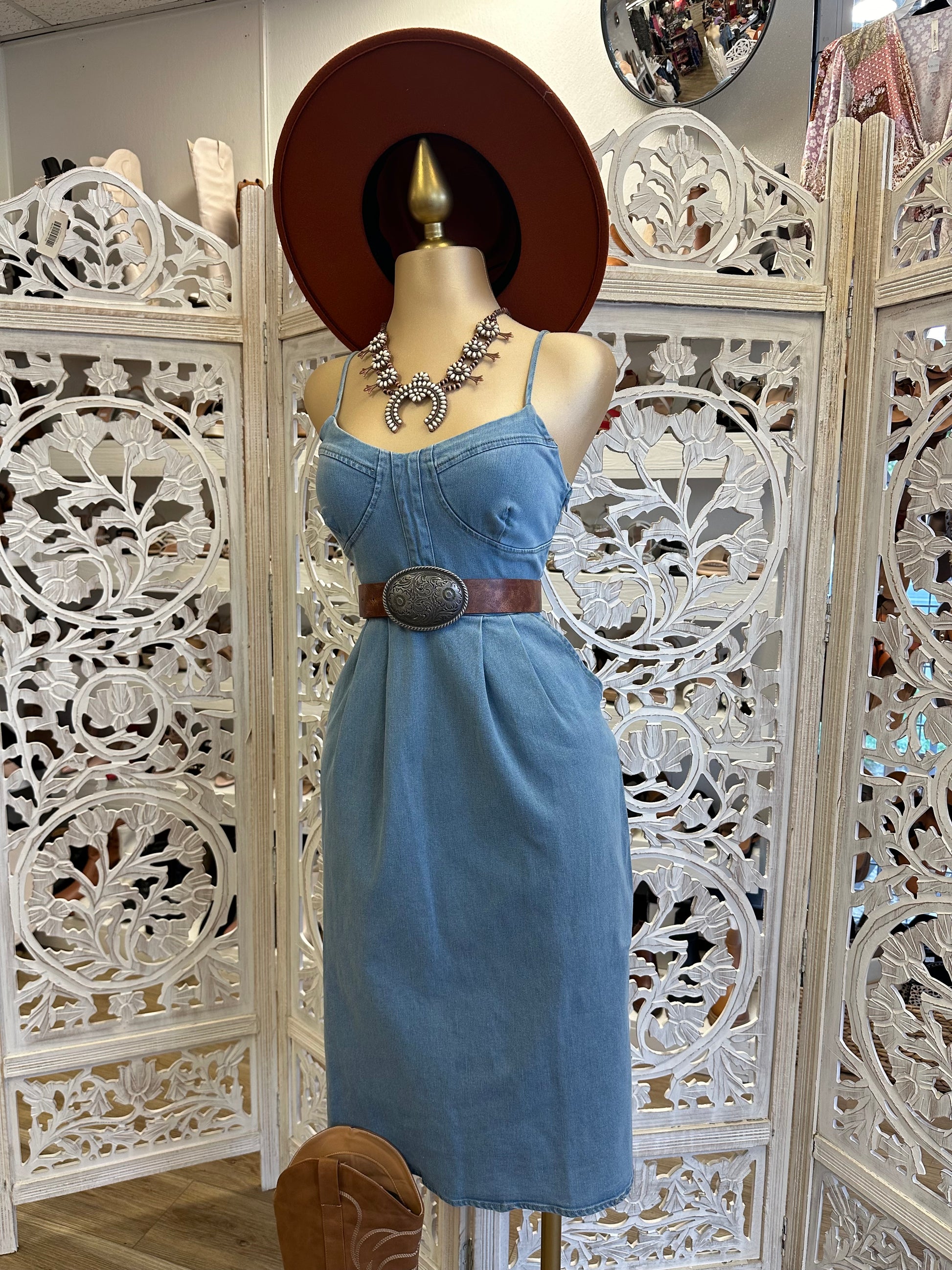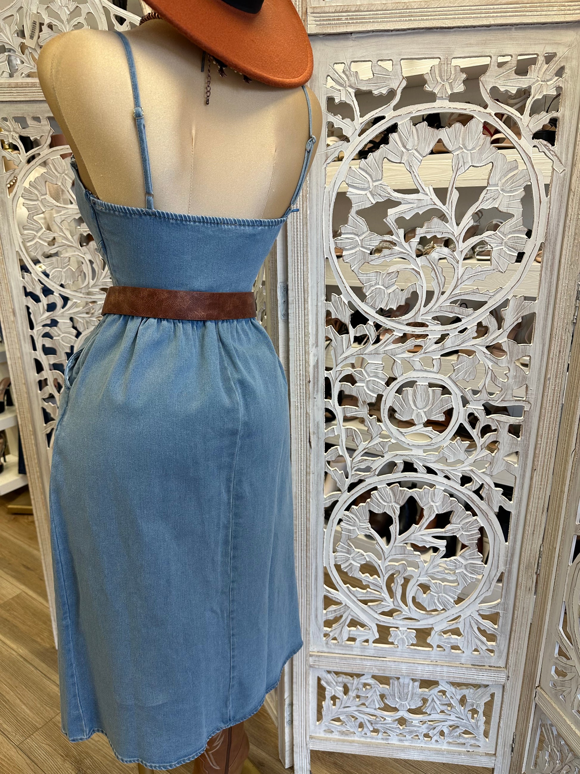 Denim Midi Dress- Stretchy