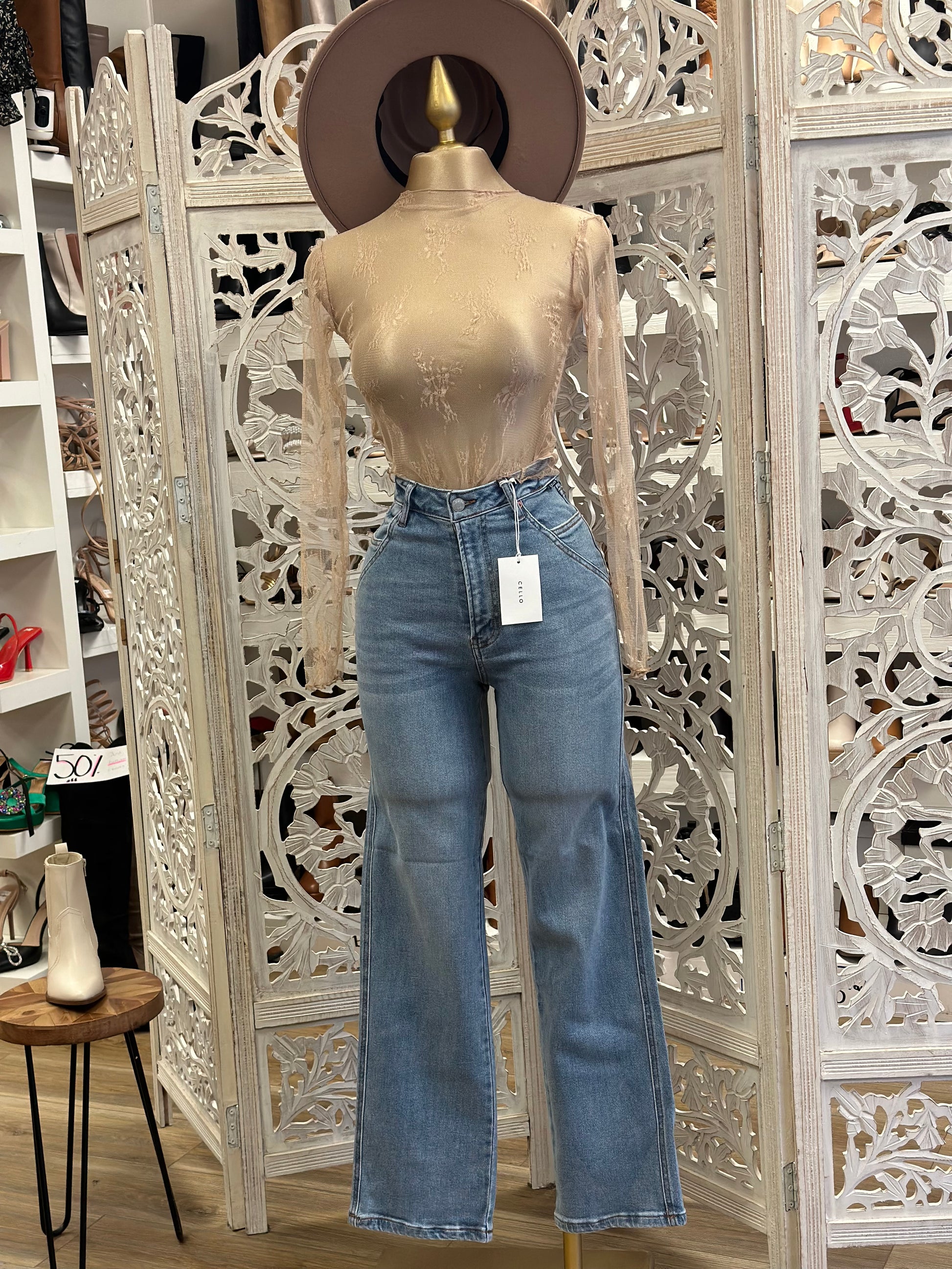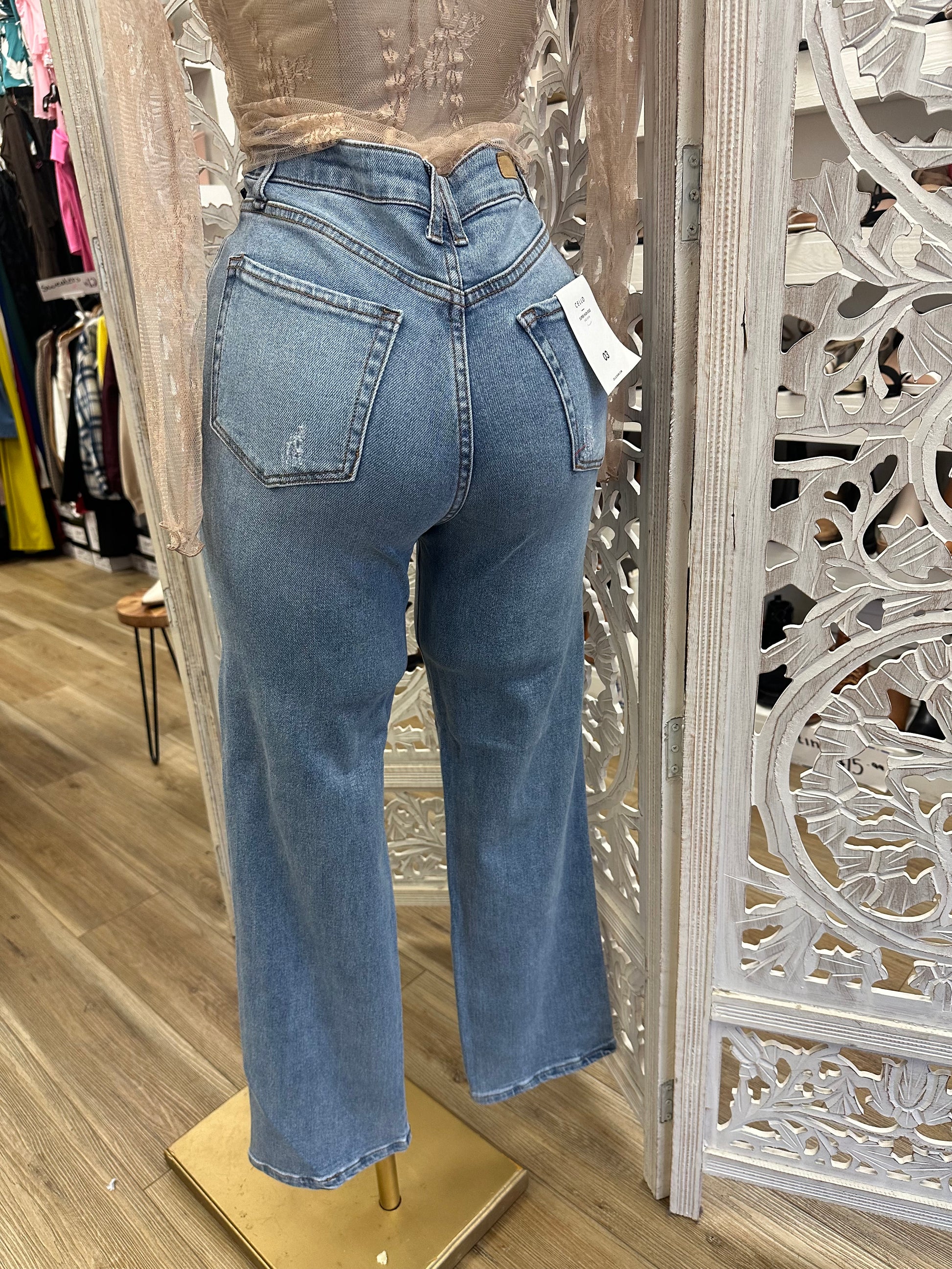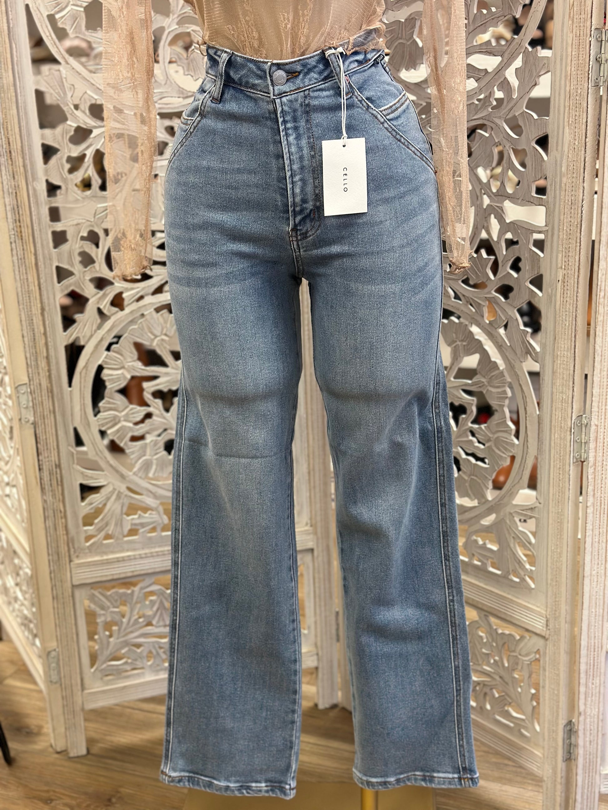 Double Pocket High Rise Wide Leg Jeans- Stretchy