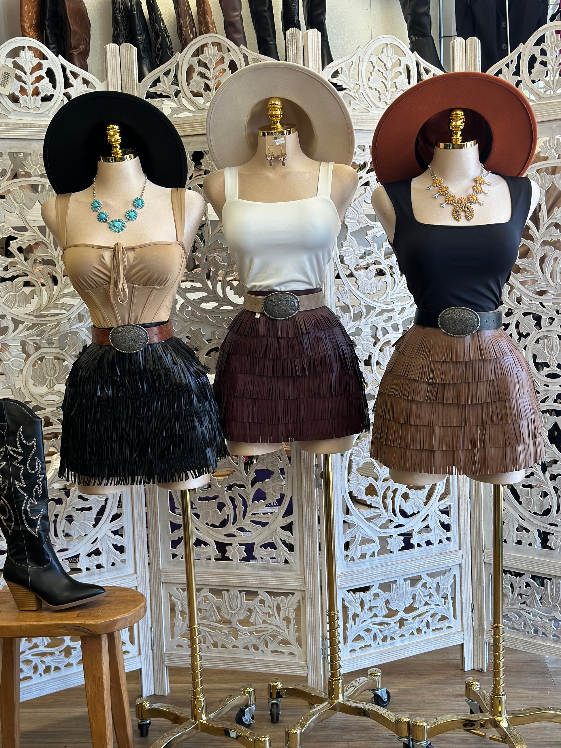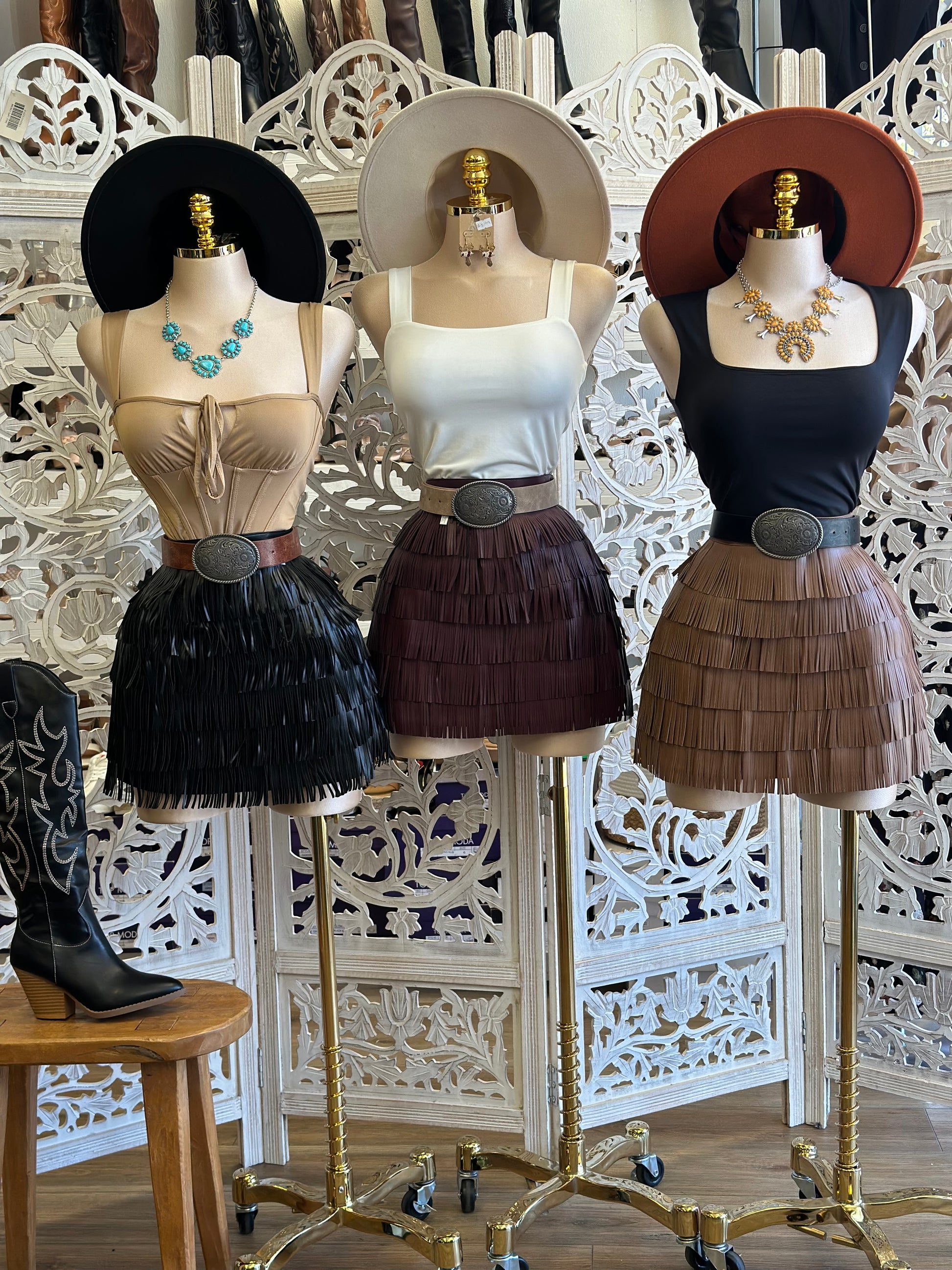 Faux Leather Fringe Mini Skirt-No Estira, Not Stretchy