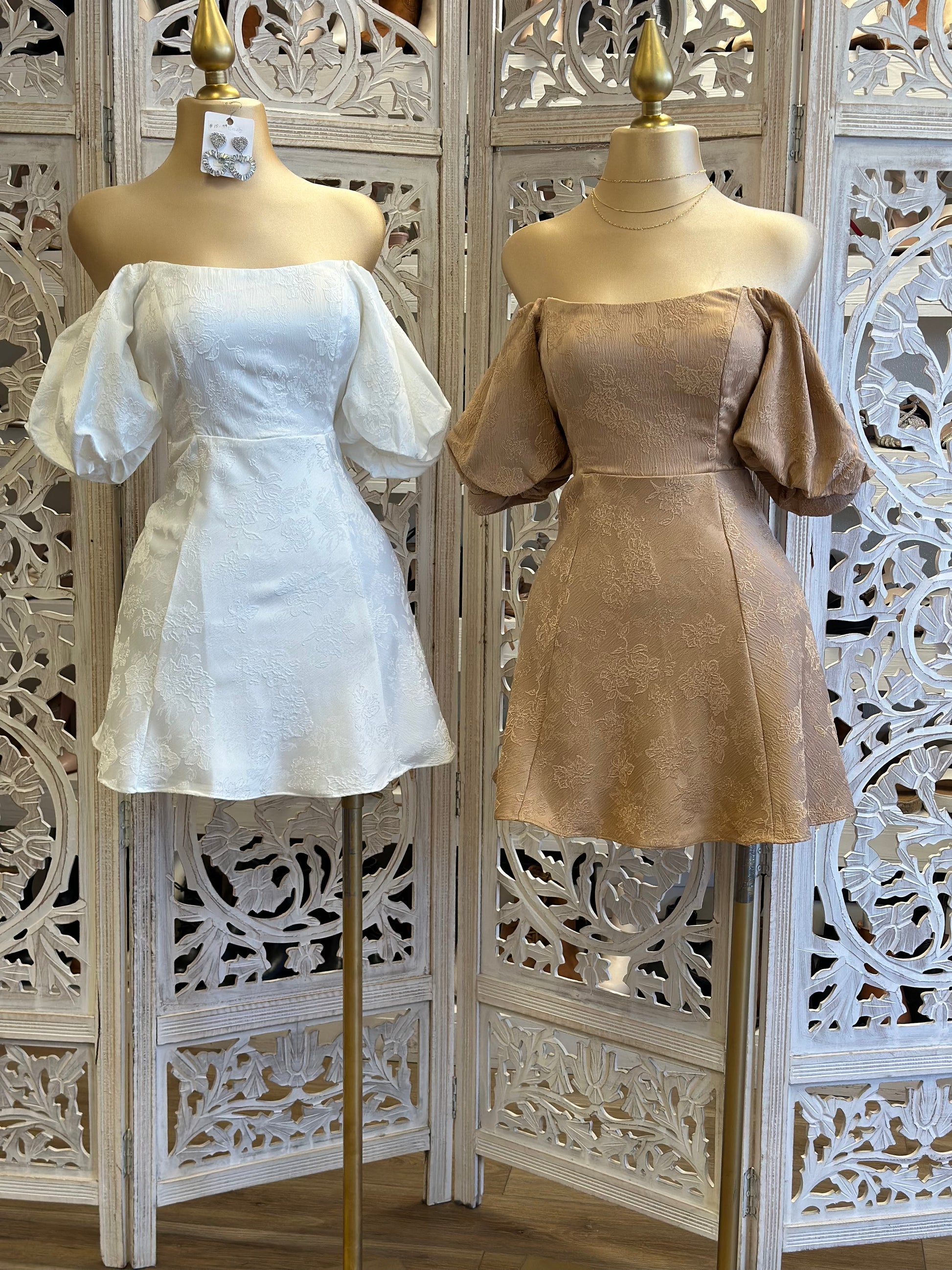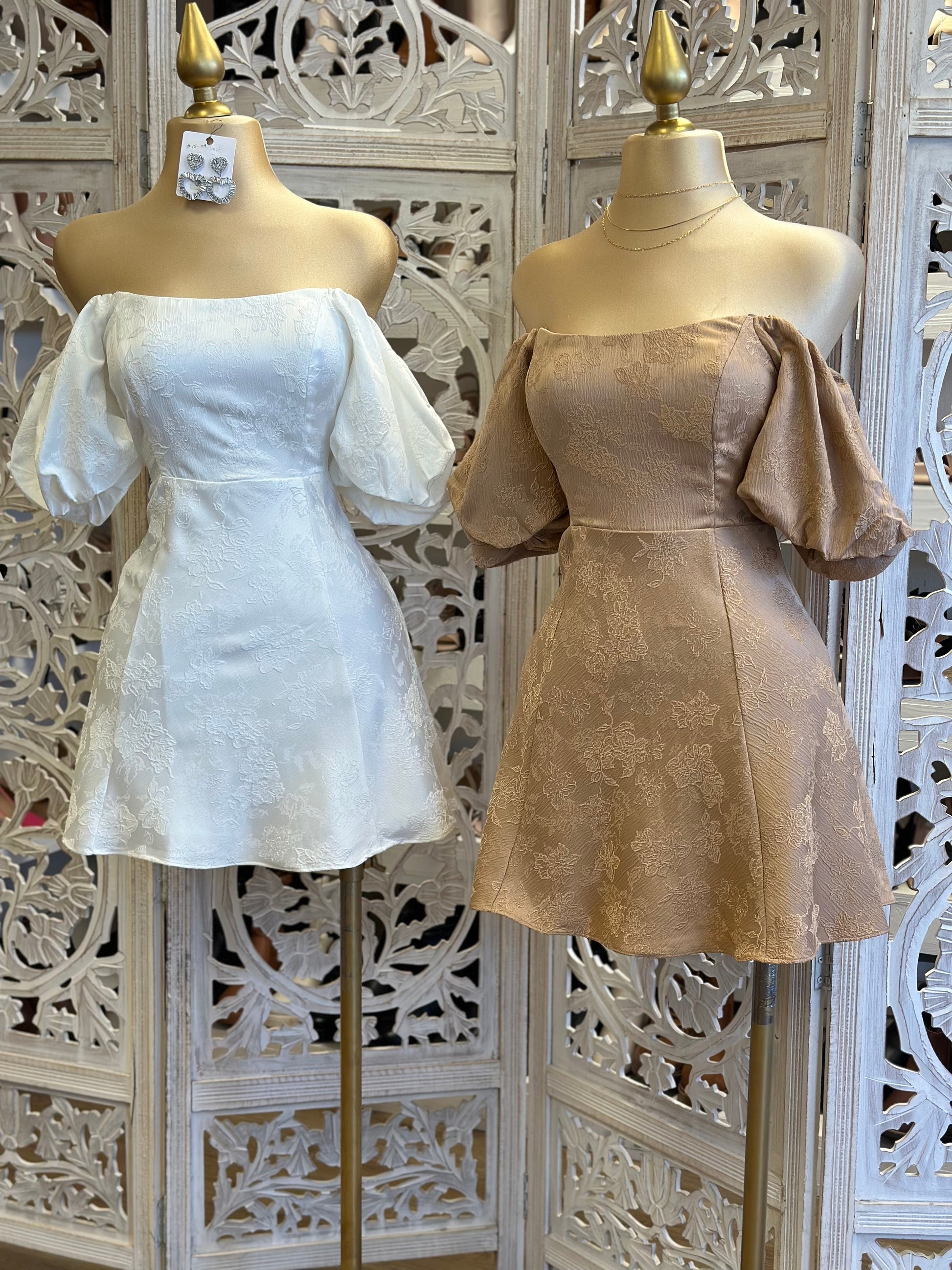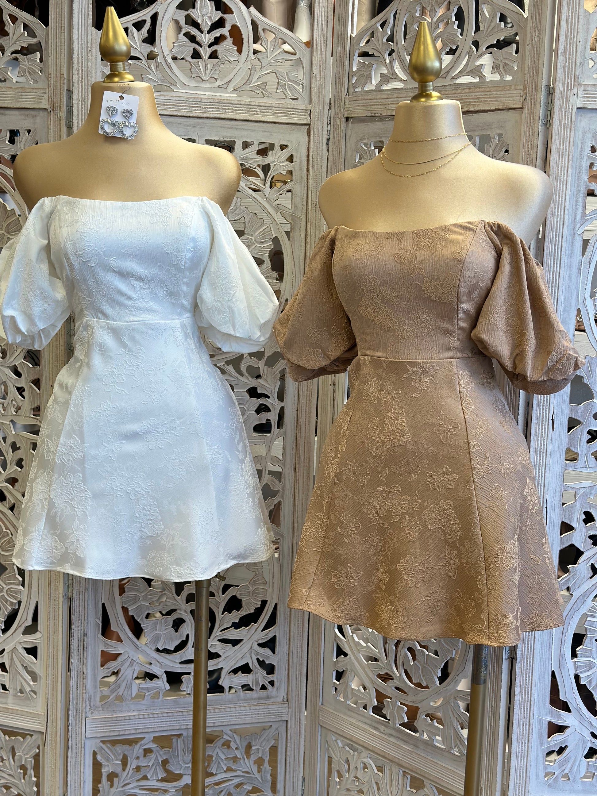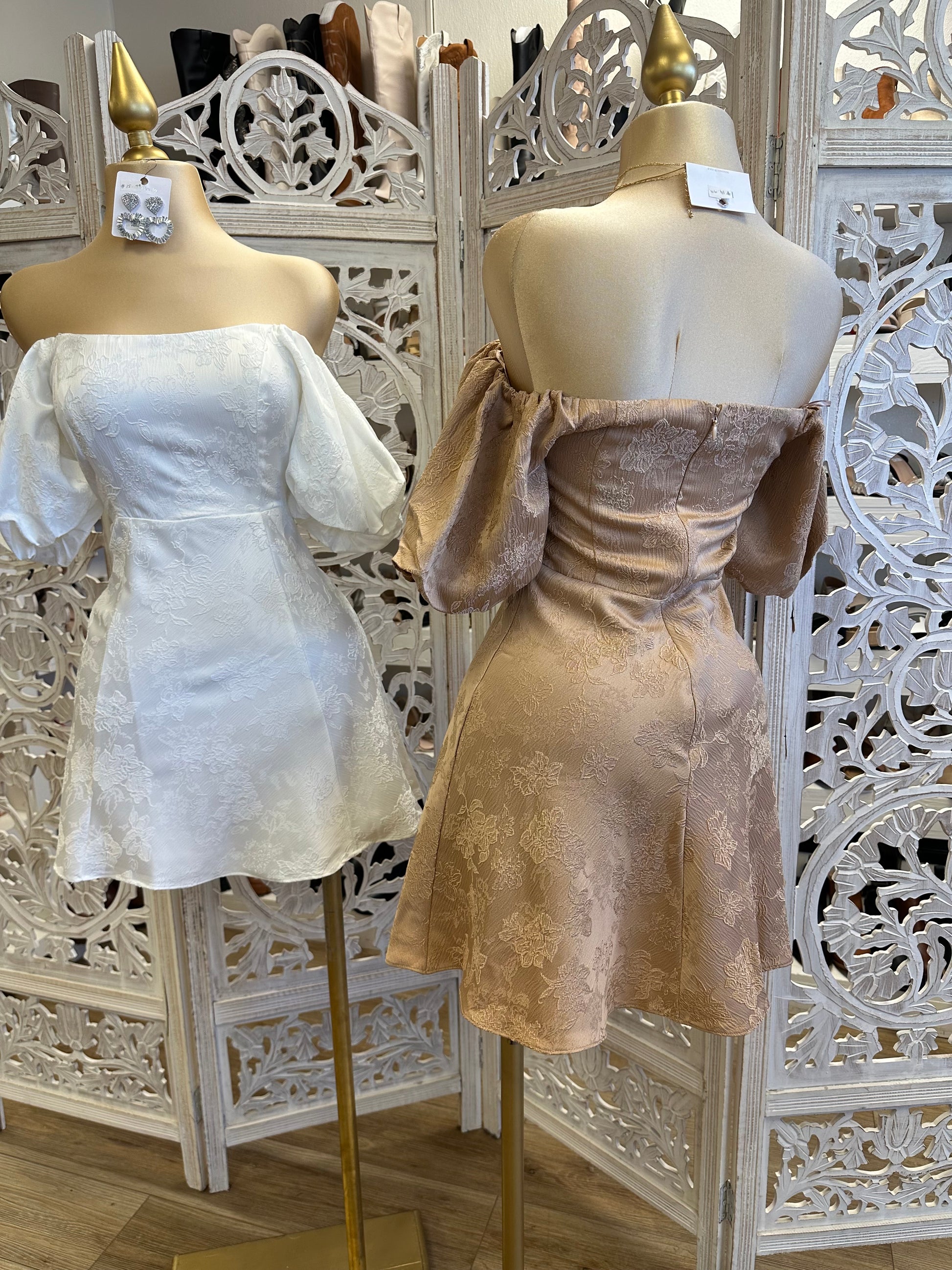 Flower Embroidered Off Shoulder Dress- Not Stretchy