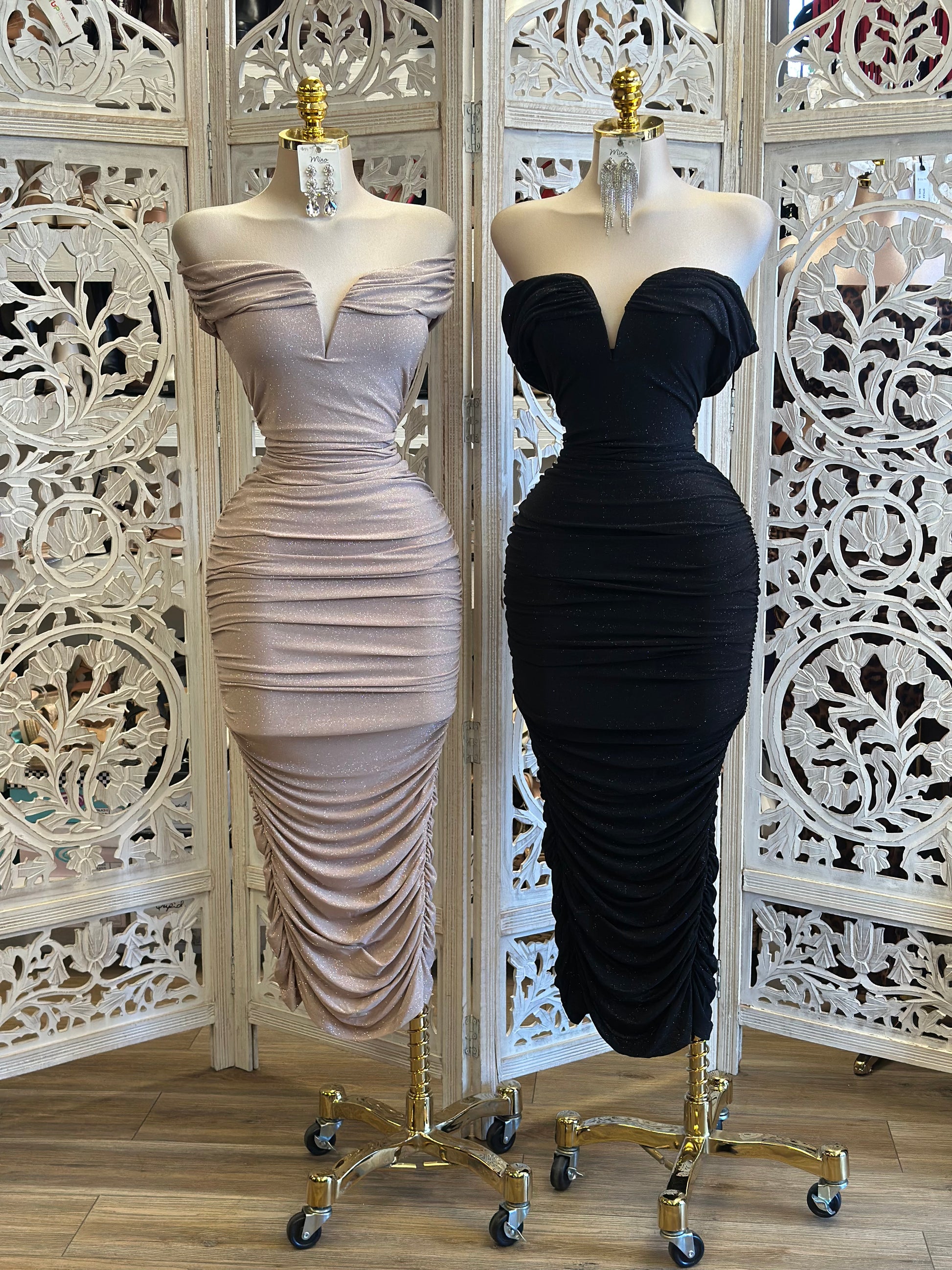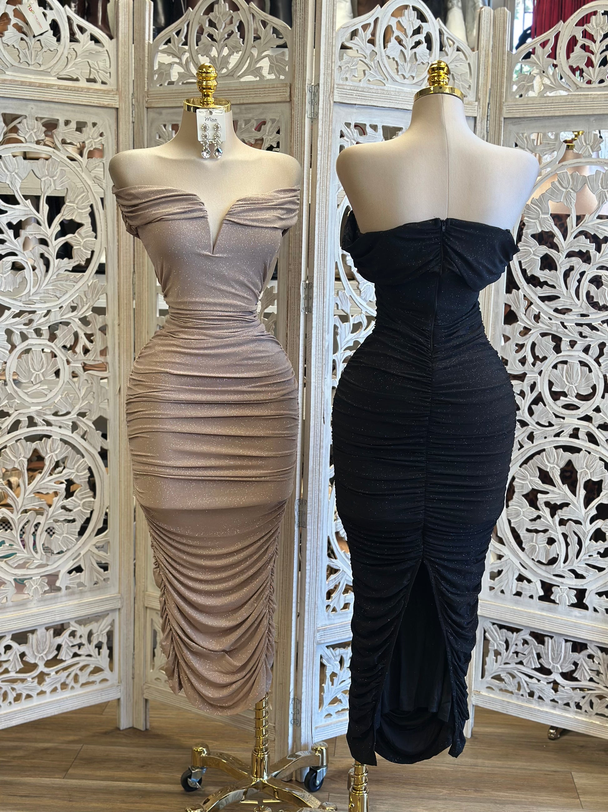 Glittery Heart line Off Shoulder Dress- Stretchy,Estira