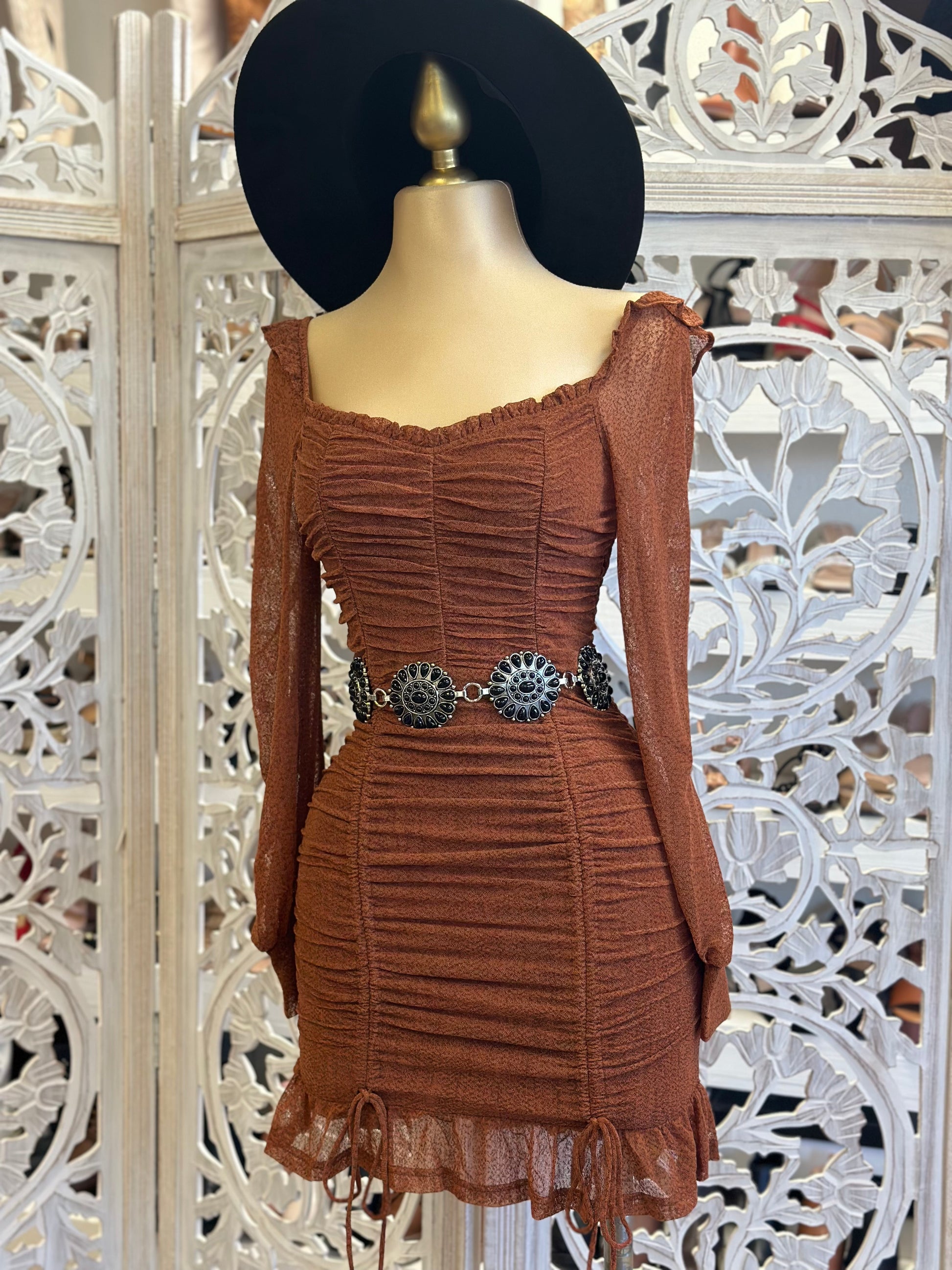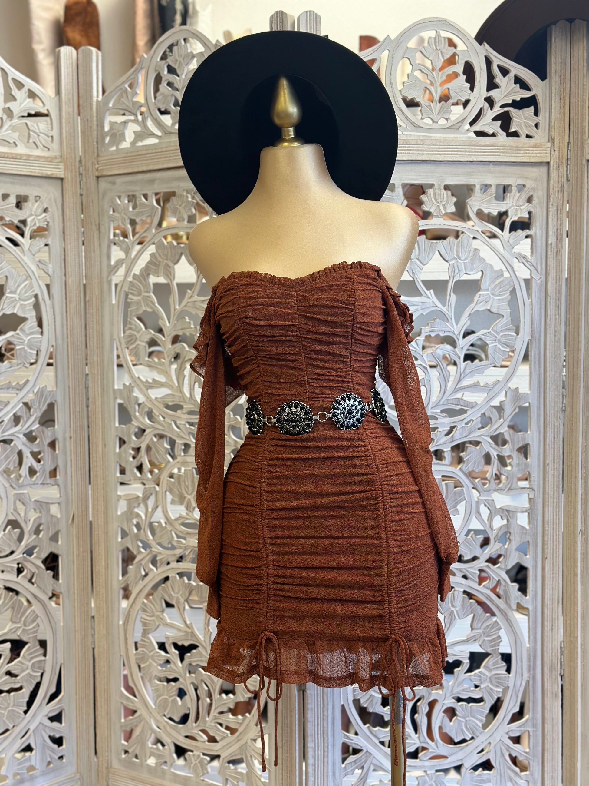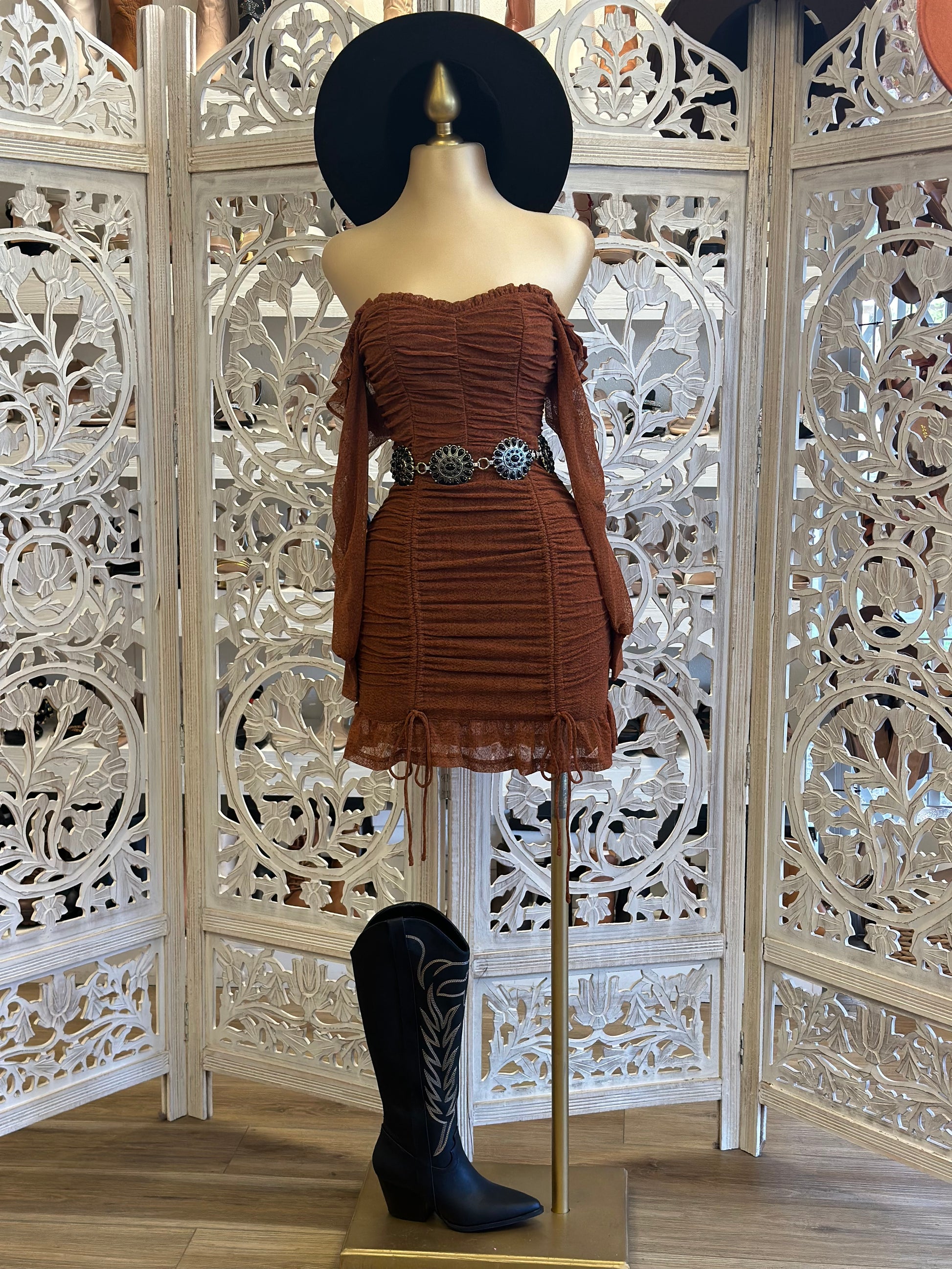 Heart Line Off Shoulder Ruched Mini Dress- Stretchy