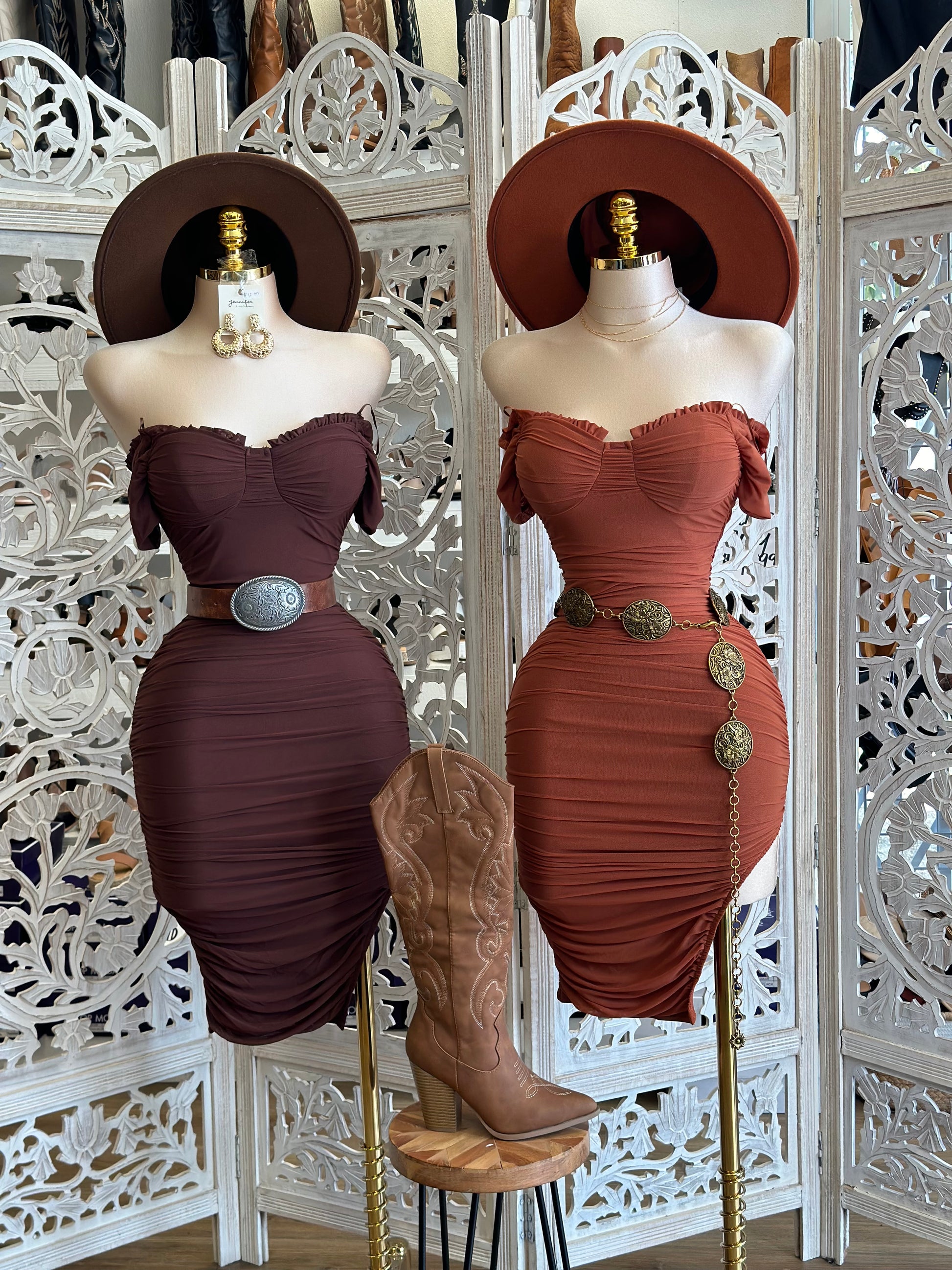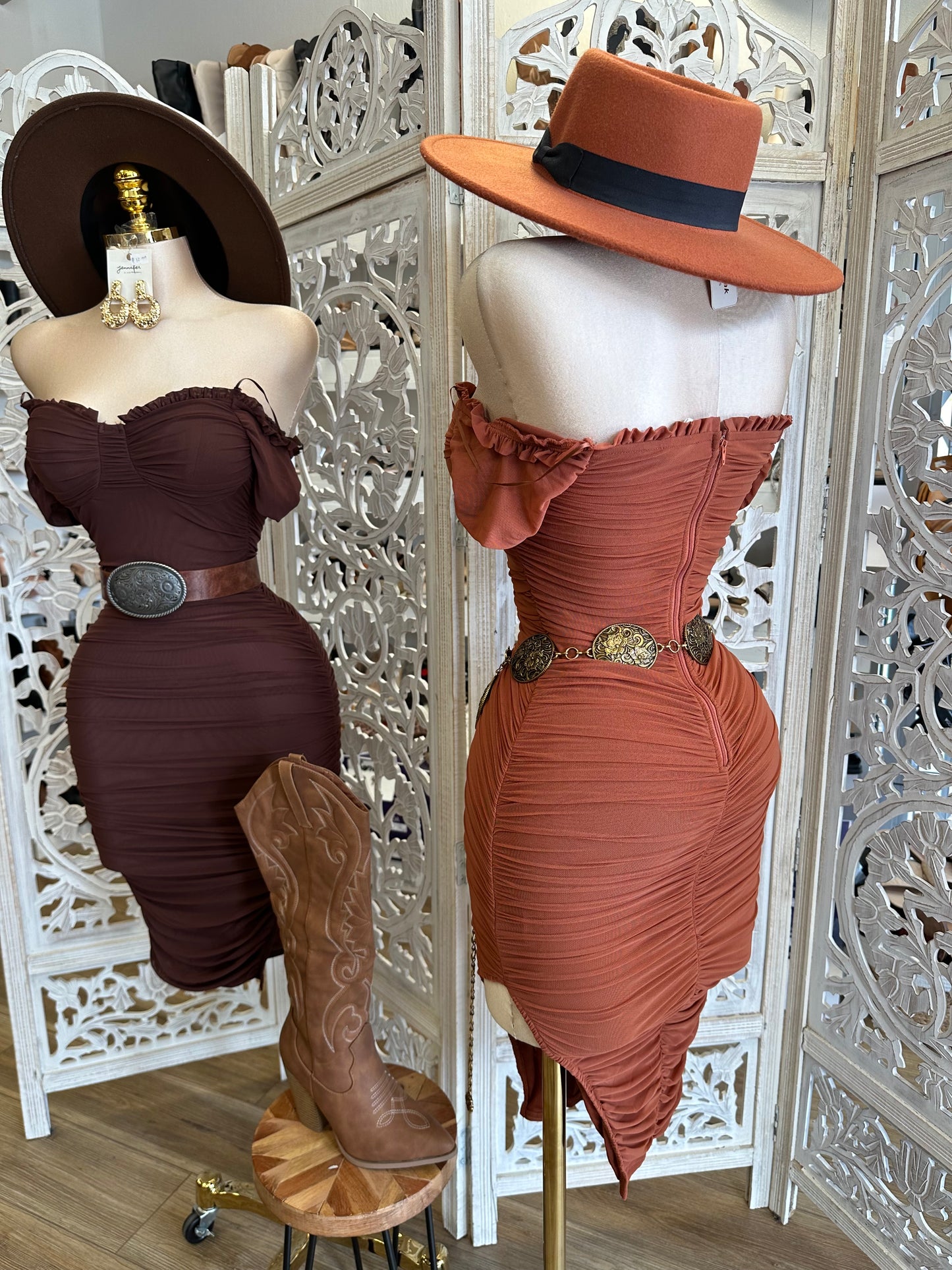 High Slit Ruched Mini Dress - Estira, Stretchy