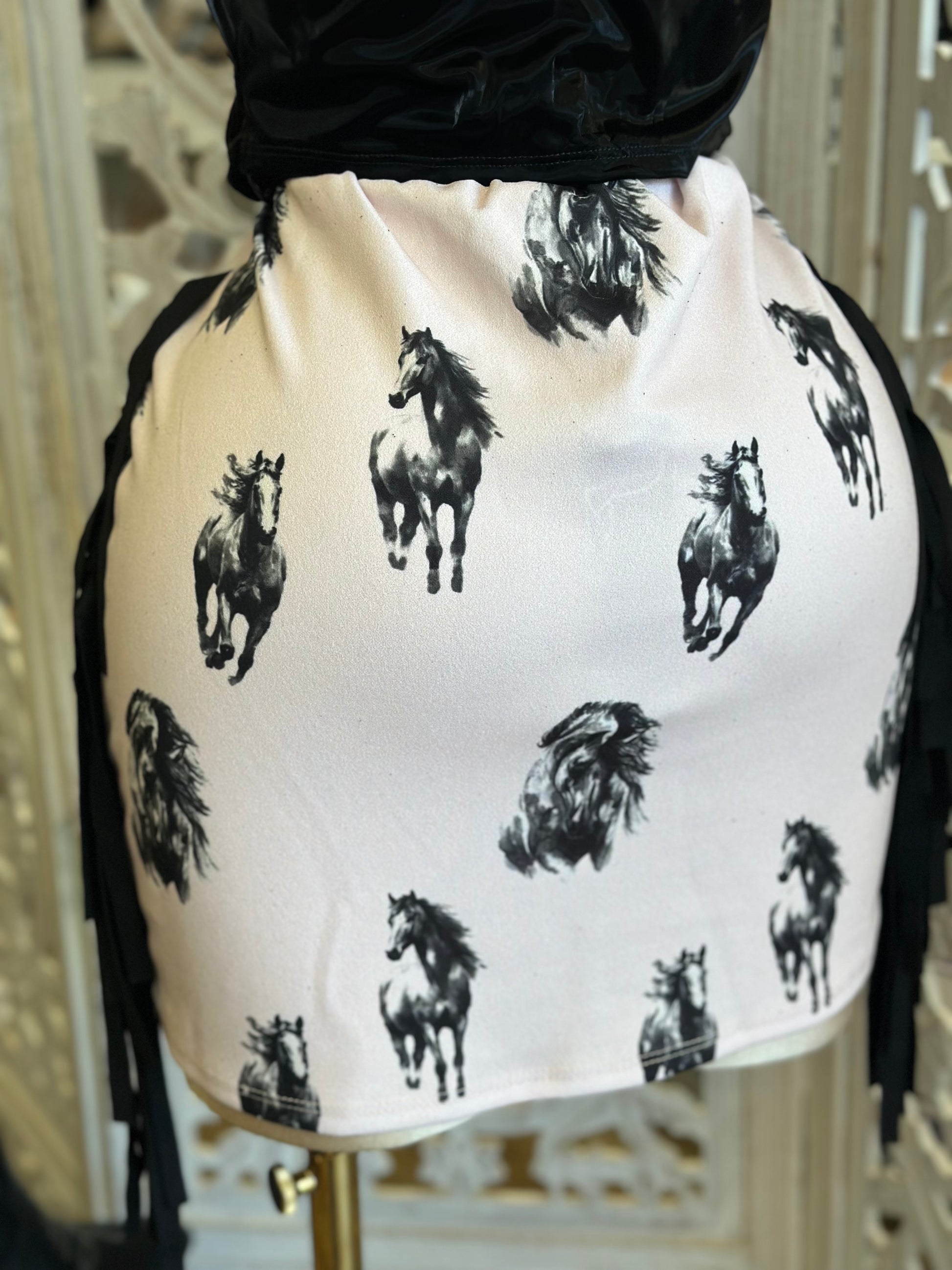 Horse Print Ruffle Mini Skirt-No Estira, Not Stretchy