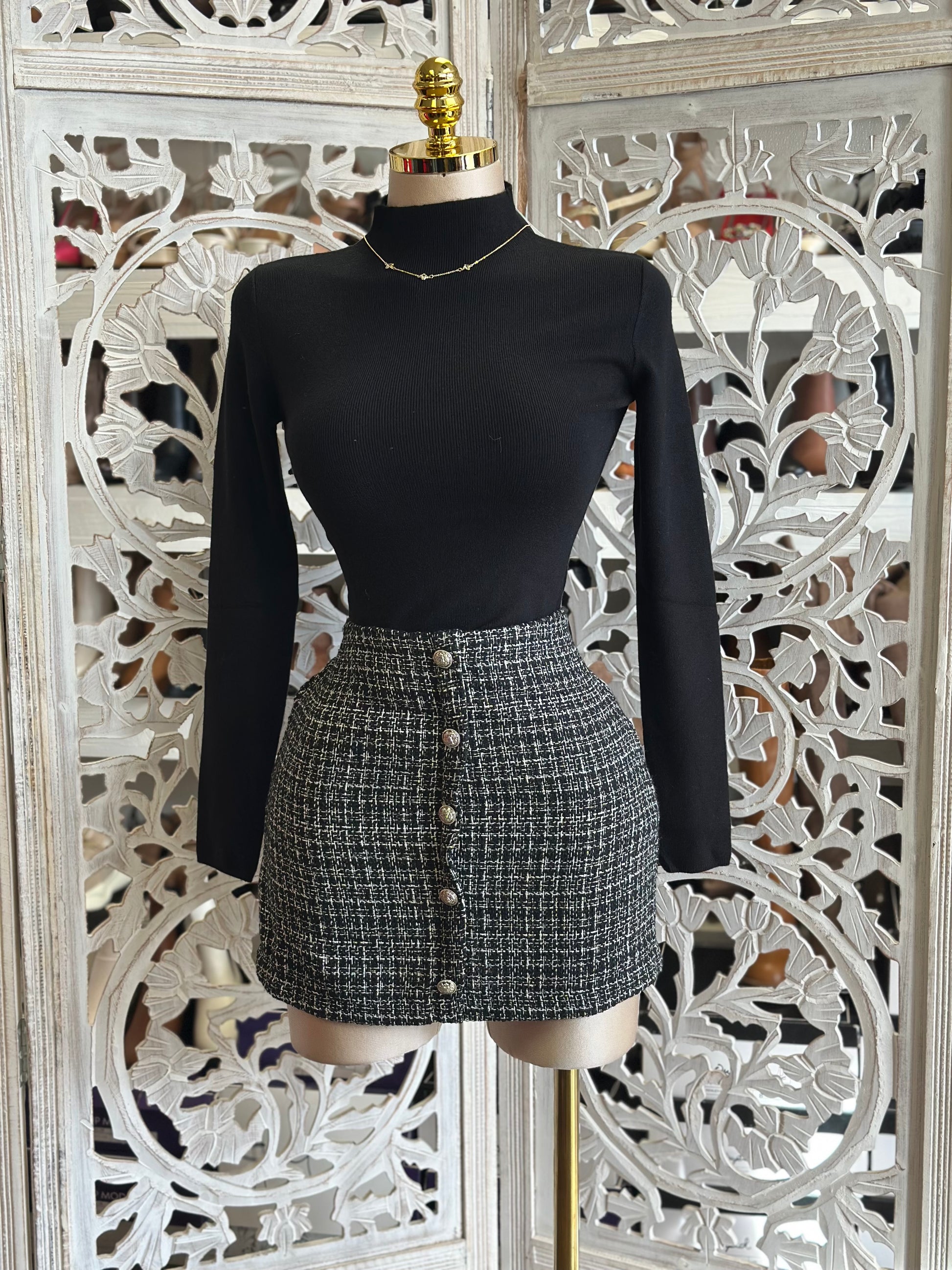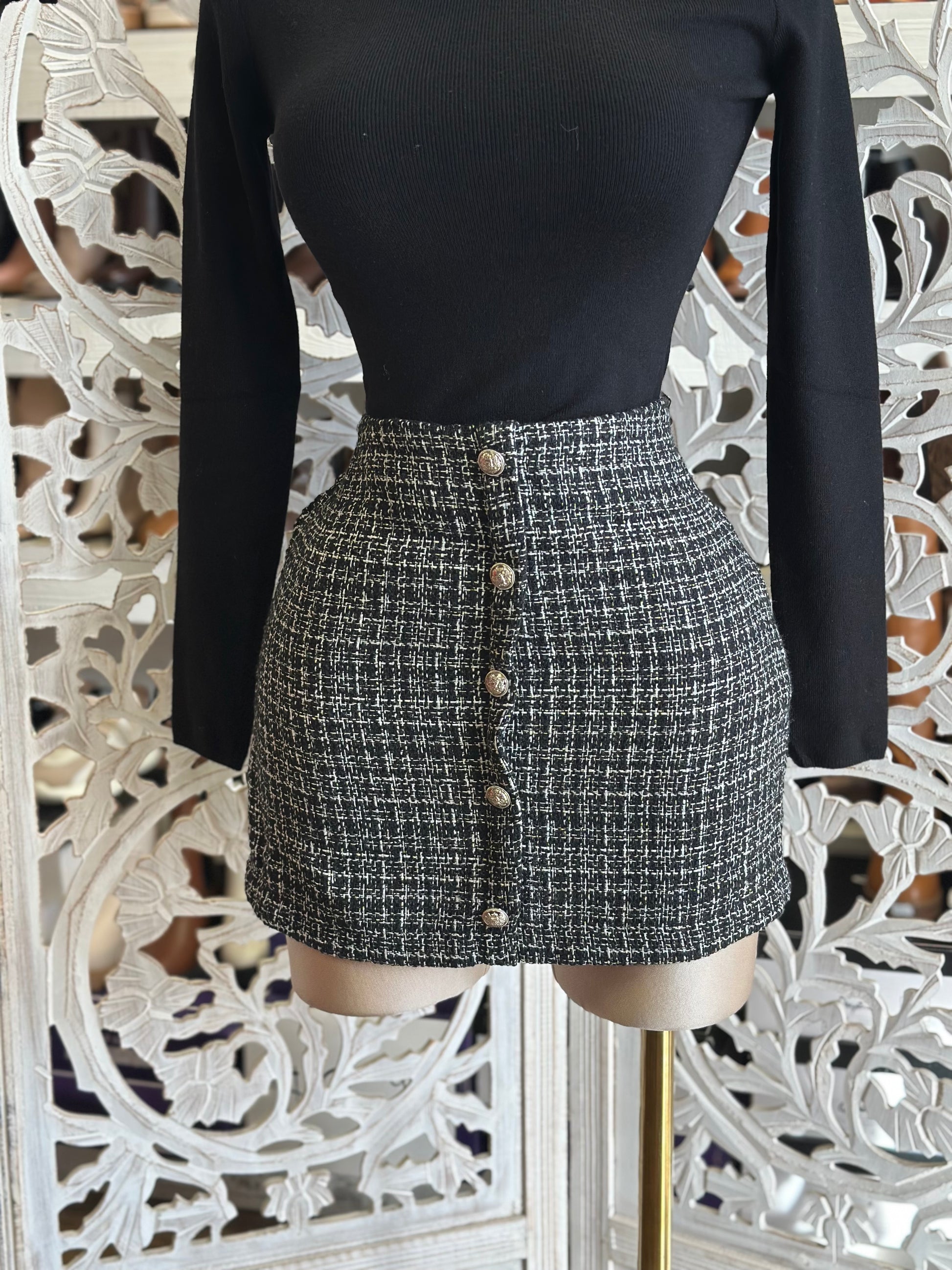 Houndstooth Button Up Mini Skirt- Not stretchy, No Estira