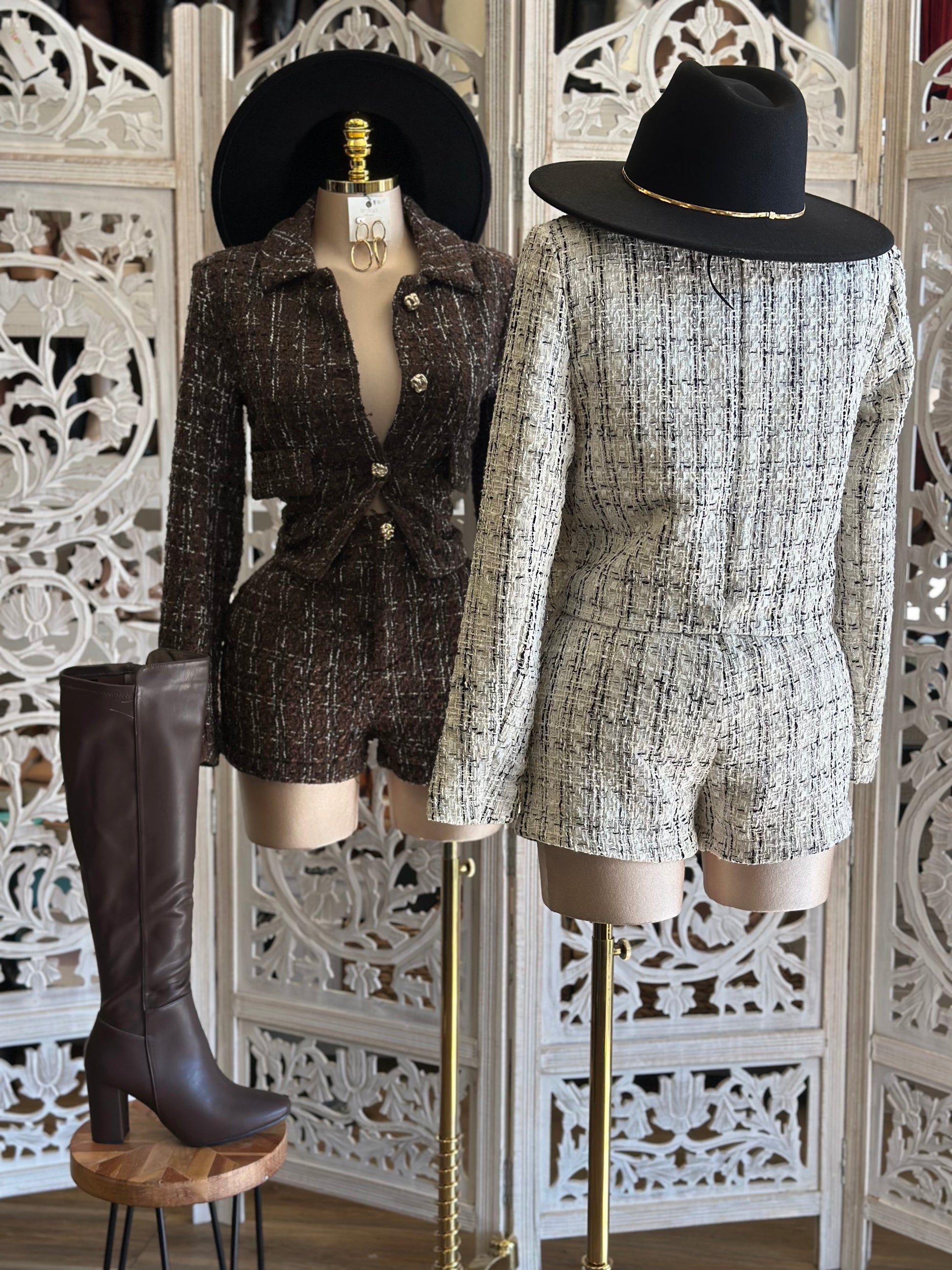 Houndstooth Shorts Set - No Estira ,Not Stretchy