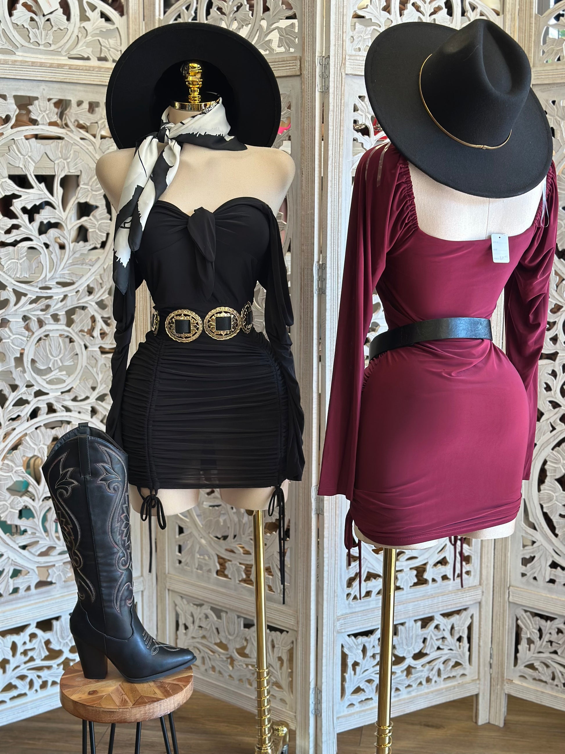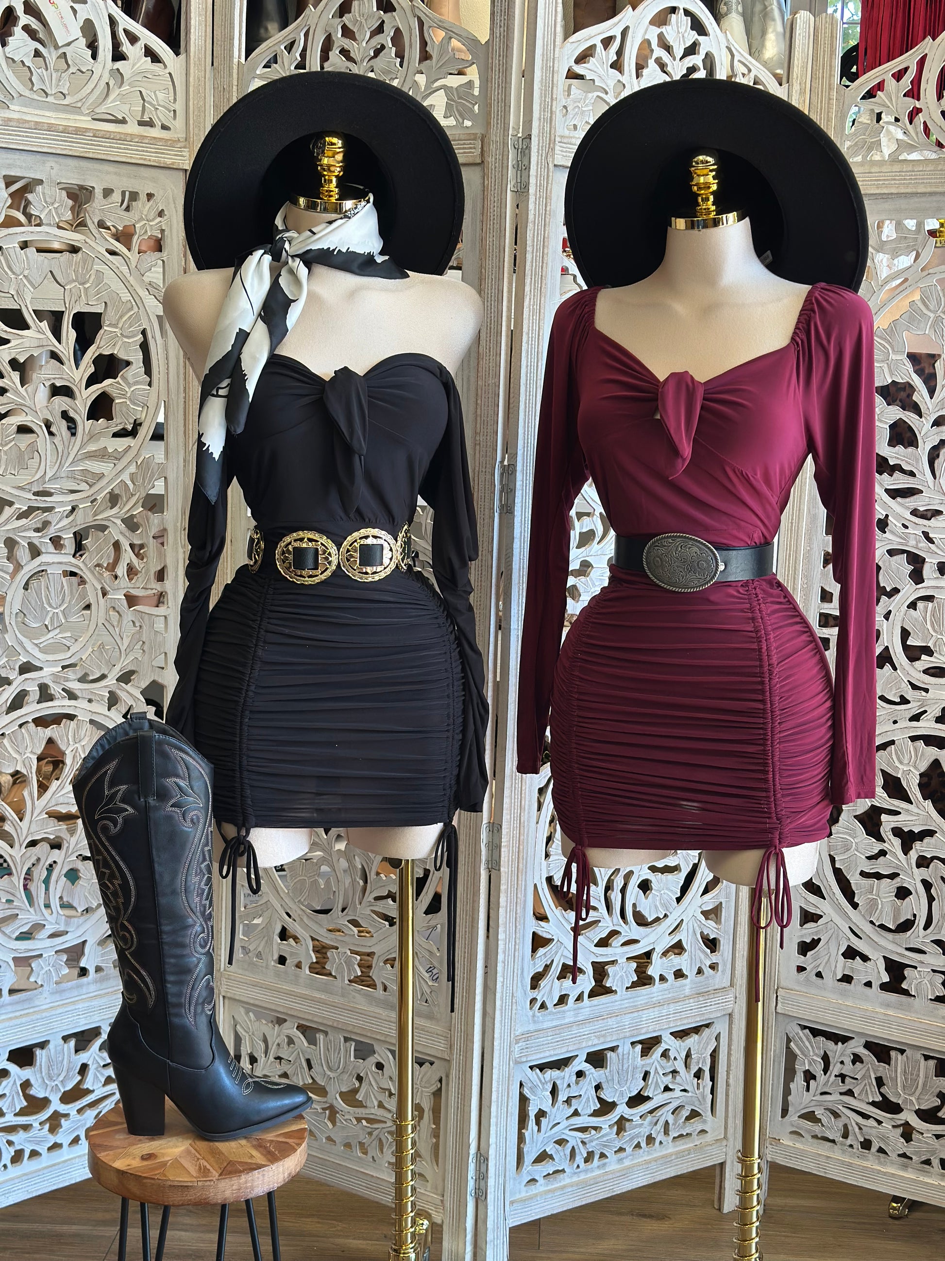 Knotted Square Neck Mini Dress- Stretchy,Estira