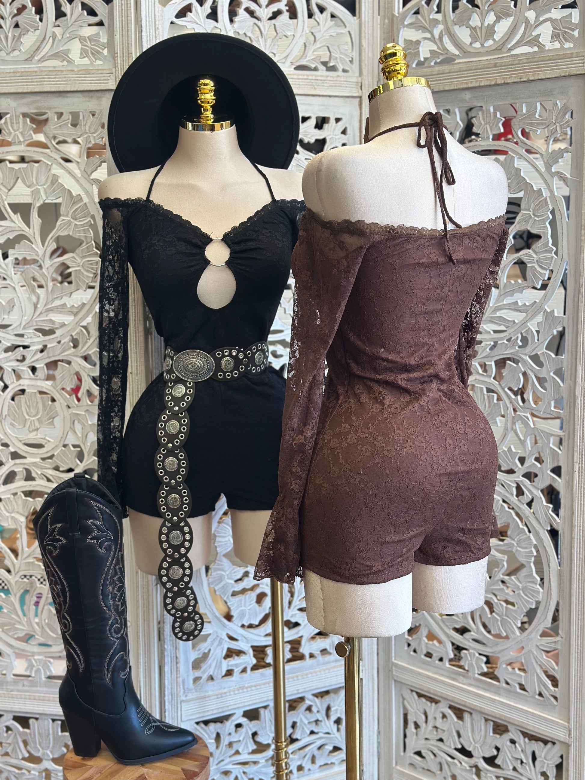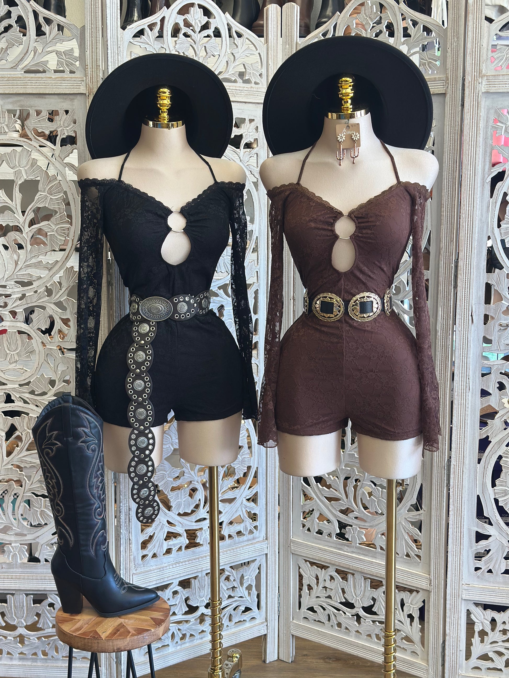 Lace Keyhole Mini Romper -Stretchy, Estira