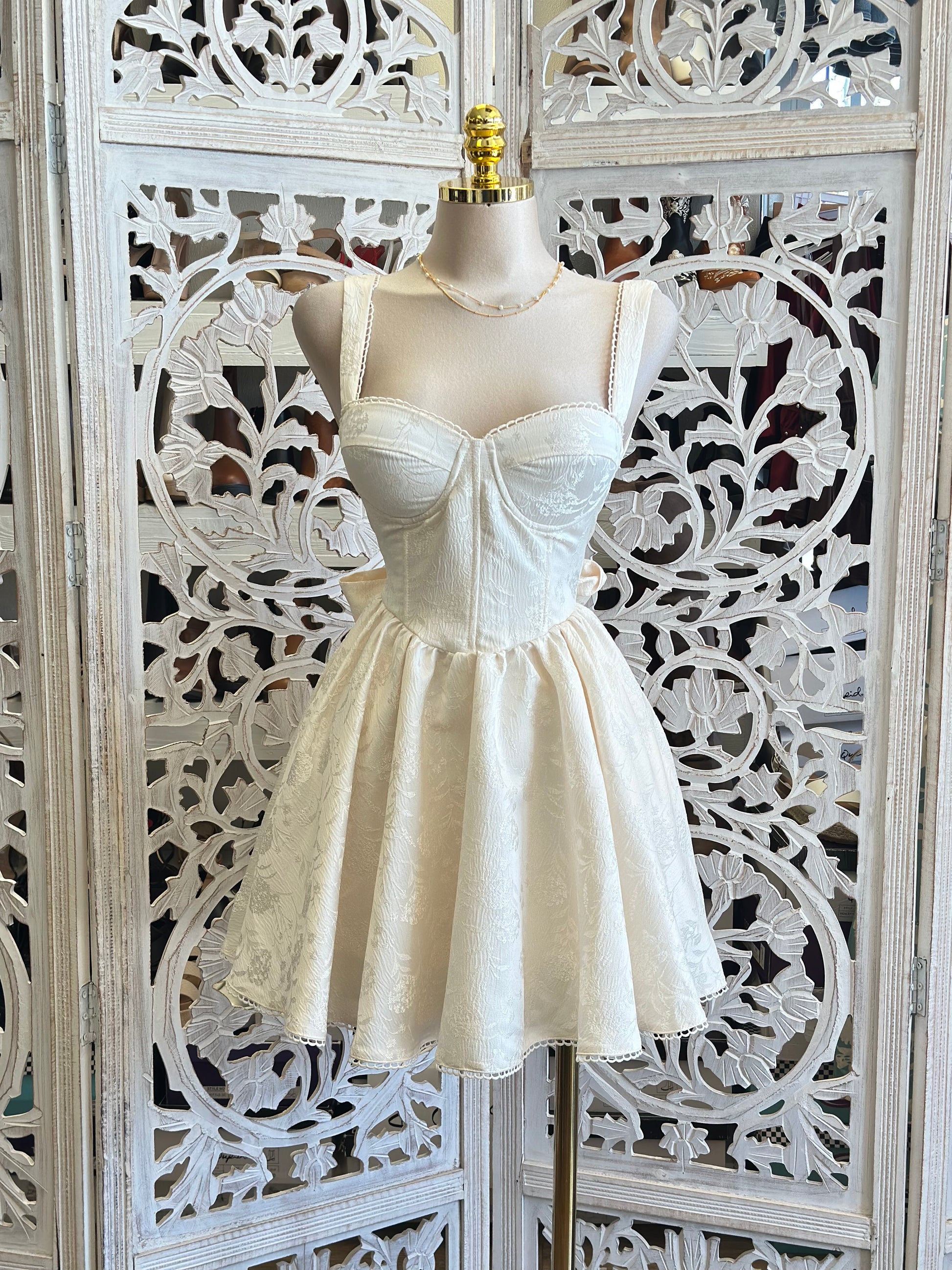 Lace Lined Floral Ivory Dress-No Estira, Not Stretchy