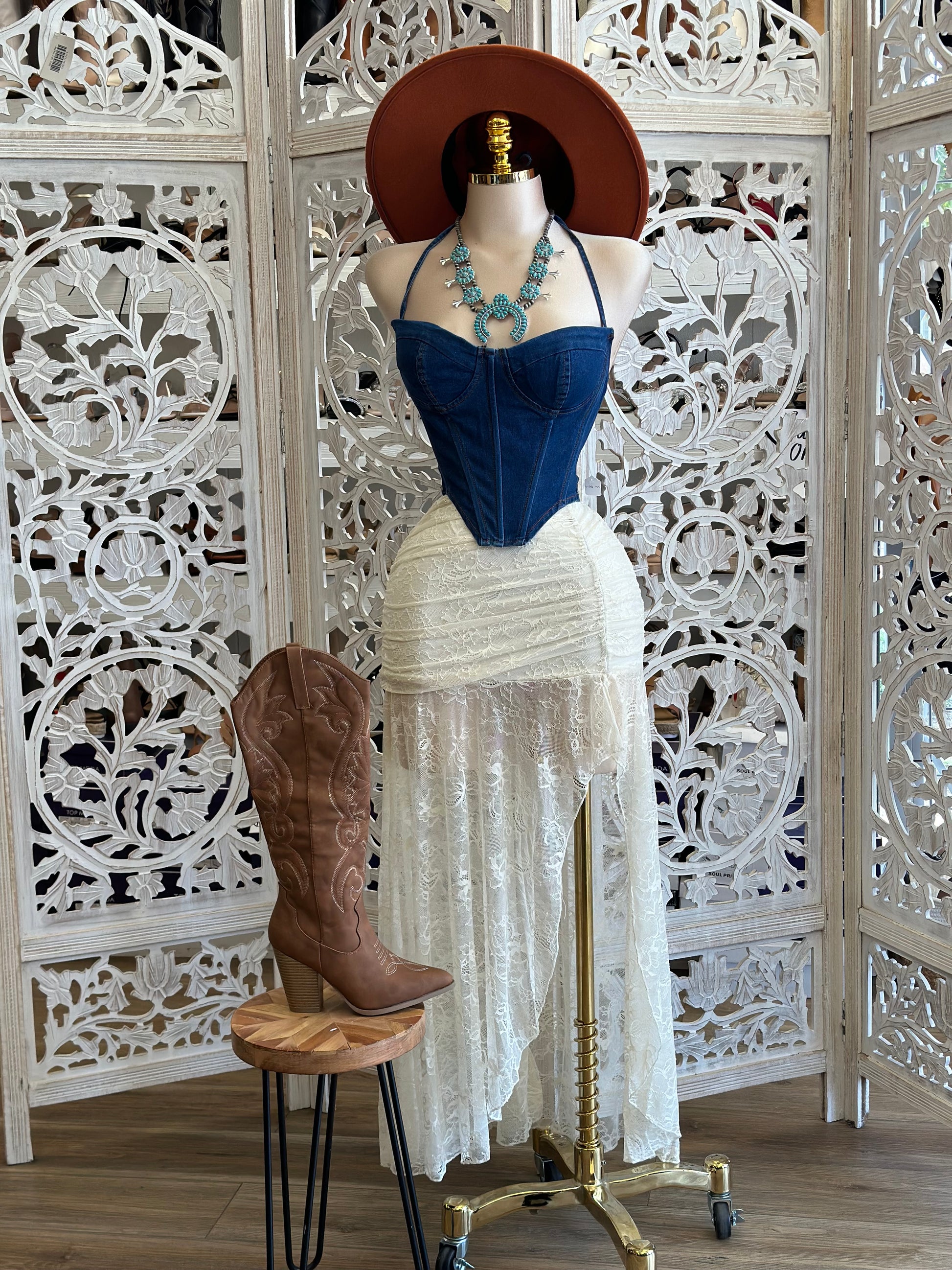 Lace Oval Slit Skirt- Estira, Stretchy