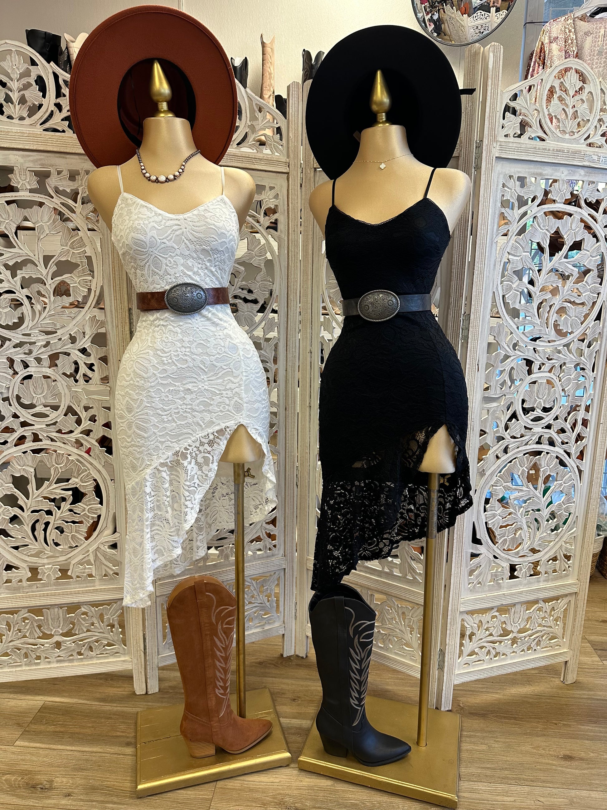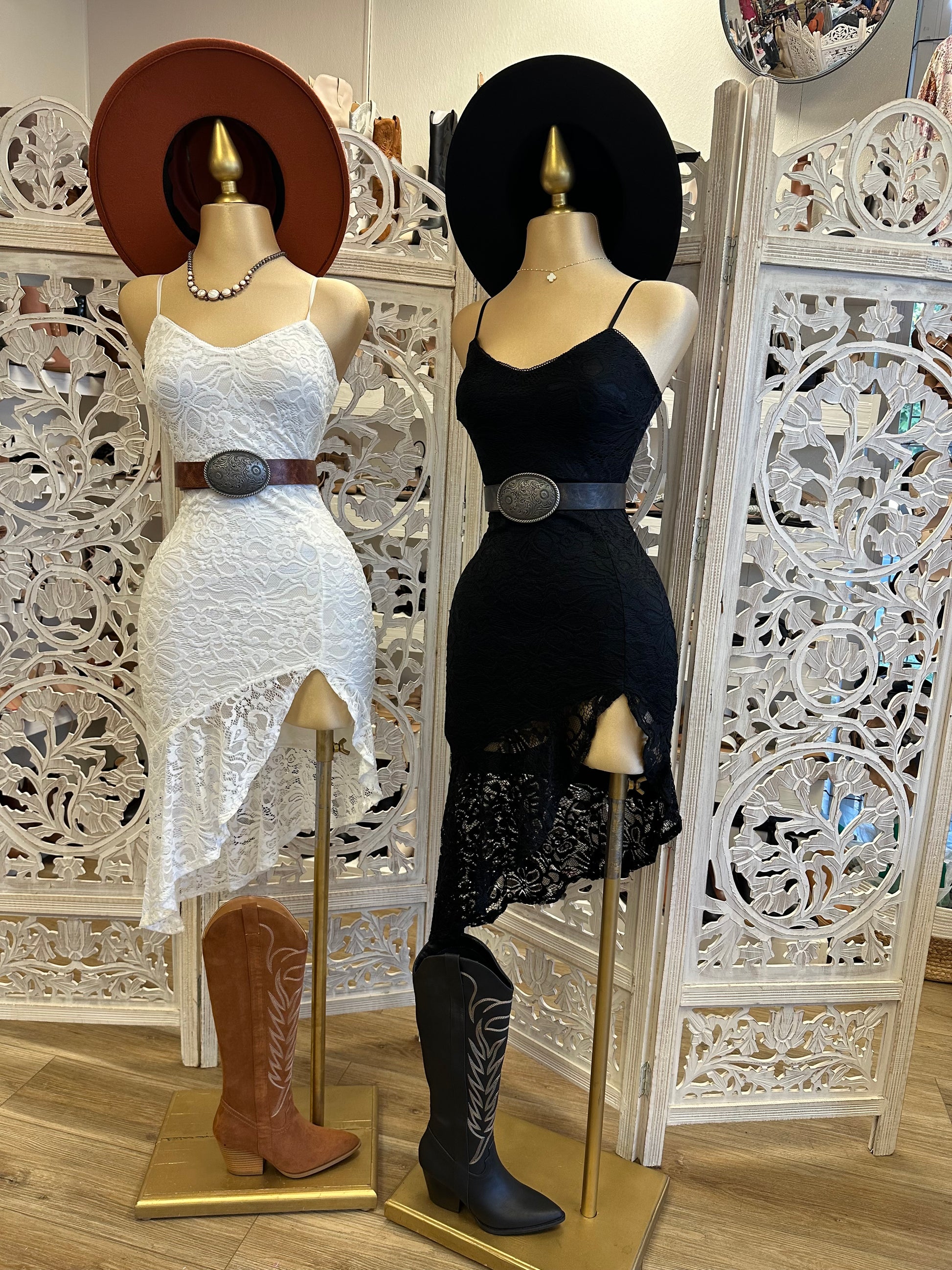 Lace Slit Ruffle Dress-Stretchy