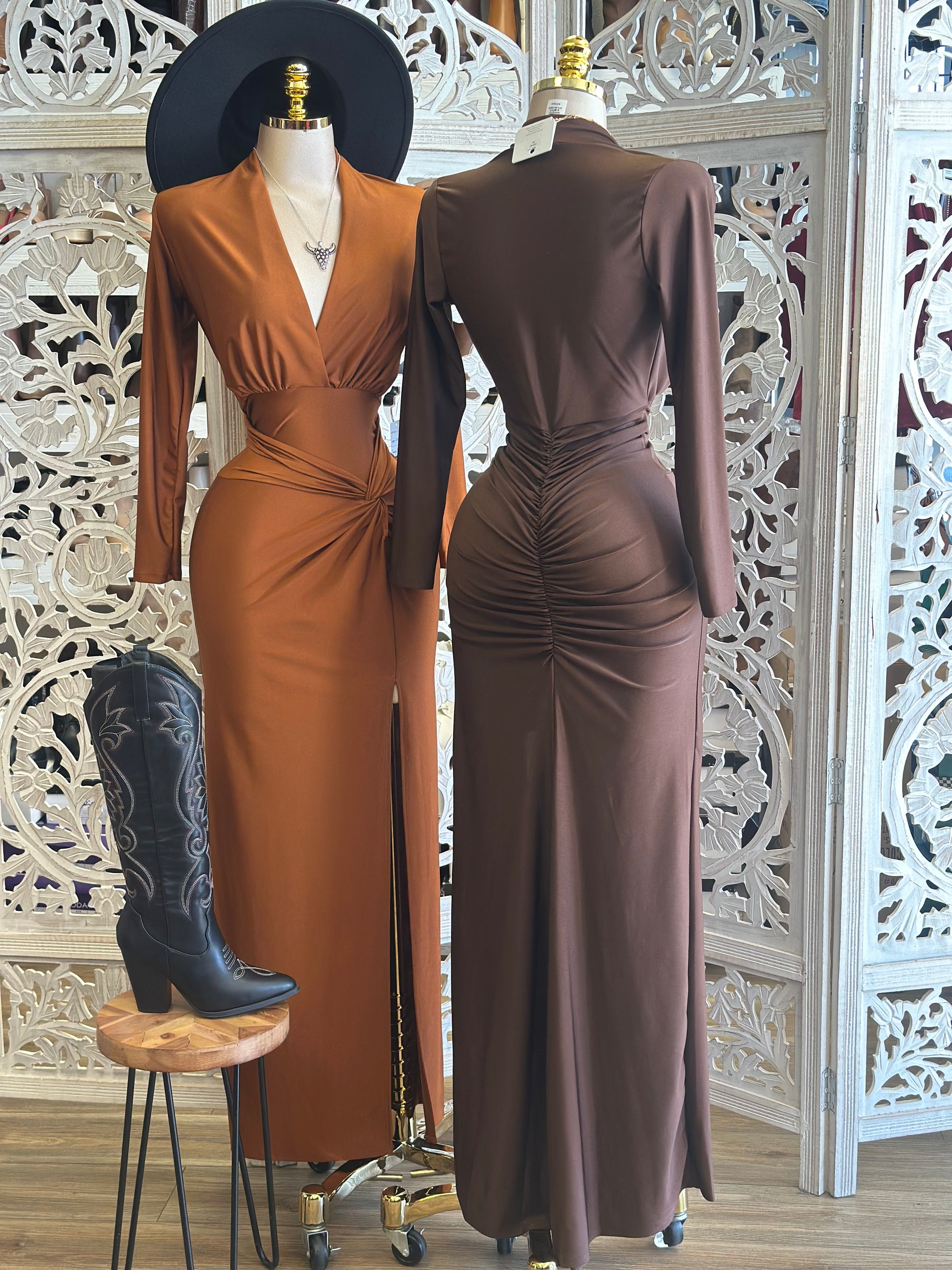 Low Cut Knotted Maxi Dress- Stretchy,Estira