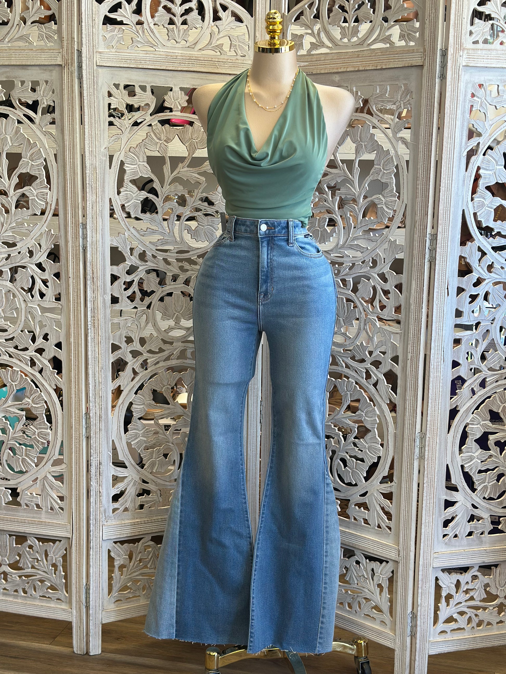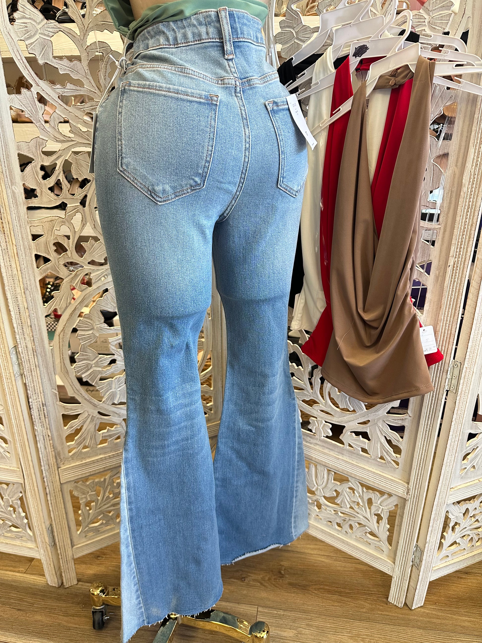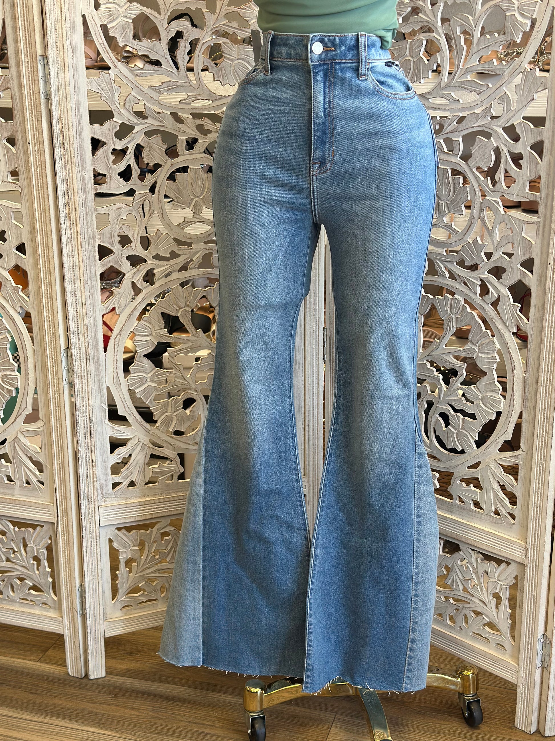Medium Wash Colorblock Jeans - Stretchy, Estira