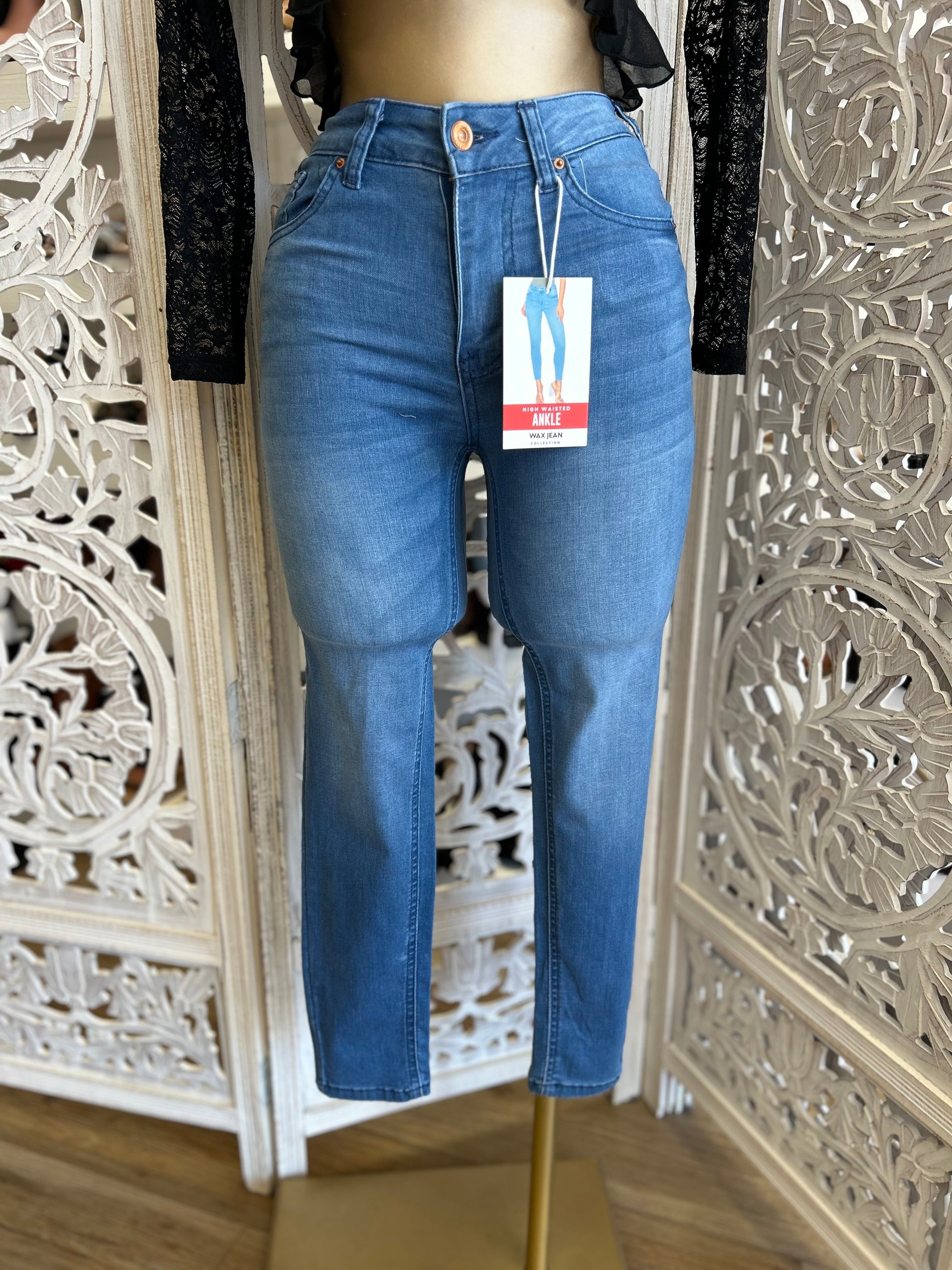 Medium Wash High Rise Skinny Jeans- Stretchy
