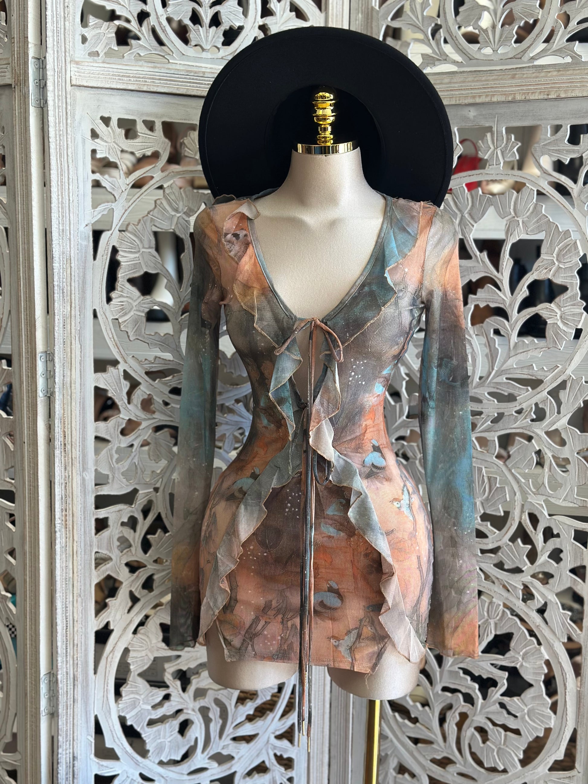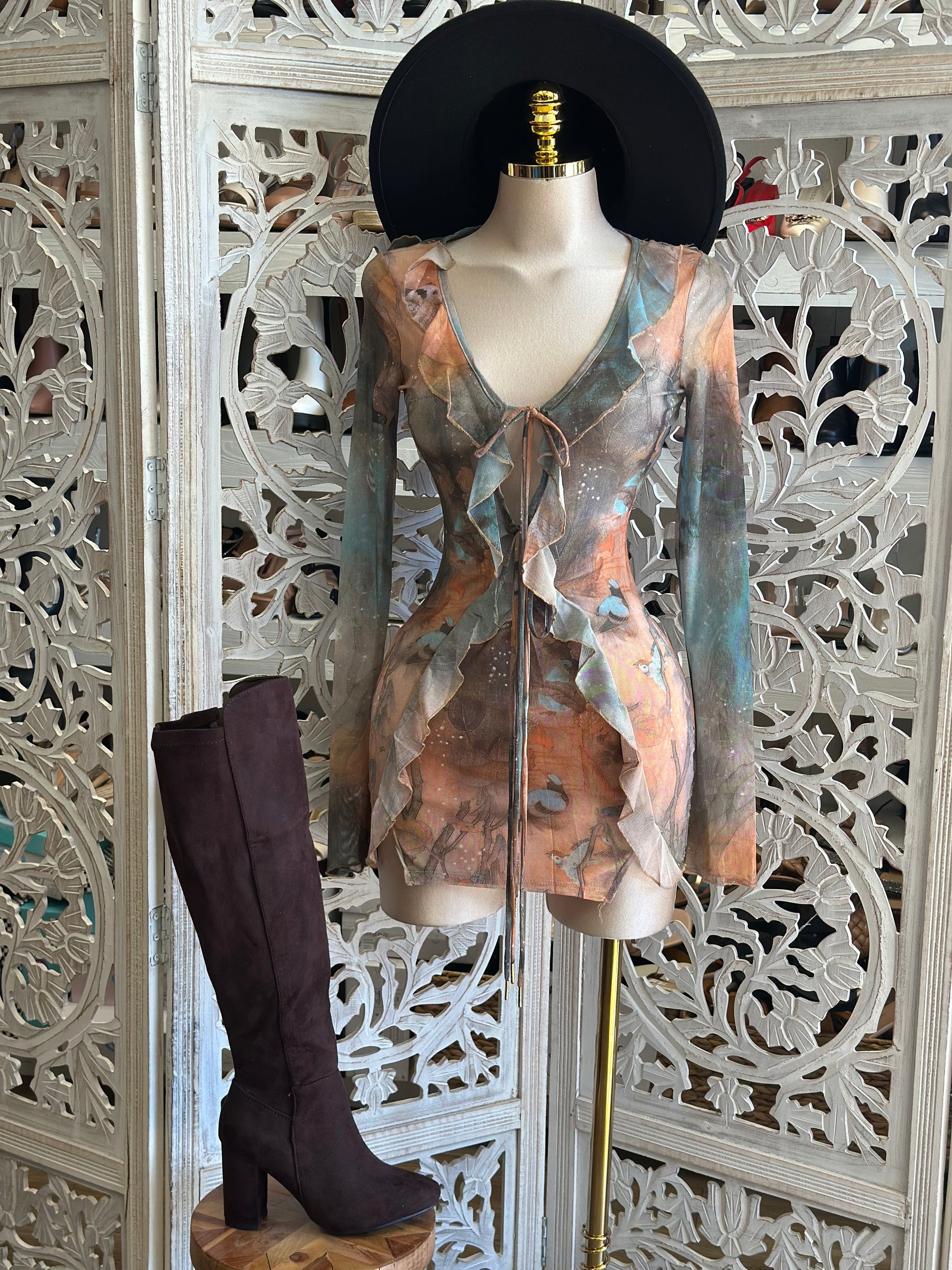 Multi Color Ruffle Mini Dress- Stretchy,Estira
