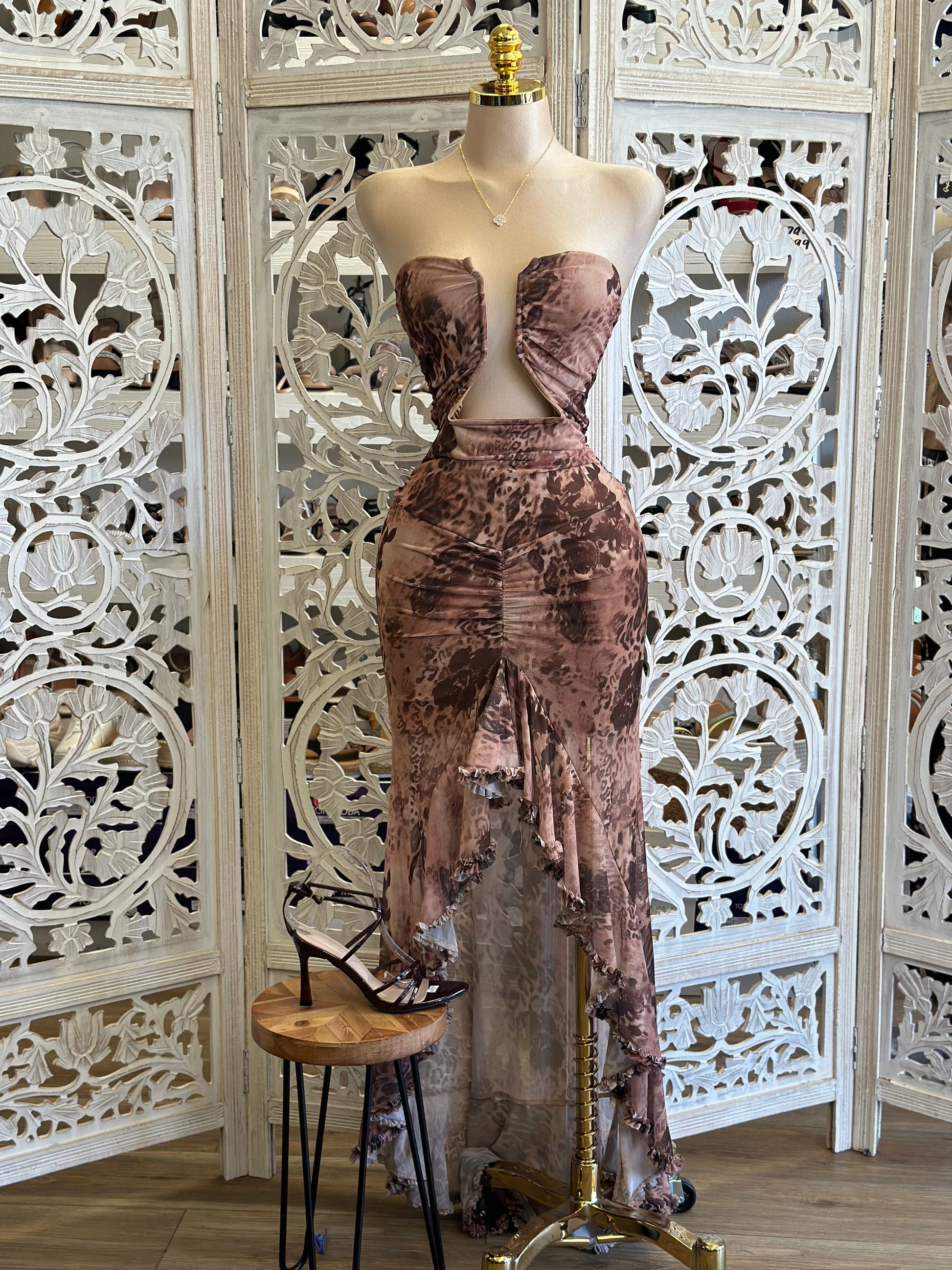 Multi Pattern Underwired Mesh Midi Dress - Estira, Stretchy
