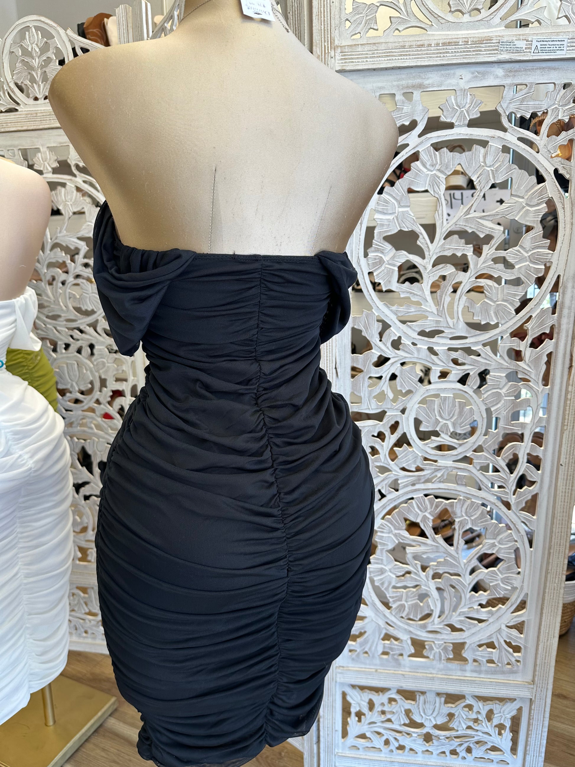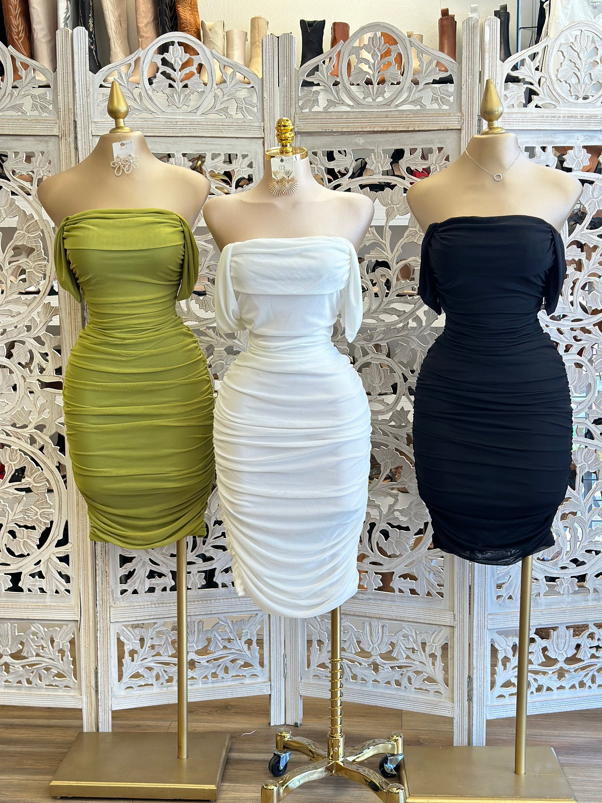 Off Shoulder Ruched Midi Dress - Estira, Stretchy