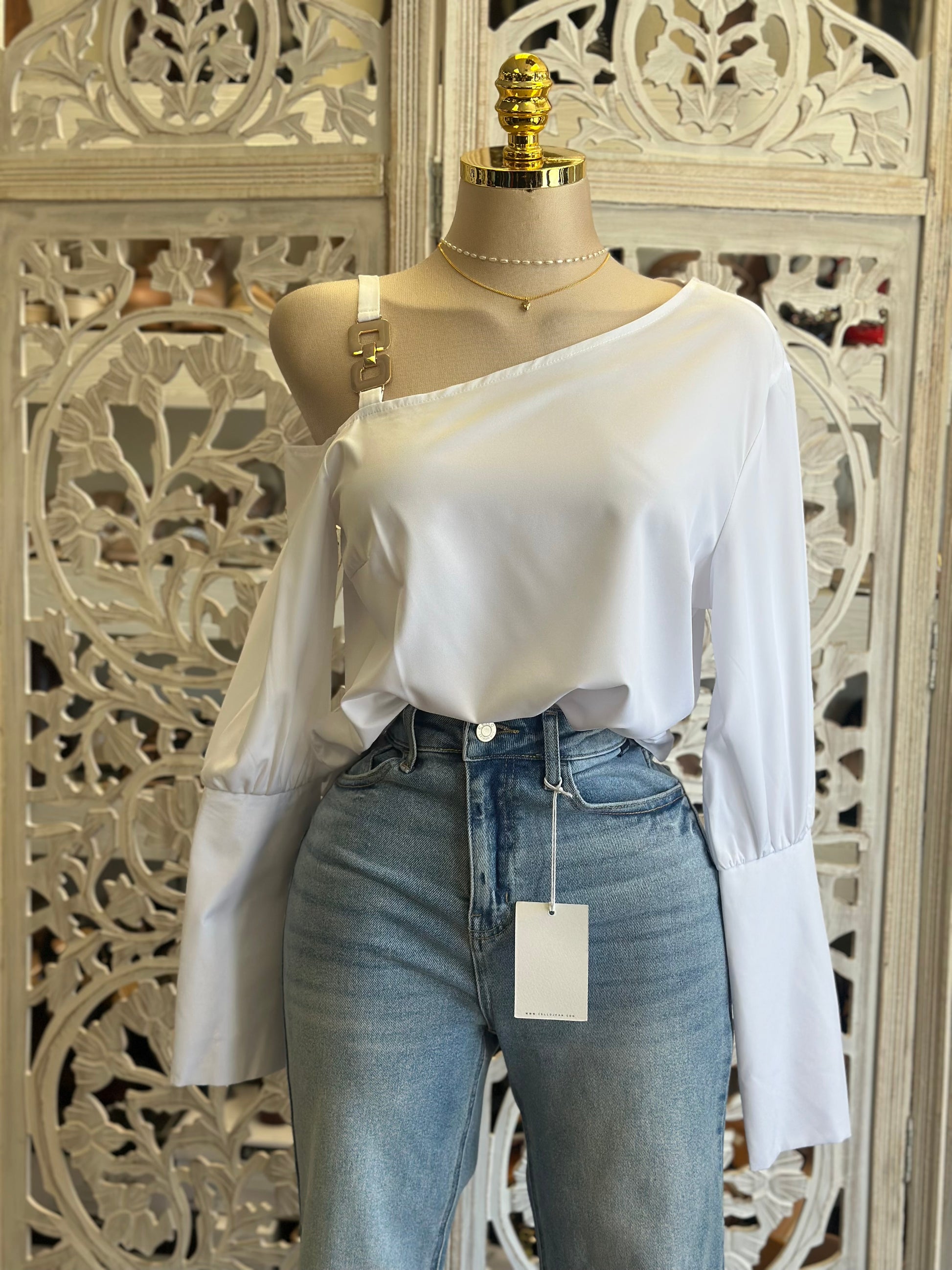 One Shoulder Gold Detail Blouse- No Estira, Not Stretchy