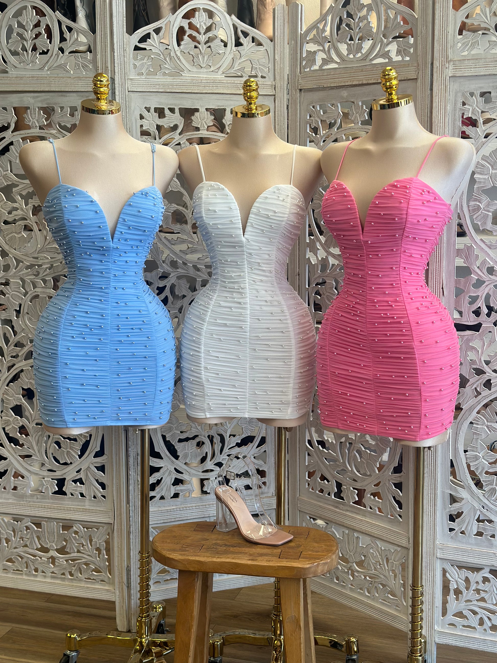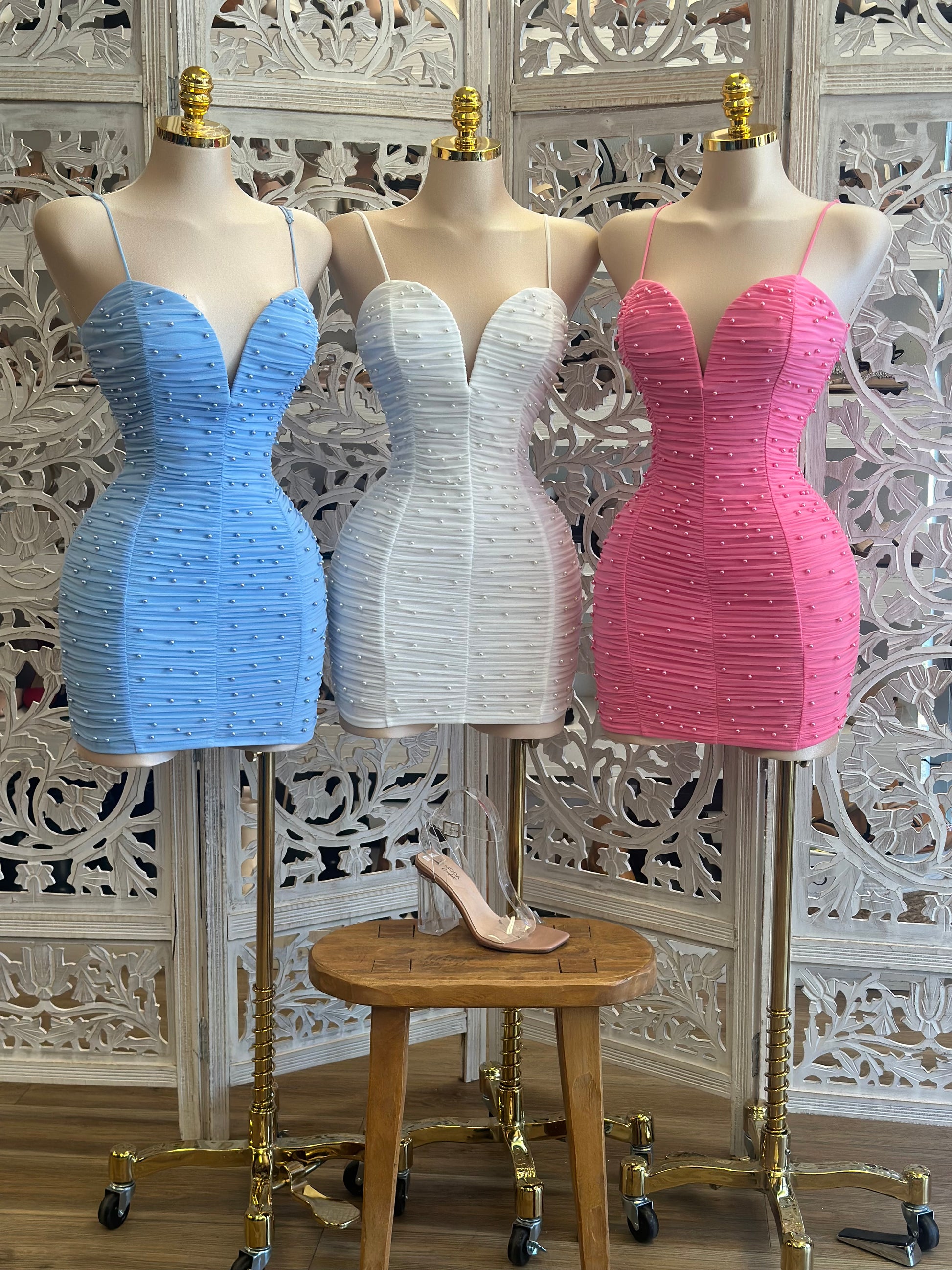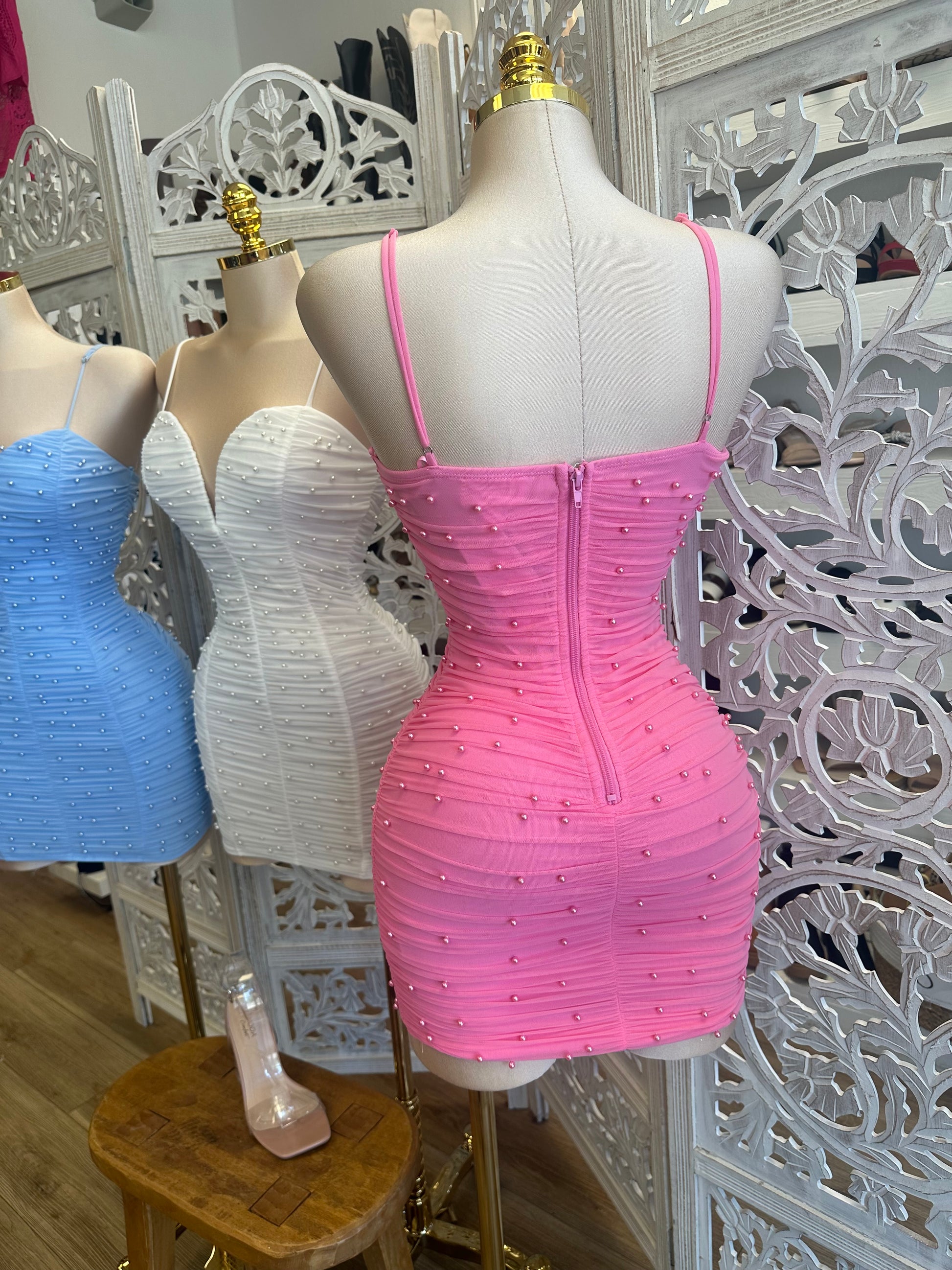 Pearl Embellished Heart Lined Mini Dress- Stretchy
