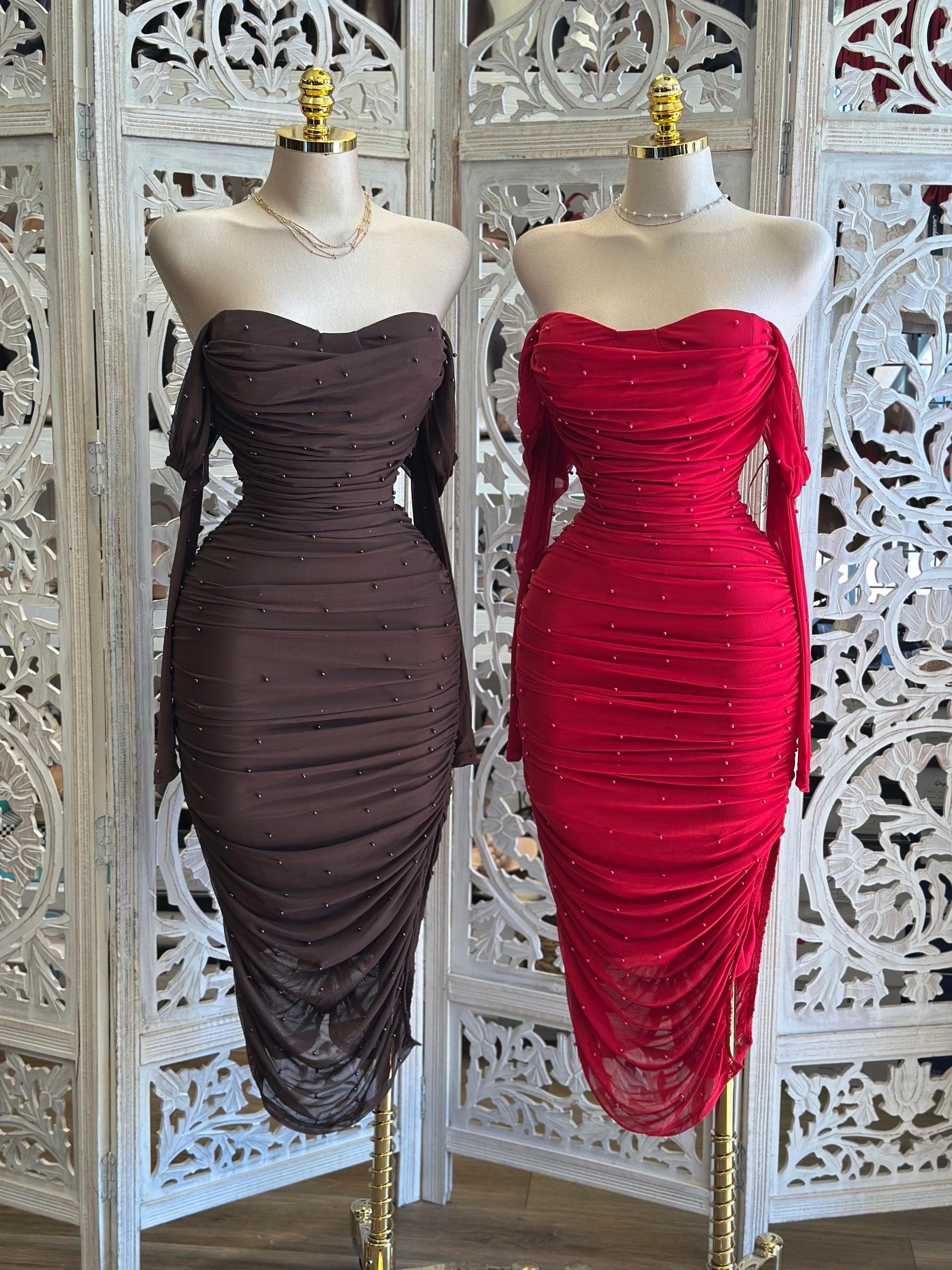 Pearl Full Mesh Ruched Dress- Stretchy,Estira