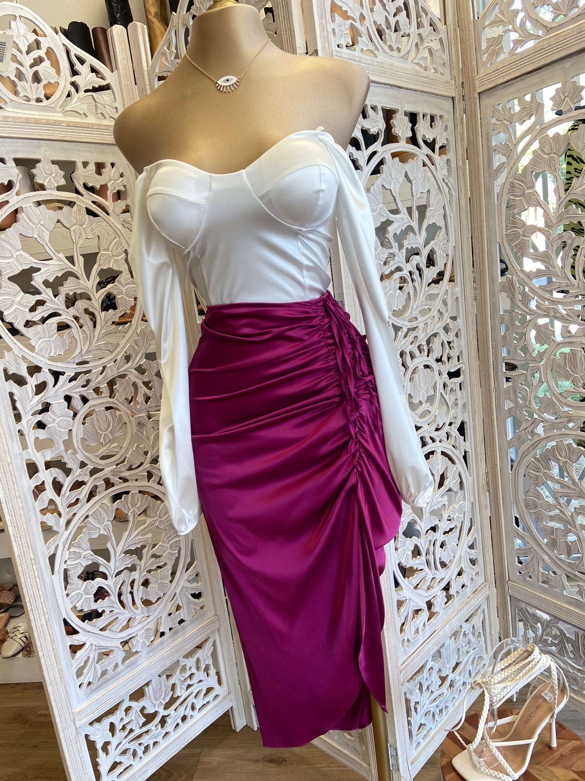 Raspberry Ruched Skirt